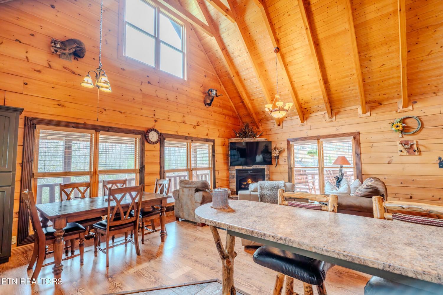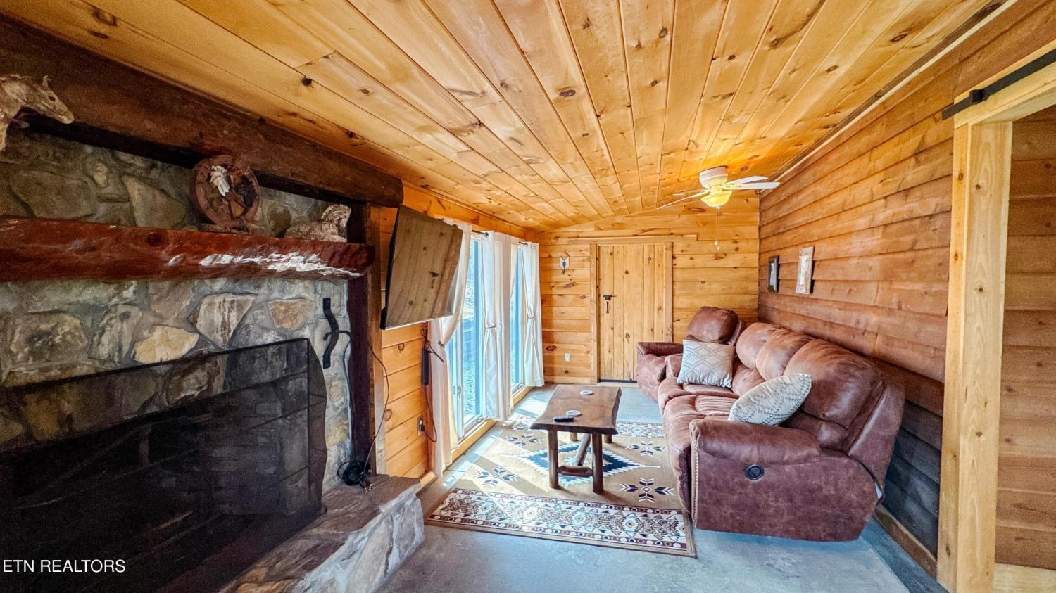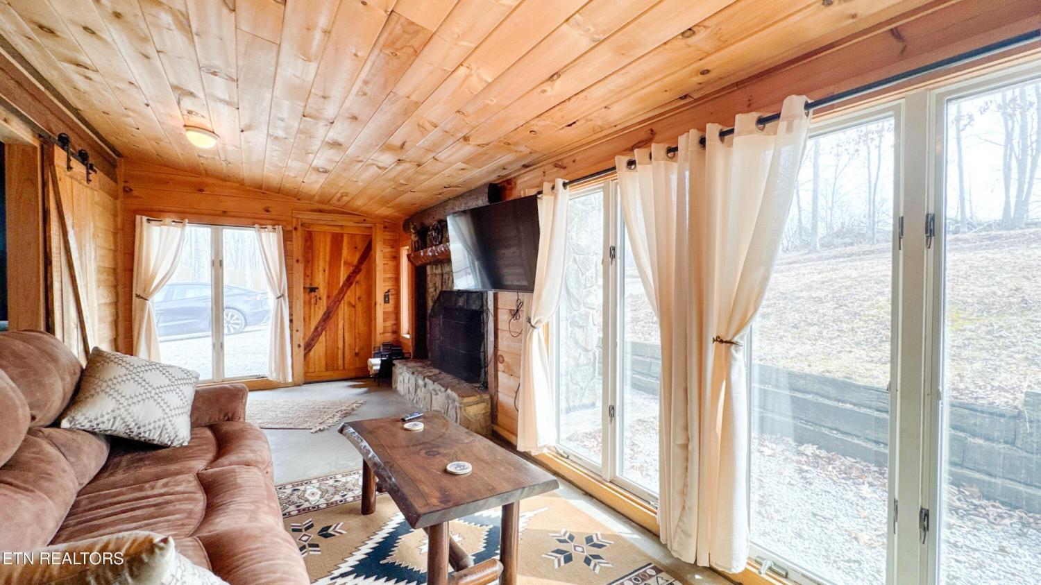 Escape to your private Tennessee paradise--a rare retreat with two cabins for a combined 3500+ sq ft! This property boasts over six acres, featuring a main cabin with over 2500 sq ft, 3 beds and 3 baths. The additional cabin is just over 1,000 sq ft, sleeps 3, and has 1 full bath! The proximity is great, being a short drive or hike away from Big South Fork and only minutes away from town! Nestled on a serene, wooded lot in the heart of Oneida! This one-of-a-kind property delivers the ultimate blend of peaceful seclusion, natural beauty, and income-producing versatility--all while being just minutes from the Tennessee's trails, rivers, and scenic wonders of Big South Fork National River and Recreation Area. Surrounded by nature at every turn, this fully furnished gem features two charming cabins and a well-kept four-stall barn. It's perfect for animal lovers, outdoor enthusiasts, savvy investors, multi-generational families, or anyone dreaming of their own slice of Tennessee living. Step inside the spacious main cabin and be instantly captivated by the dramatic open-concept great room. Its soaring cathedral ceilings flood the space with light, creating an inviting and welcoming feel. Complete with three generous bedrooms and three full baths, this home is move-in ready and ideal for comfortable everyday living or hosting friends and family. This home has been meticulously maintained, with a newly installed 2-stage, high efficiency, variable speed HVAC system! Just steps away sits the cozy guest house / in-law quarters--a warm, inviting retreat with two bedrooms, one bath, and a beautiful natural wood-burning fireplace that sets the mood for relaxing evenings.