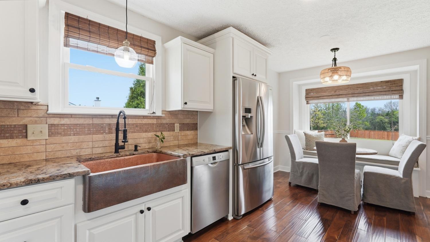 Welcome to 715 Poplar Drive, where space, flexibility, and convenience come together on a level one-acre lot in an established Mt. Juliet neighborhood. Freshly painted with new landscaping, this home reflects true pride of ownership from the moment you arrive. Inside, wood flooring runs through the main living areas, leading into an updated kitchen with Thomasville soft-close cabinets and a Patina sink. The home offers three bedrooms and three full baths, including a beautifully updated primary suite with a clawfoot tub and custom built-ins. The large bonus room with a walk-in closet and full bath provides incredible flexibility and works perfectly as a home office, rec room, playroom, or private guest suite. Out back, the fully fenced yard spans a flat, usable acre with a great patio for entertaining, plus a 16 by 10 storage shed. Additional features include a two-car attached garage, washer and dryer remaining, new roof, and new windows with transferable warranty. Less than 10 minutes to Providence shopping and dining, close to hiking and running trails, and just 30 minutes to downtown Nashville. Zoned for highly regarded Wilson County schools.