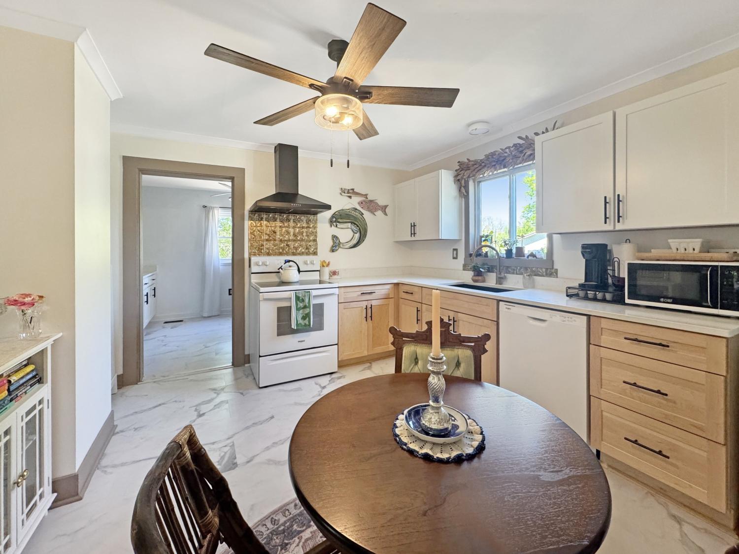 Charming Cottage in Town! Welcome to this beautifully updated 2 bedroom, 1 full bath cottage-style home, perfectly situated on a level 0.34 acre lot. Offers a subtle peek of the water from the house This home offers the perfect blend of classic charm and modern updates, with just enough opportunity left to make it your own. From the moment you arrive, you’ll love the inviting curb appeal featuring a stone exterior, cozy covered front porch, and fully fenced back yard. The backyard offers a great setup with a patio and firepit area, perfect for relaxing evenings. Inside, you’ll find a bright and welcoming layout with updated flooring, fresh paint, and abundant natural light throughout. The kitchen has been refreshed with new cabinetry, countertops, and appliances, creating a clean and functional space. The bathroom has also been updated with modern finishes. Major improvements have already been completed, including updates to electrical, plumbing, HVAC, and more. While much of the work has been done, there’s still room for your personal finishing touches to truly make this home shine. If you’re looking for a move-in ready cottage with character, updates, and a great in-town location, this one checks all the boxes!