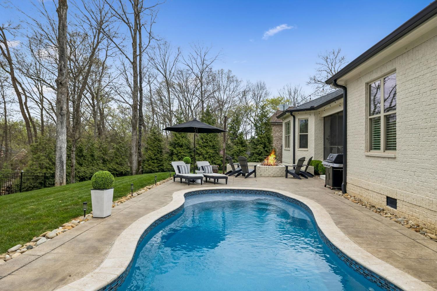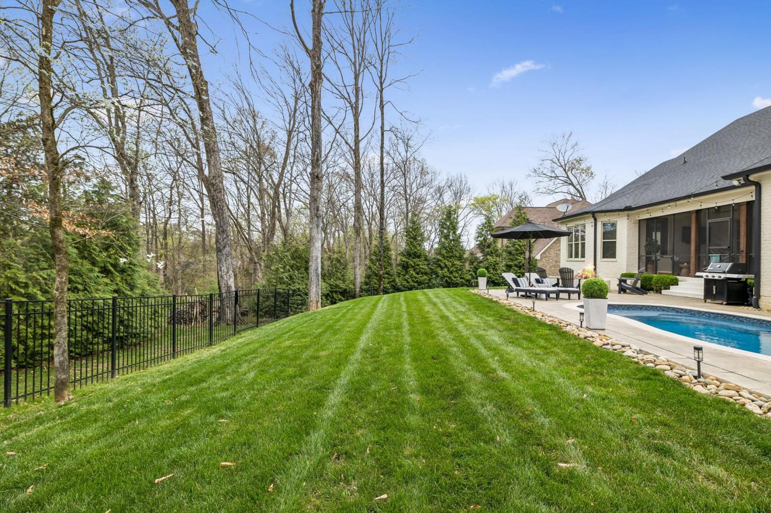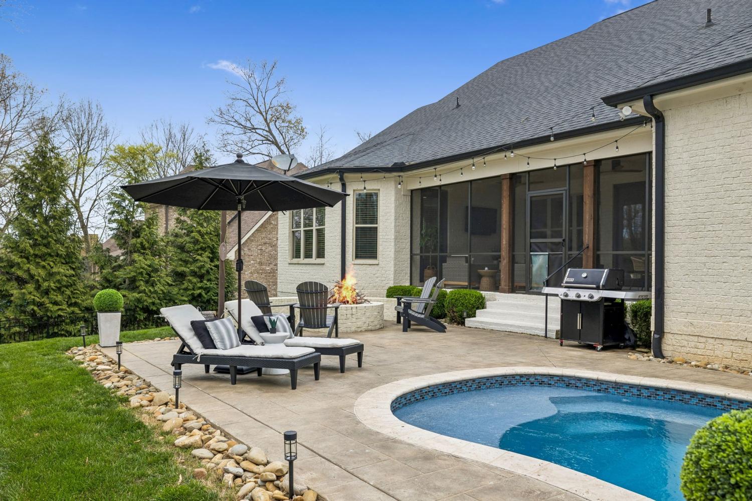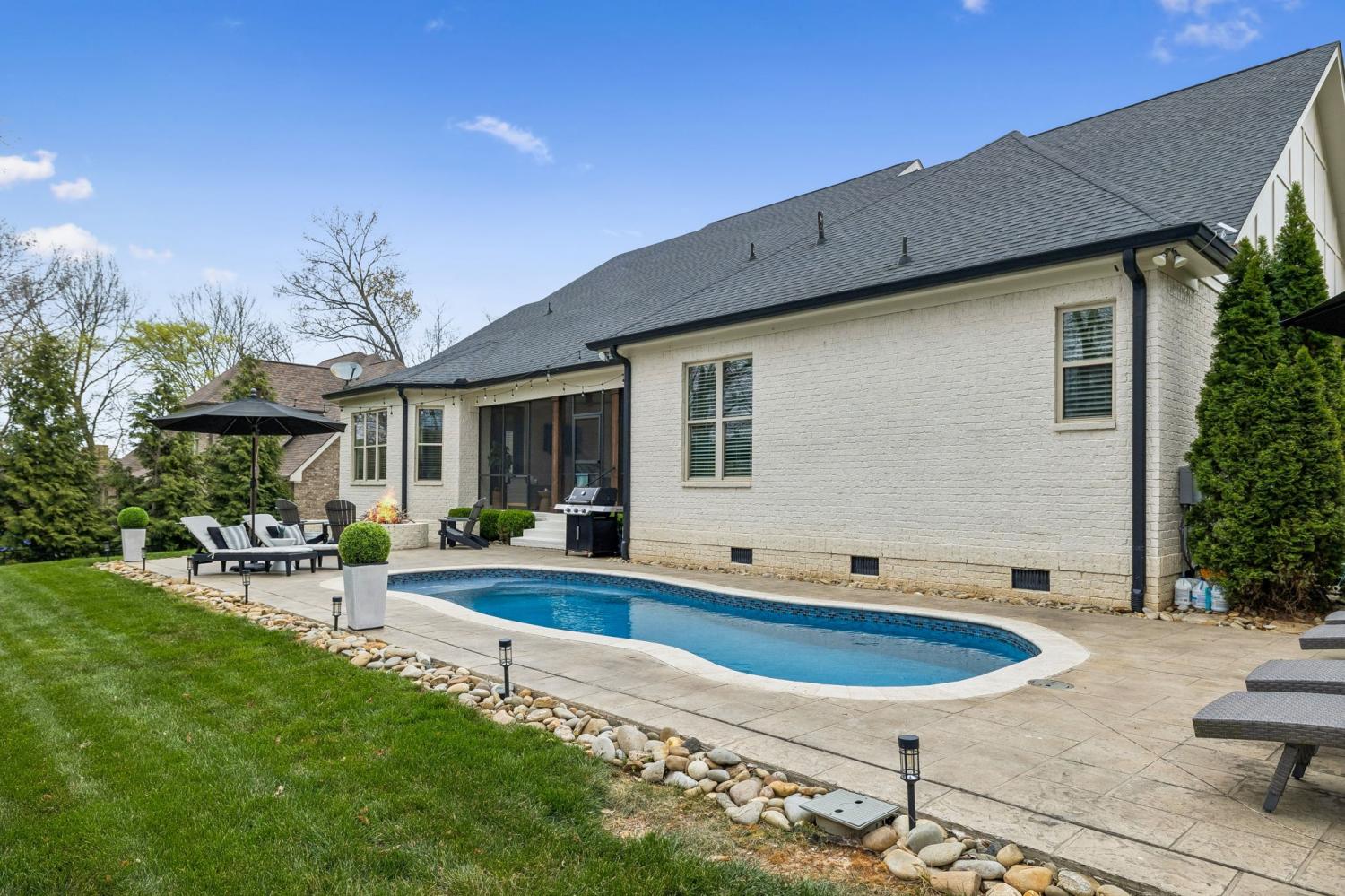 Nestled in the serene beauty of Kings Chapel, 4035 Old Light Circle, built by Tennessee Valley Homes, is where luxury meets comfort. This 4-bedroom, 3-bathroom masterpiece spans 3,842 square feet and is a premier property in Arrington TN. Every detail of this home has been thoughtfully curated to provide an elevated lifestyle. Step inside to discover an open floor plan that seamlessly connects the living, dining, and kitchen areas, all adorned with stunning hardwood floors throughout. The oversized primary suite is a haven of natural light, featuring a spa-like ensuite bath and a generous walk-in closet. Perfectly suited for both relaxation and entertaining, the living room boasts picturesque views that extend to a screened-in porch and a private, tree-lined backyard—your personal oasis. The outdoor space is truly a showstopper: a heated, saltwater pool with travertine coping and a cool decking patio installed in 2020 is surrounded by lush landscaping. Whether you are lounging by the pool, gathered around the fire pit, or enjoying the privacy of the fully fenced yard, this backyard is designed for ultimate enjoyment. Upgrades throughout the home add a touch of sophistication and convenience. Surround sound enhances both the living room and the upstairs media room for the ultimate entertainment experience. The completely renovated laundry utility room now features custom cabinetry, granite countertops, stylish tilework, and even a water filler for your furry friends. Reclaimed wooden beams lend character to the dining room, while new solid-core doors, upgraded lighting with dimmers, and ceiling fans have been thoughtfully installed throughout. 4035 Old Light Circle isn’t just a home—it’s a lifestyle. From the modern finishes to the entertainer's dream layout, this property offers a perfect blend of elegance, functionality, and charm. Don’t miss your chance to make this extraordinary retreat your own!