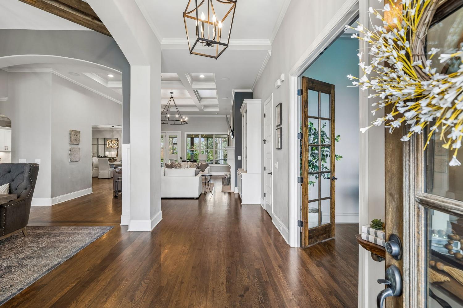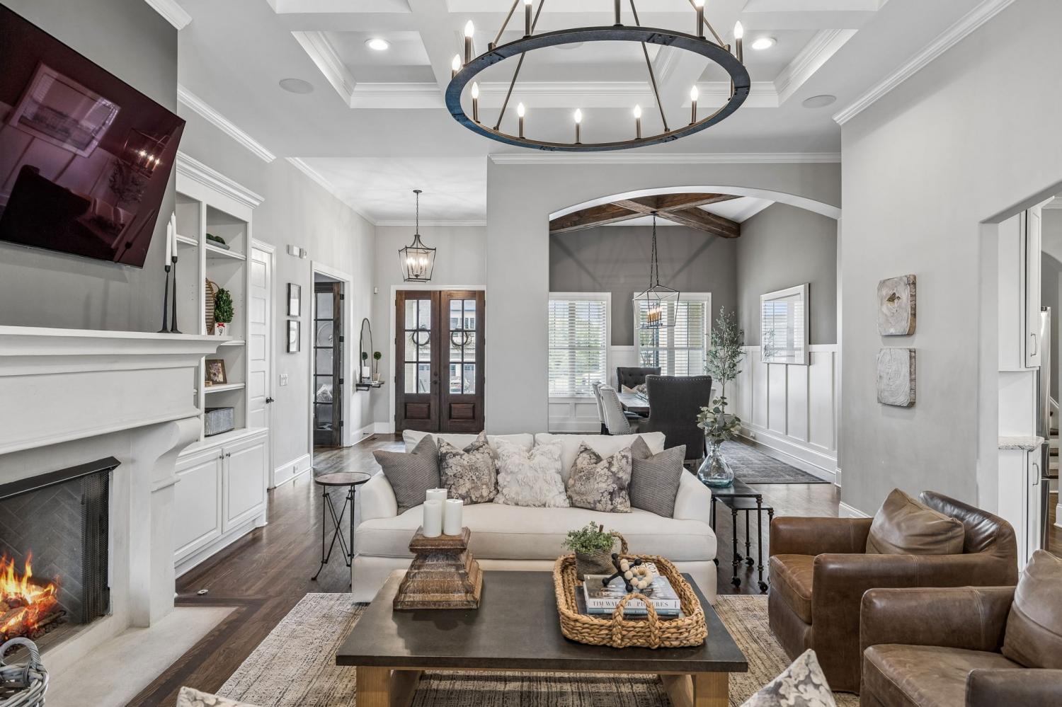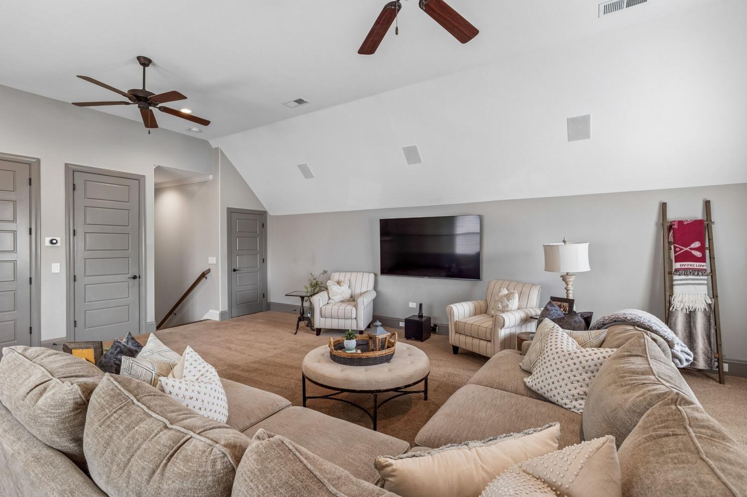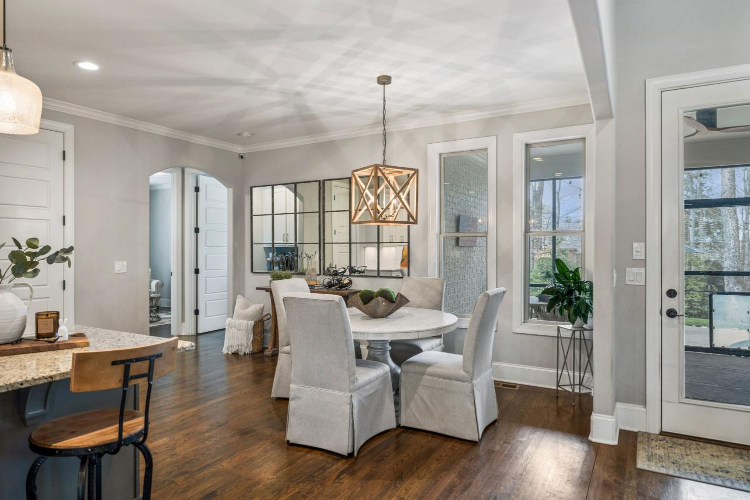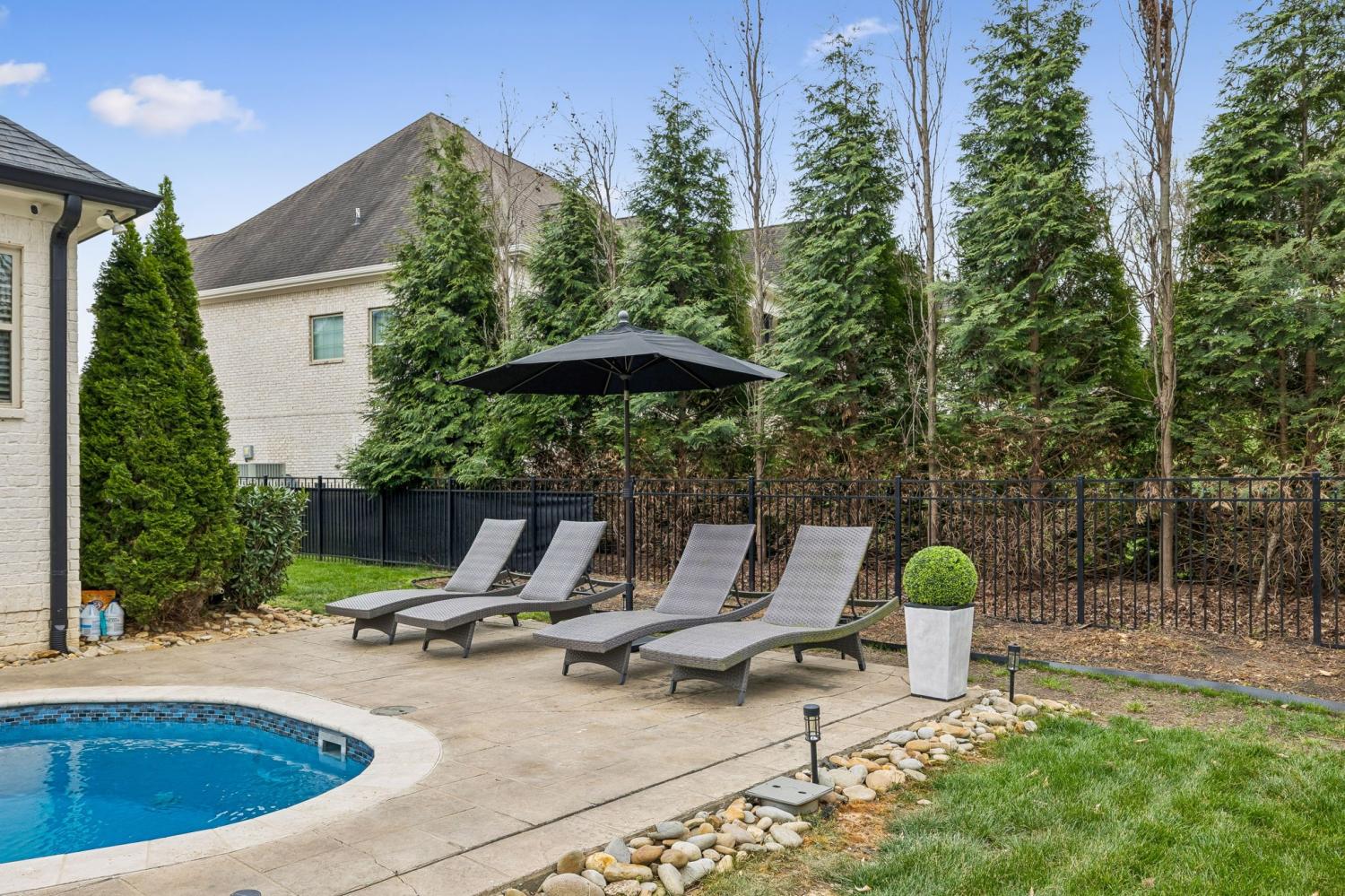 Nestled in the serene beauty of Kings Chapel, 4035 Old Light Circle, built by Tennessee Valley Homes, is where luxury meets comfort. This 4-bedroom, 3-bathroom masterpiece spans 3,842 square feet and is a premier property in Arrington TN. Every detail of this home has been thoughtfully curated to provide an elevated lifestyle. Step inside to discover an open floor plan that seamlessly connects the living, dining, and kitchen areas, all adorned with stunning hardwood floors throughout. The oversized primary suite is a haven of natural light, featuring a spa-like ensuite bath and a generous walk-in closet. Perfectly suited for both relaxation and entertaining, the living room boasts picturesque views that extend to a screened-in porch and a private, tree-lined backyard—your personal oasis. The outdoor space is truly a showstopper: a heated, saltwater pool with travertine coping and a cool decking patio installed in 2020 is surrounded by lush landscaping. Whether you are lounging by the pool, gathered around the fire pit, or enjoying the privacy of the fully fenced yard, this backyard is designed for ultimate enjoyment. Upgrades throughout the home add a touch of sophistication and convenience. Surround sound enhances both the living room and the upstairs media room for the ultimate entertainment experience. The completely renovated laundry utility room now features custom cabinetry, granite countertops, stylish tilework, and even a water filler for your furry friends. Reclaimed wooden beams lend character to the dining room, while new solid-core doors, upgraded lighting with dimmers, and ceiling fans have been thoughtfully installed throughout. 4035 Old Light Circle isn’t just a home—it’s a lifestyle. From the modern finishes to the entertainer's dream layout, this property offers a perfect blend of elegance, functionality, and charm. Don’t miss your chance to make this extraordinary retreat your own!