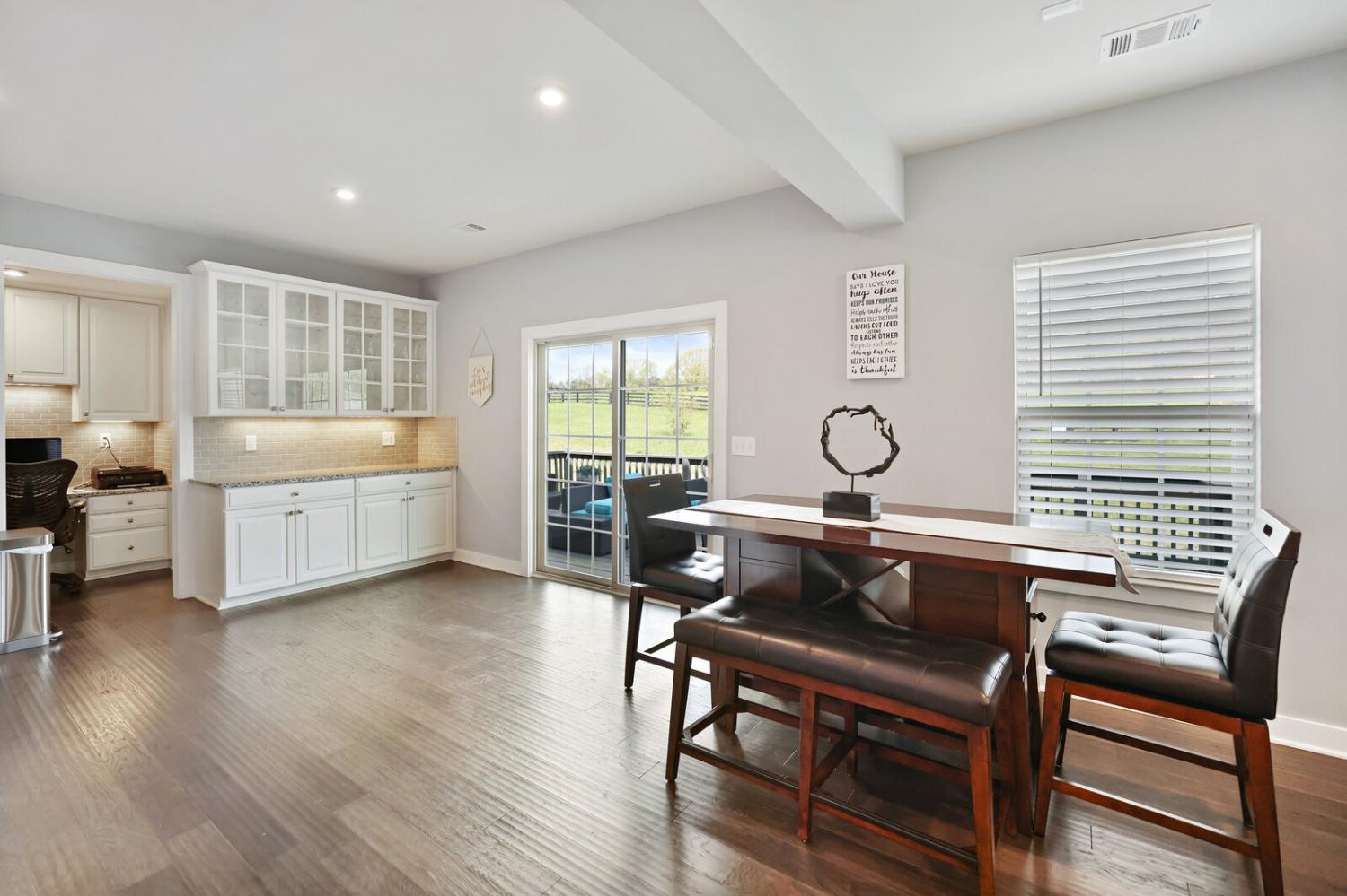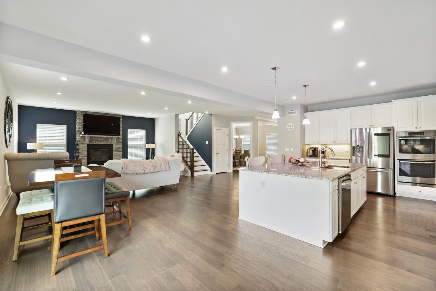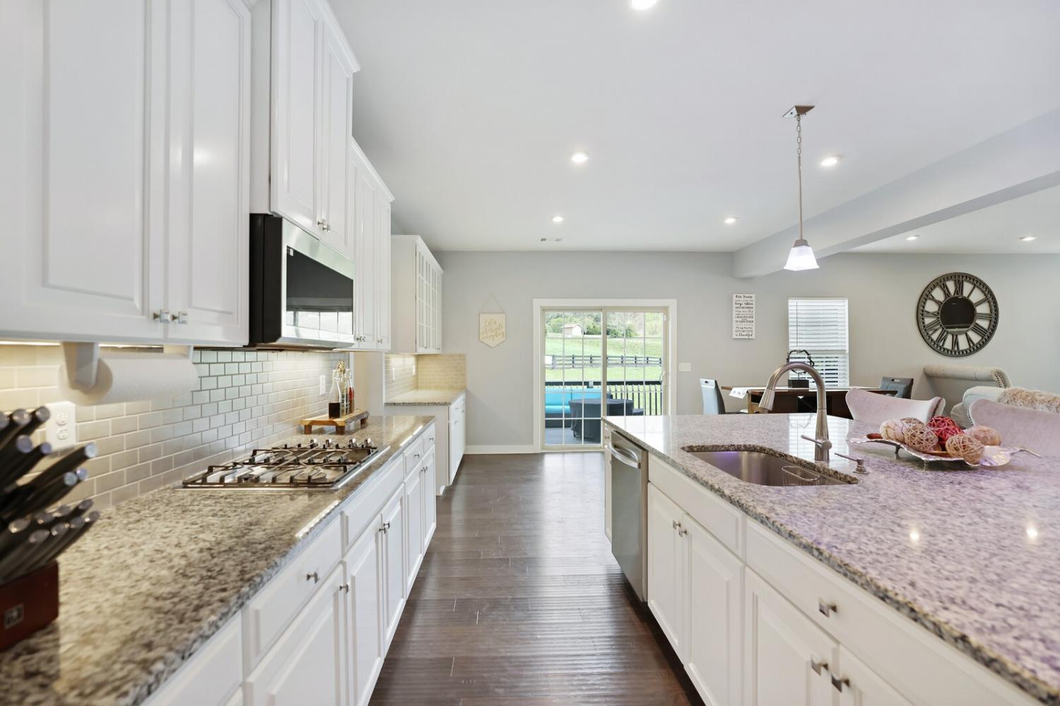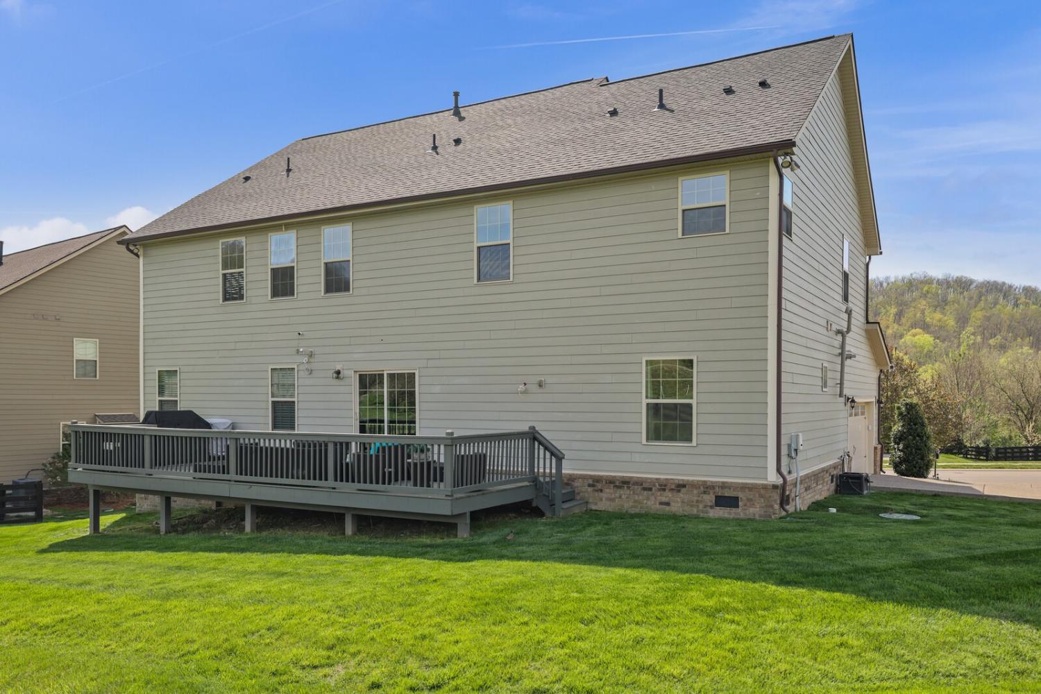 This spacious and beautifully designed home offers over 4,100 square feet of living space, featuring 5 bedrooms plus a large bonus room that can easily serve as a 6th bedroom, and 4 full baths, all situated on a generous lot with a peaceful wooded view. Located in a highly sought-after area and zoned for top-rated Williamson County schools, Clovercroft Elementary, Woodland Middle, and Ravenwood High, this home combines space, functionality, and an exceptional location. Inside, the home welcomes you with a formal dining room just off the entry, highlighted by a stylish blue accent wall, and a dedicated office across the foyer, perfect for working from home. The open-concept main living area is ideal for entertaining, featuring a stunning stacked stone fireplace and seamless flow into the kitchen and dining spaces. The kitchen is both spacious and well-appointed, offering white cabinetry, stainless steel appliances, a large center island, and an adjoining eat-in dining area. Just off the kitchen, a convenient dry bar or office nook adds extra functionality for everyday living. Upstairs, the primary suite provides a true retreat with a cozy sitting area and a spacious en-suite bathroom complete with dual vanities and a large soaking tub. Additional bedrooms offer flexibility for family, guests, or hobbies, while the bonus room has been thoughtfully converted into a movie theater, perfect for entertaining or relaxing at home. Step outside to enjoy the covered porch and expansive deck overlooking the backyard and wooded green space beyond, creating a private and serene outdoor setting. With its generous layout, thoughtful upgrades, and prime location, this home offers the perfect blend of comfort, style, and everyday convenience. New roof, May 2025. Up to 1% lender credit on the loan amount when buyer uses Seller's Preferred Lender.