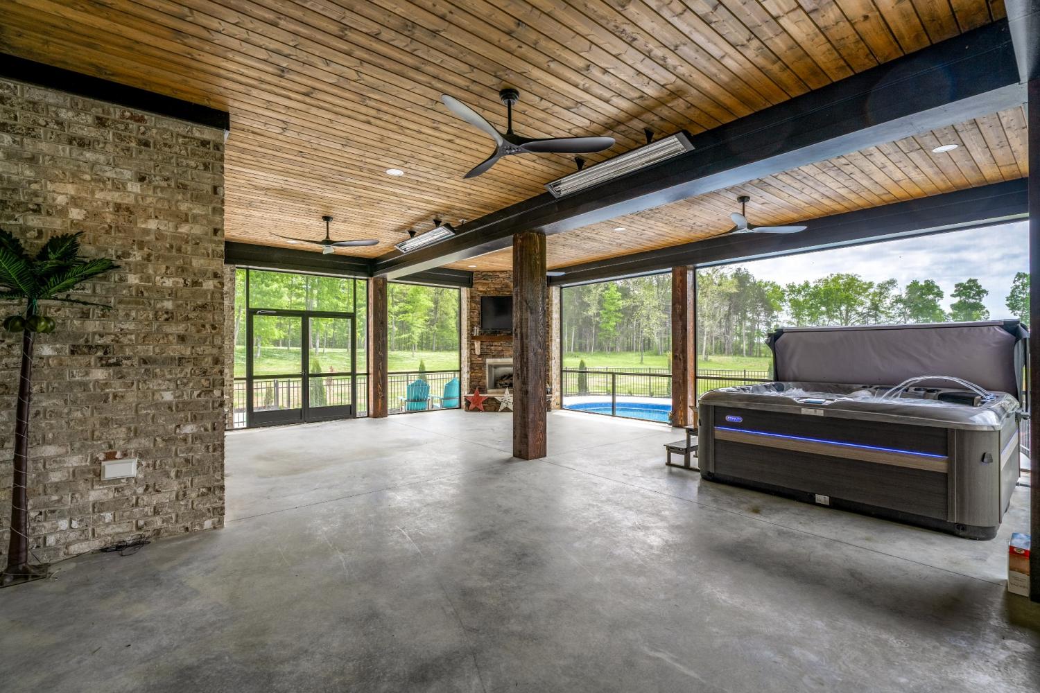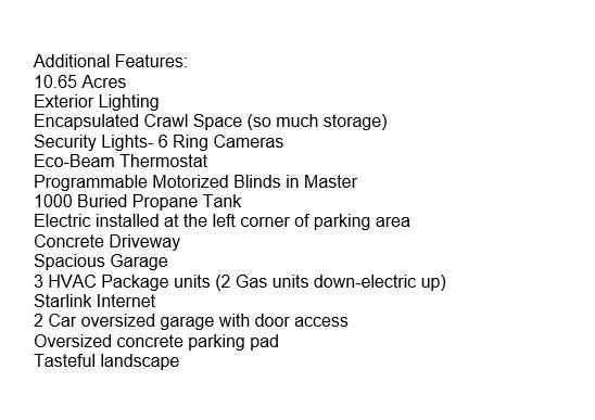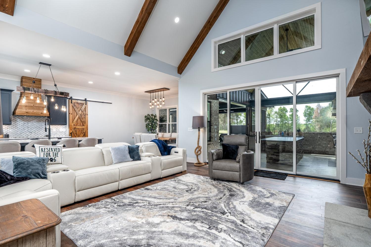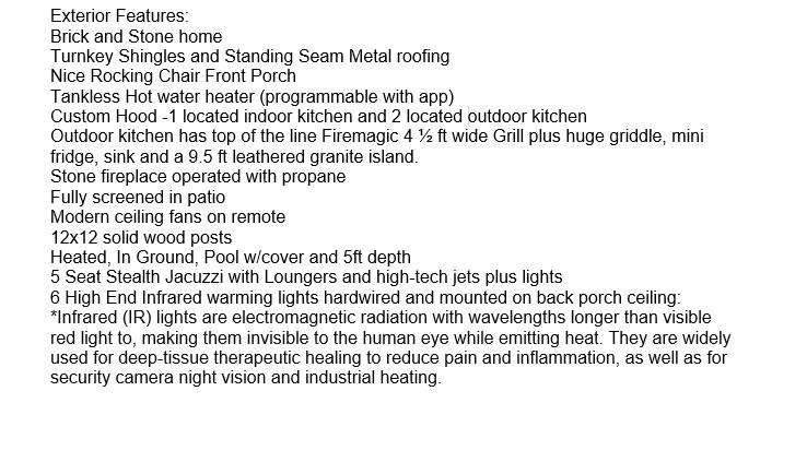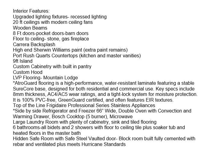 This home will check boxes you didn't know you had!! Upgrades and specialties galore. Brick and stone modern luxury home on 10.65 Flat acres. Once inside one will be filled with feelings of grandeur. Take in 20ft tall ceilings, wooden beams, floor to ceiling stone fireplace and rustic wooden look of the LVP flooring. Modern meets rustic meets farmhouse in a beautiful symphony of kitchen, living, dining and even outdoor space. The kitchen offers True "Top of the Line" Frigidaire Professional series Appliances including a double fridge/freezer (66" wide), Dishwasher, Double Oven w/Convection plus Warming Drawer. The 37" Custom Hood compliments a Bosch cooktop. Carefully selected Carrara Backsplash is perfect against the Cyber Space darker paint tones and striking veins of the Port Rush Quartz brings it all together. Large walk in pantry built into the beautiful modern custom cabinets This remarkable home offers 4 larger bedrooms,3 on the main floor, and 6 bathrooms (all bidets). Oversized master bedroom has His and Hers EVERYTHING- Including his/hers private bathrooms in the master en suite and massive his/hers custom closets, including a hidden “Safe” complete room w/a steel vault door, built to hurricane standards. Tile flooring, heated floors, quartz vanities, pocket doors, private bidets, shower heads and seating for 2 enhanced by fine tile w/pebble accent plus soaker tub. Upstairs you will find a spacious bonus room and bedroom (currently being used as a theatre/media room). Entertain away or retreat to the outdoors for ultimate experience. Senses awaken when you step into the enormous screened in back patio w/ every amenity you could want. The most impressive outdoor custom kitchen awaits offering Top of the Line Firemagic huge grill and griddle, huge Island with leathered granite, 2 towering hoods plus a mini fridge. Take a swim in the heated in ground pool or enjoy watching deer in your backyard while sitting in the hot tub taking in warmth of stone fireplace.