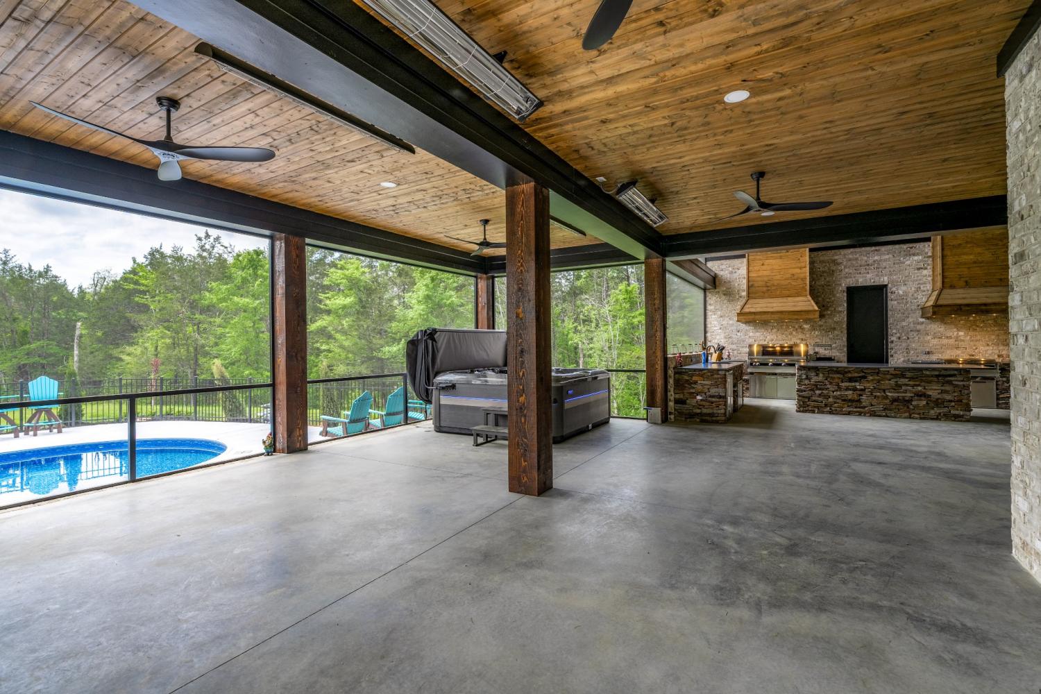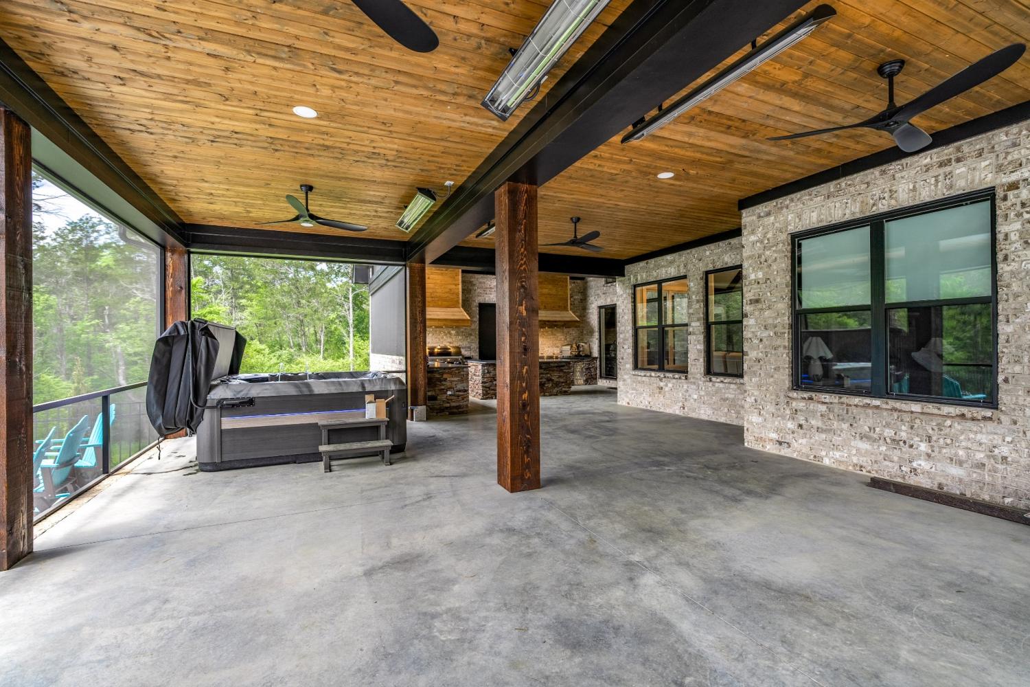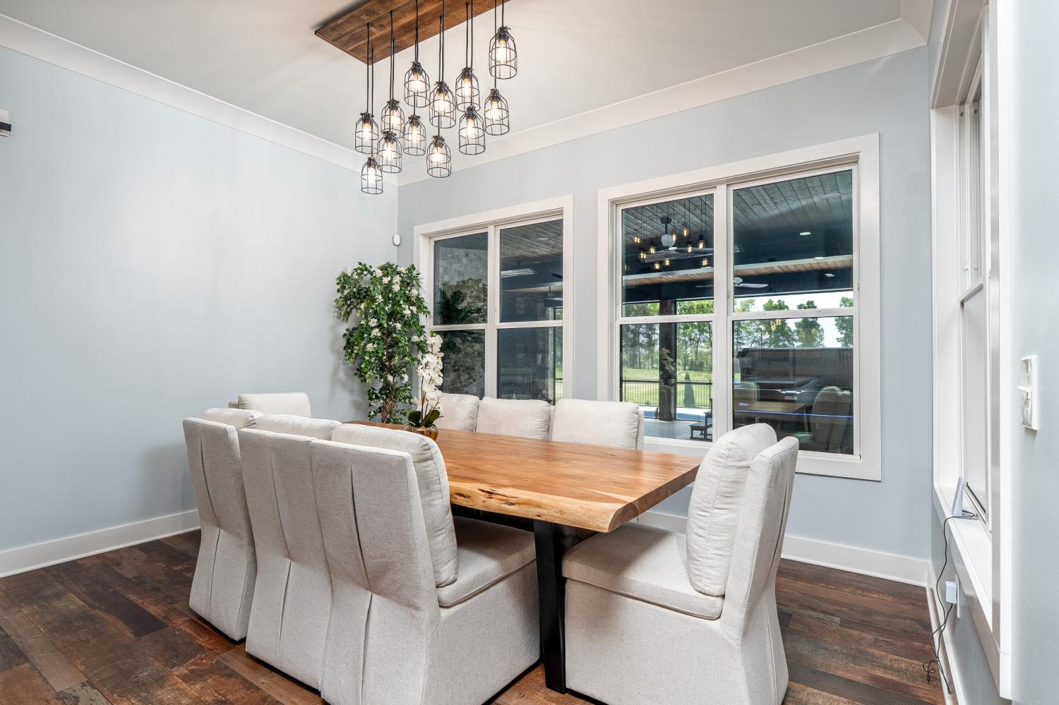 This home will check boxes you didn't know you had!! Upgrades and specialties galore. Brick and stone modern luxury home on 10.65 Flat acres. Once inside one will be filled with feelings of grandeur. Take in 20ft tall ceilings, wooden beams, floor to ceiling stone fireplace and rustic wooden look of the LVP flooring. Modern meets rustic meets farmhouse in a beautiful symphony of kitchen, living, dining and even outdoor space. The kitchen offers True "Top of the Line" Frigidaire Professional series Appliances including a double fridge/freezer (66" wide), Dishwasher, Double Oven w/Convection plus Warming Drawer. The 37" Custom Hood compliments a Bosch cooktop. Carefully selected Carrara Backsplash is perfect against the Cyber Space darker paint tones and striking veins of the Port Rush Quartz brings it all together. Large walk in pantry built into the beautiful modern custom cabinets This remarkable home offers 4 larger bedrooms,3 on the main floor, and 6 bathrooms (all bidets). Oversized master bedroom has His and Hers EVERYTHING- Including his/hers private bathrooms in the master en suite and massive his/hers custom closets, including a hidden “Safe” complete room w/a steel vault door, built to hurricane standards. Tile flooring, heated floors, quartz vanities, pocket doors, private bidets, shower heads and seating for 2 enhanced by fine tile w/pebble accent plus soaker tub. Upstairs you will find a spacious bonus room and bedroom (currently being used as a theatre/media room). Entertain away or retreat to the outdoors for ultimate experience. Senses awaken when you step into the enormous screened in back patio w/ every amenity you could want. The most impressive outdoor custom kitchen awaits offering Top of the Line Firemagic huge grill and griddle, huge Island with leathered granite, 2 towering hoods plus a mini fridge. Take a swim in the heated in ground pool or enjoy watching deer in your backyard while sitting in the hot tub taking in warmth of stone fireplace.