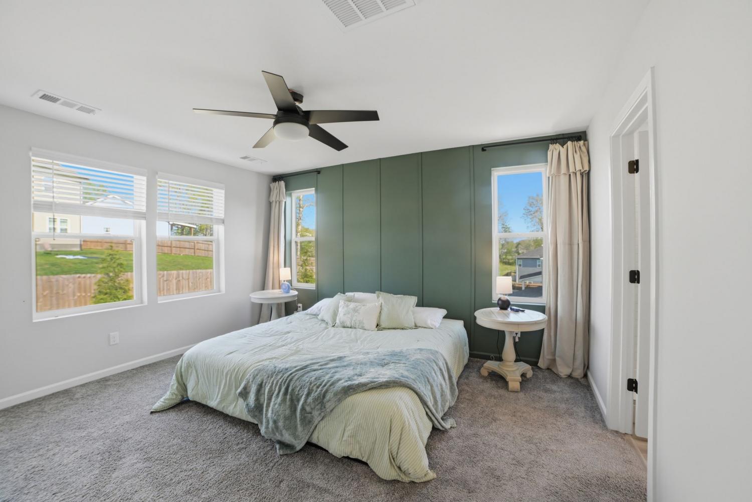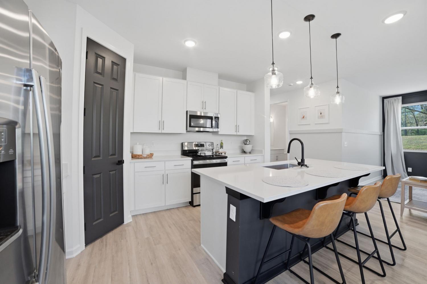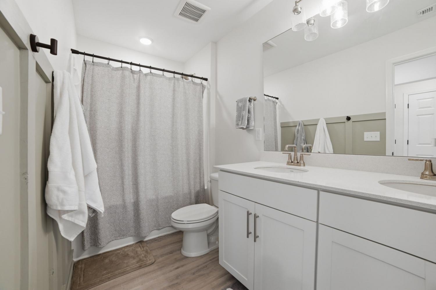 Welcome home to 121 Timber Crest Trail in White Bluff, a 4BR/3BA home in a great location with approximately 2,000 square feet of thoughtfully designed living space. The floor plan is flexible, featuring a main-level bedroom and full bath for easy living, plus a primary suite and two additional bedrooms and two more full baths upstairs, and an upstairs laundry room. An open foyer with a drop zone leads into a bright, open living/dining/kitchen area centered around a large island with seating, while a walk-in pantry provides extra storage and convenience. A two-car garage with shelving rounds out the practical side of this home. The low-maintenance yard includes a small rear patio ideal for grilling or relaxing outdoors. All appliances are included, including the refrigerator, washer and dryer, and a garage freezer, making this home turnkey and ready for immediate occupancy. This property is truly move-in ready, with nothing extra to do for most buyers beyond personal touches and furnishings.