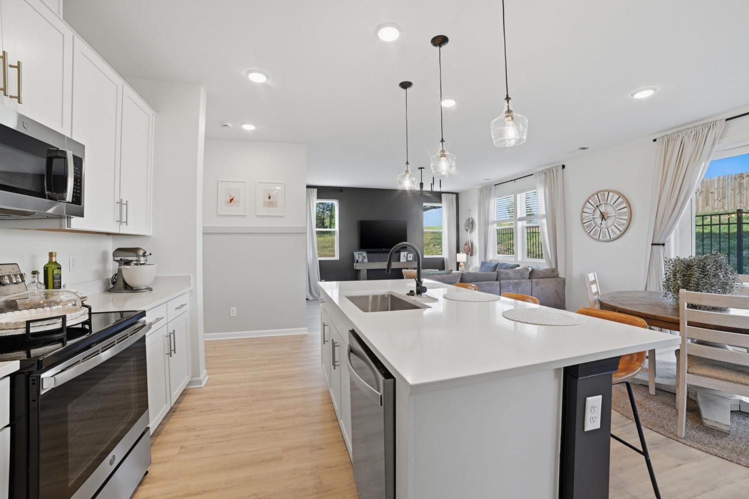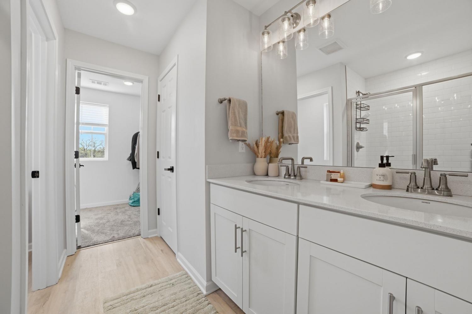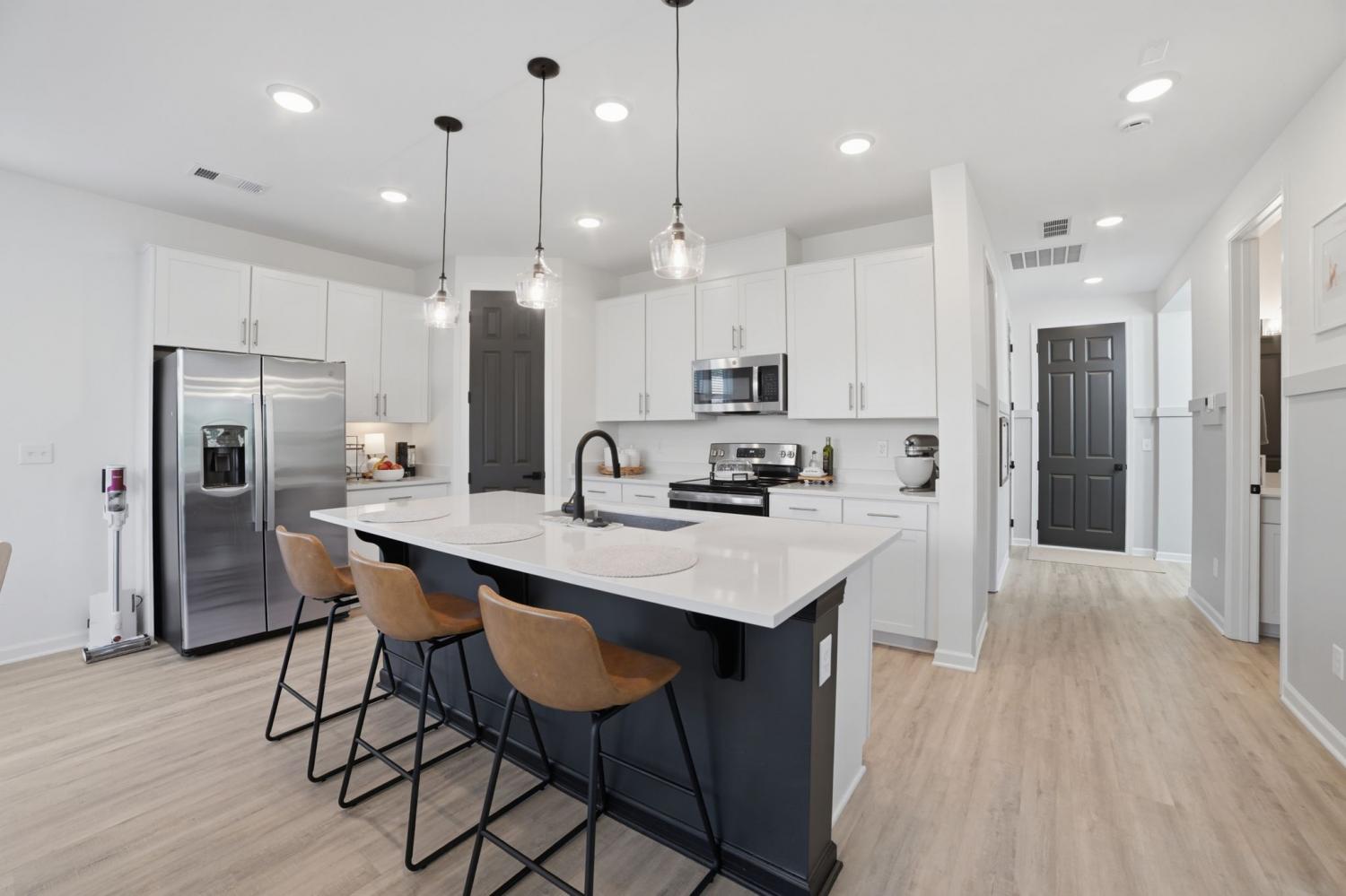 Welcome home to 121 Timber Crest Trail in White Bluff, a 4BR/3BA home in a great location with approximately 2,000 square feet of thoughtfully designed living space. The floor plan is flexible, featuring a main-level bedroom and full bath for easy living, plus a primary suite and two additional bedrooms and two more full baths upstairs, and an upstairs laundry room. An open foyer with a drop zone leads into a bright, open living/dining/kitchen area centered around a large island with seating, while a walk-in pantry provides extra storage and convenience. A two-car garage with shelving rounds out the practical side of this home. The low-maintenance yard includes a small rear patio ideal for grilling or relaxing outdoors. All appliances are included, including the refrigerator, washer and dryer, and a garage freezer, making this home turnkey and ready for immediate occupancy. This property is truly move-in ready, with nothing extra to do for most buyers beyond personal touches and furnishings.