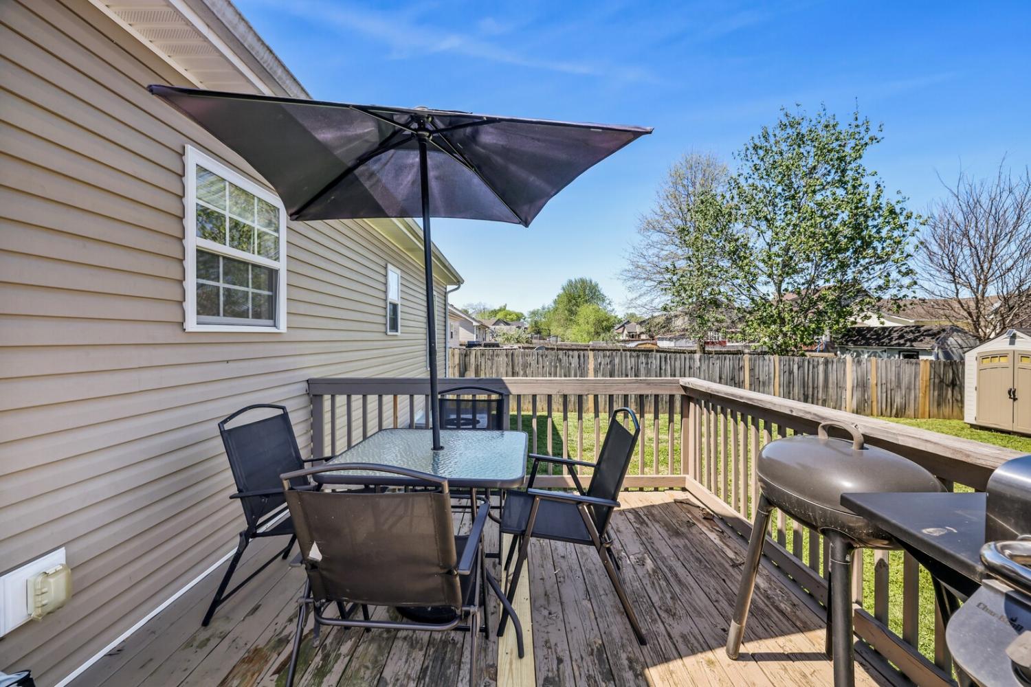 Welcome to 525 Oakmont Dr, a charming and well-maintained home that offers comfort, functionality, and inviting indoor-outdoor living. This 3-bedroom, 1.5-bath home features a spacious and light-filled living area with a tray ceiling that adds character and dimension to the main gathering space. The eat-in kitchen offers great flow for everyday living and opens directly to the back deck, making it perfect for easy entertaining or quiet mornings at home. The primary bedroom includes its own private half bath, while the fenced backyard provides plenty of room to relax, play, or enjoy pets with added privacy. A covered front porch adds to the home’s welcoming curb appeal, and the large rear deck creates an ideal extension of the living space outdoors. Conveniently located near Austin Peay State University and Fort Campbell, this home is a great fit for first-time home buyers, military families, and investors alike. With a functional layout, appealing features, and a comfortable setting, this home is a great opportunity for buyers looking for move-in-ready value and everyday convenience. Up to 1% lender credit on the loan amount when buyer uses Seller's Preferred Lender.