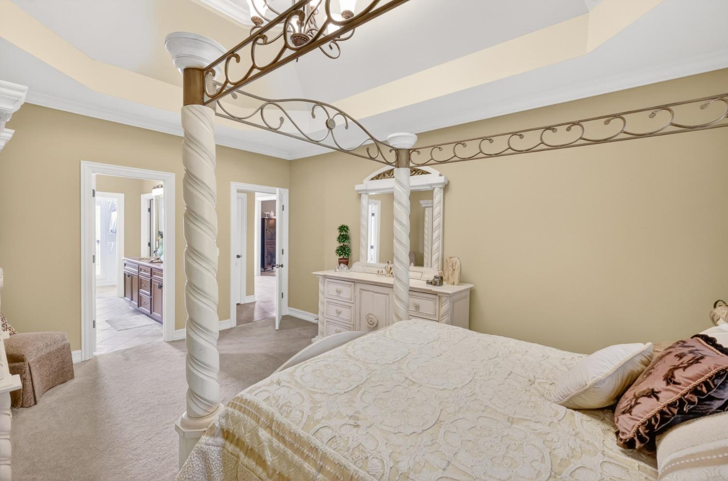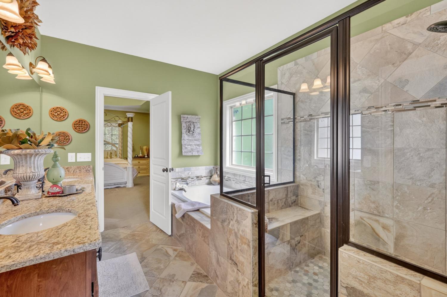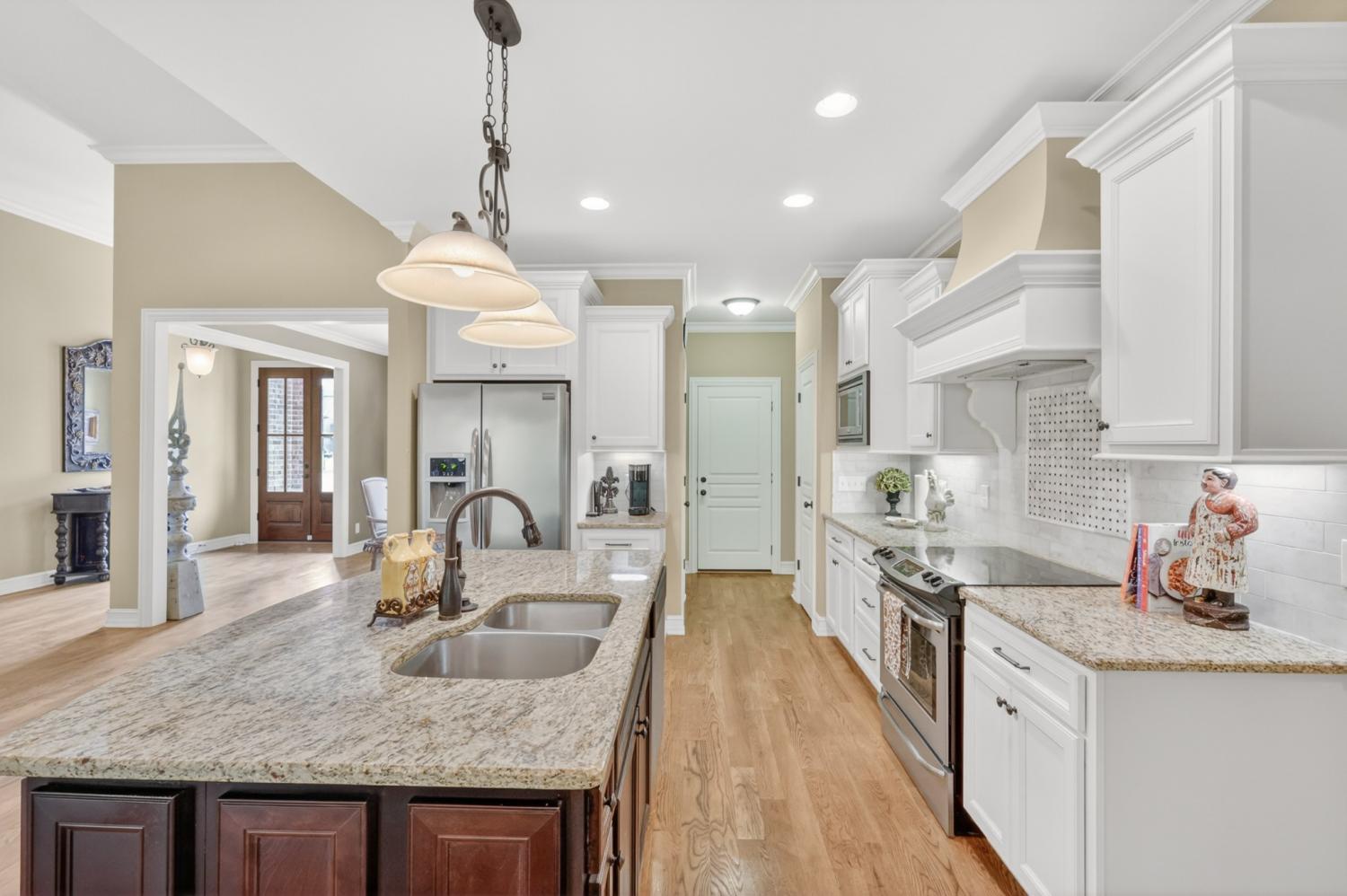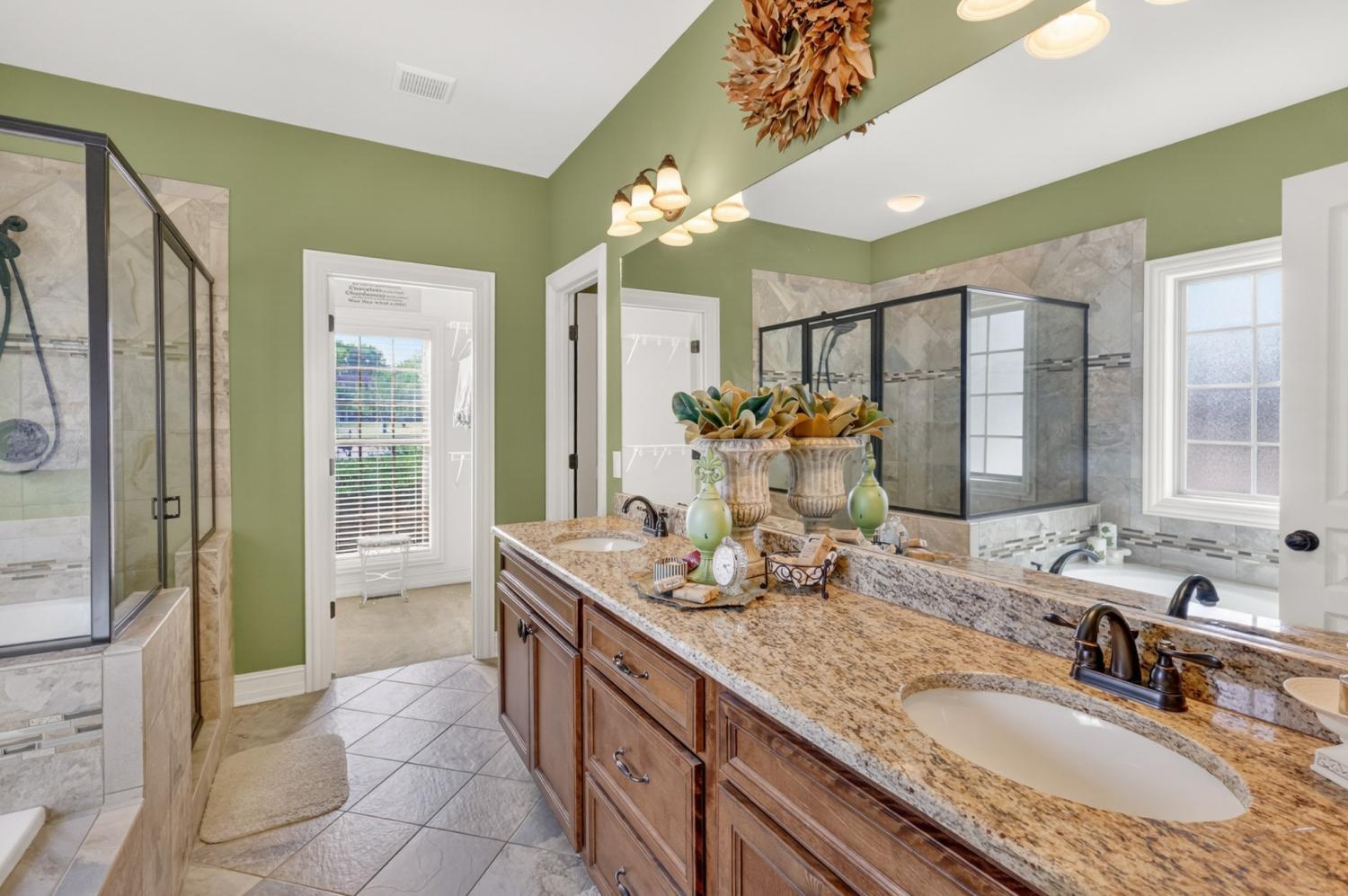 Tucked at the end of a beautiful cul-de-sac in the sought-after Valley View neighborhood, this brick and stone home offers comfort, space, and style on a generous .42-acre lot. Step inside to a welcoming foyer with gleaming hardwood floors and soaring 10+ foot ceilings that immediately set the tone. The space flows seamlessly into the living room, where a stunning fireplace and mantle create the perfect place to gather—whether for cozy nights in or entertaining guests. At the heart of the home, the chef’s kitchen features custom cabinetry, stainless steel appliances, a slide-in oven with cooktop, granite countertops, decorative tile backsplash, and a wood hood—designed for both beauty and function. The open layout keeps everyone connected with ease. The main level offers a highly desirable layout with three bedrooms and three full baths, including a serene primary suite. Enjoy a spa-like bath with soaking tub, tiled shower with glass door, and a private water closet. Upstairs, a spacious bonus room provides flexible living space, along with an additional bedroom and full bath—perfect for guests or a private retreat. Step outside to a covered deck and patio overlooking the backyard, ideal for relaxing or hosting. A two-car side-entry garage with pedestrian door and large side yard adds extra convenience. With a brand-new HVAC under warranty, this home blends timeless style with peace of mind—ready for its next chapter.
