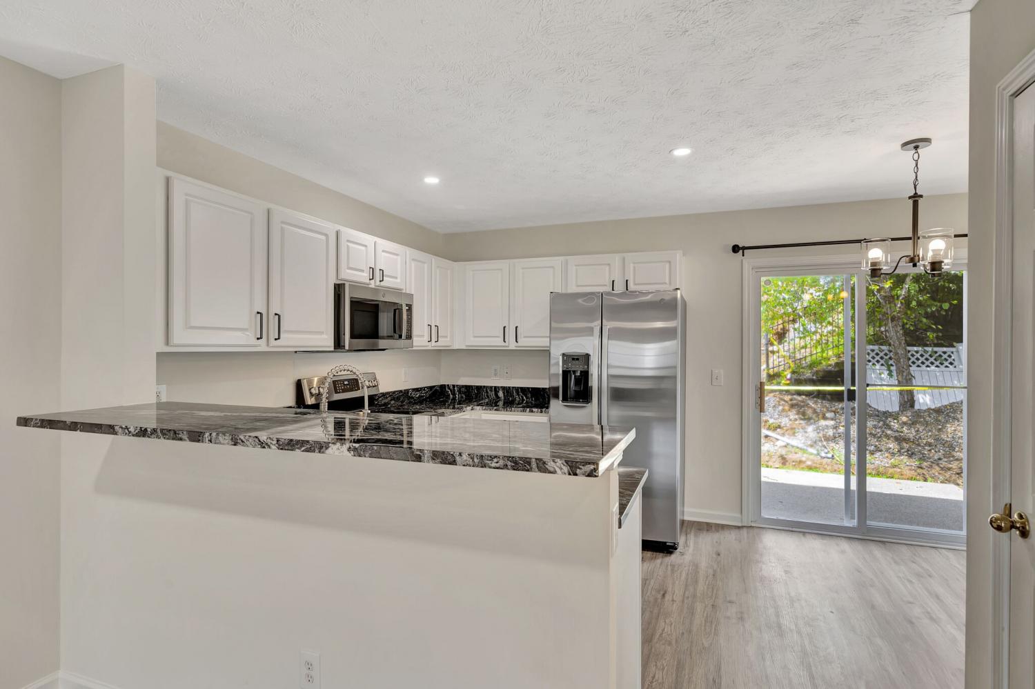 This beautifully updated condo features over $20,000 in upgrades completed just three years ago. The kitchen shines with stainless steel appliances, stunning granite countertops, an expanded bar area, refreshed cabinetry, and gorgeous updated flooring—perfect for both everyday living and entertaining. The dining room offers an inviting space with updated lighting and stylish flooring, ideal for hosting gatherings. A convenient half bath downstairs has been thoughtfully updated with a new sink, flooring, and toilet. Relax in the spacious living room, complete with updated flooring, a ceiling fan, and a cozy wood-burning fireplace—perfect for chilly winter days. Upstairs, you’ll find two comfortable bedrooms along with updated bathrooms featuring modern vanities and toilets. The upstairs flooring has also been refreshed, adding to the home’s cohesive feel. Step outside to enjoy a private patio area, along with a generously sized storage closet for added convenience.