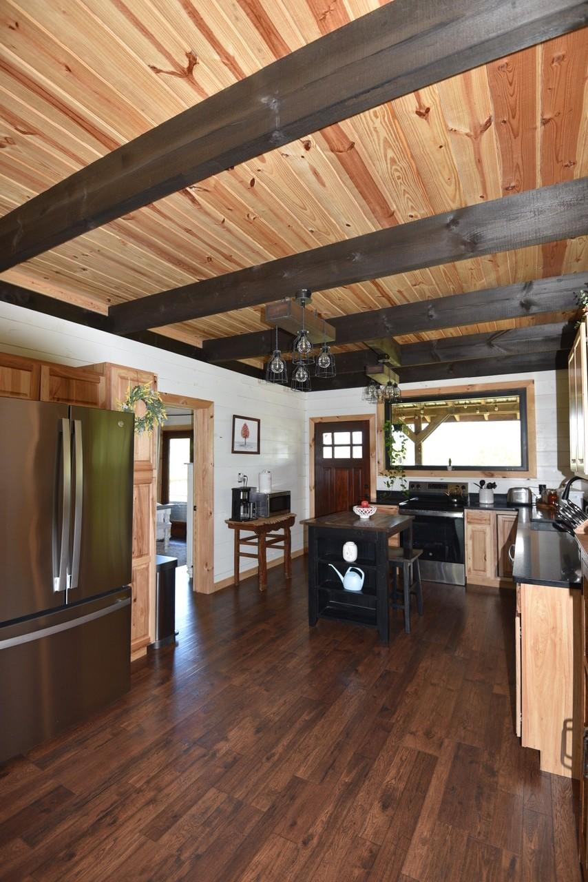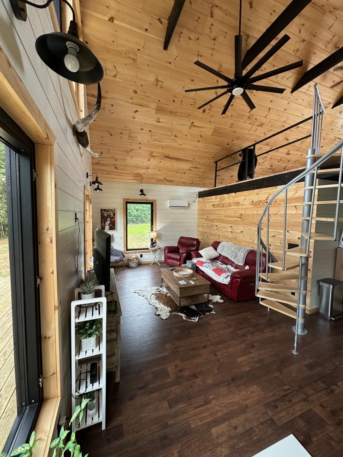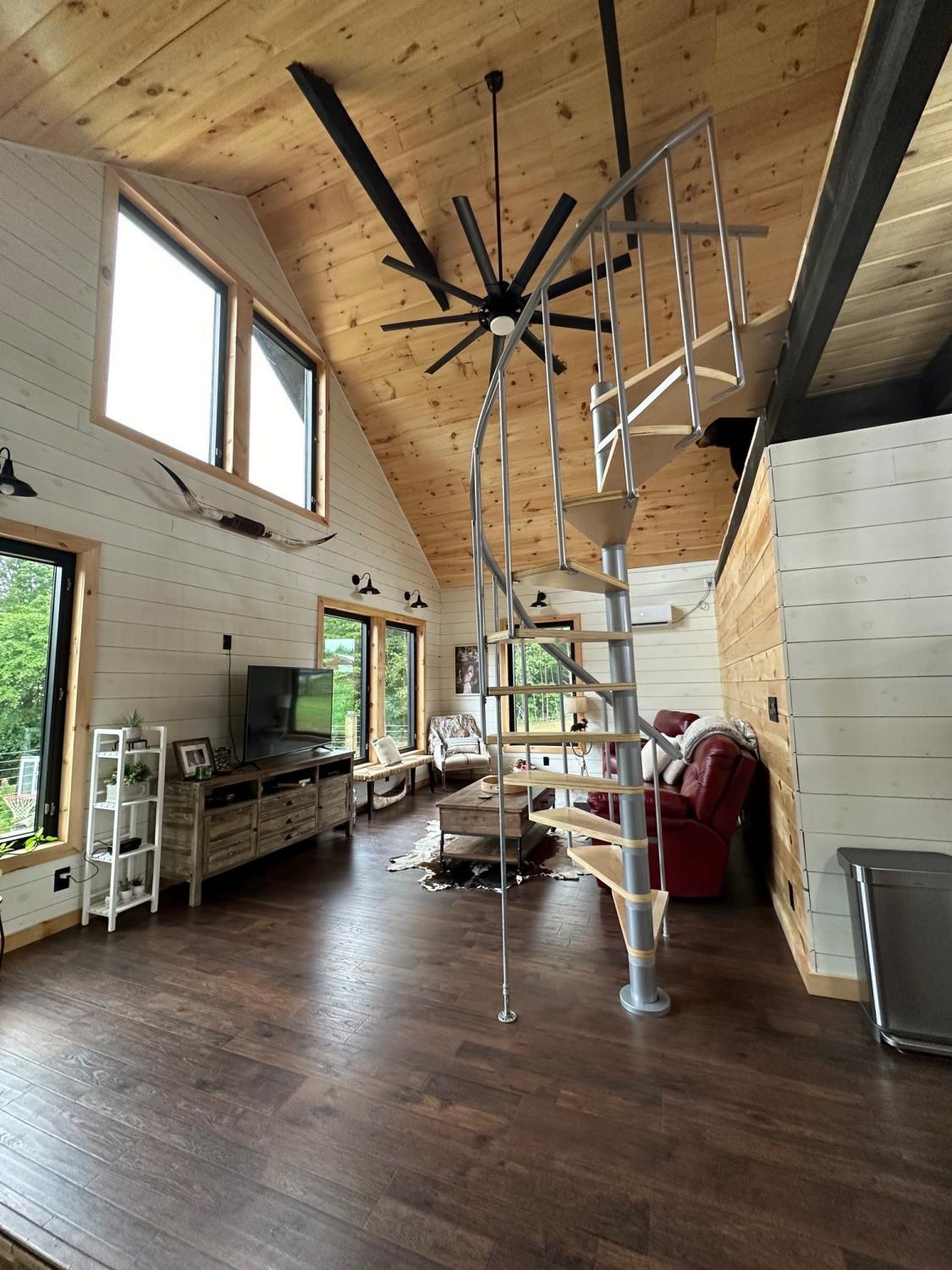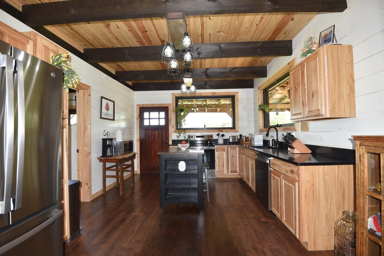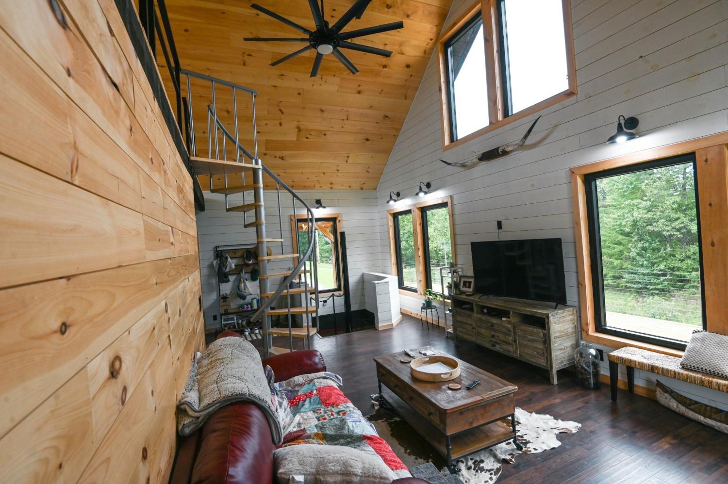 Tucked away just minutes from Fall Creek Falls State Park, this striking all-wood cabin offers the perfect blend of peaceful seclusion and modern convenience. Situated in an unrestricted, no zoning area, the property provides flexibility for a full time residence, weekend retreat, or investment opportunity. Surrounded by natural beauty, this one-of-a-kind property delivers privacy, character, and thoughtful upgrades throughout. Home Features: You will find quality craftsmanship in this solid wood construction home, enhanced by 6" seamless gutters, energy-efficient LED lighting, and current termite/pest service. The main level includes a secondary kitchen, presenting outstanding opportunities for multi-generational living or guest accommodations. A spacious 616 sq. ft. loft includes plumbing for an additional half bath, plus a comfortable sitting area and bedroom space. The main-level primary suite includes washer/dryer hookups for added convenience. Two beautiful spiral staircases create both architectural interest and functionality. Kitchen: Designed with both style and practicality in mind, the kitchen showcases custom-built countertops and a generously sized pantry ideal for organization and storage. Interior Appeal: The open-concept living area features vaulted ceilings and large windows that invite natural light. Bathrooms: Walk-in showers with modern fixtures deliver a spa-like, luxurious experience. Outdoor Living: Enjoy over 1,100 sq. ft. of wraparound porch space with sleek stainless steel cable railings. This expansive three-sided porch provides the perfect setting to relax or entertain. Garage & Workshop: The 24x40 insulated detached garage/shop includes a 16x40 lean-to and 200-amp service, making it ideal for hobbies, storage, equipment, or workspace needs. Land & Setting: Accessed through a gated entrance, the fully fenced property features a private road that circles the land, two spring-fed ponds, and a firepit area. Furnishings are negotiable.