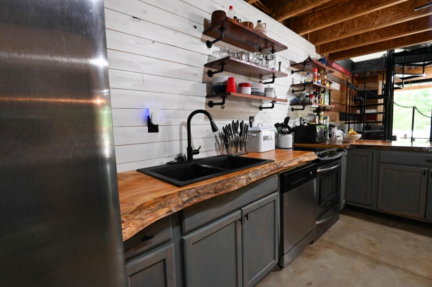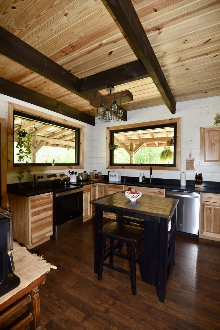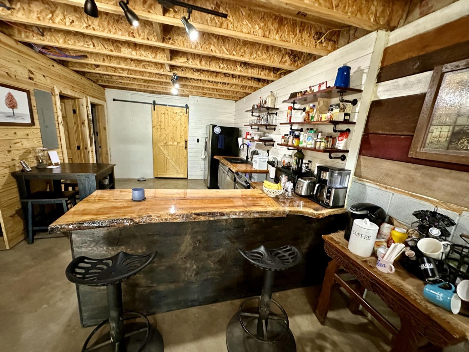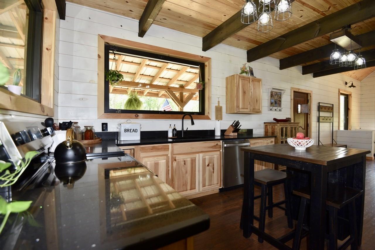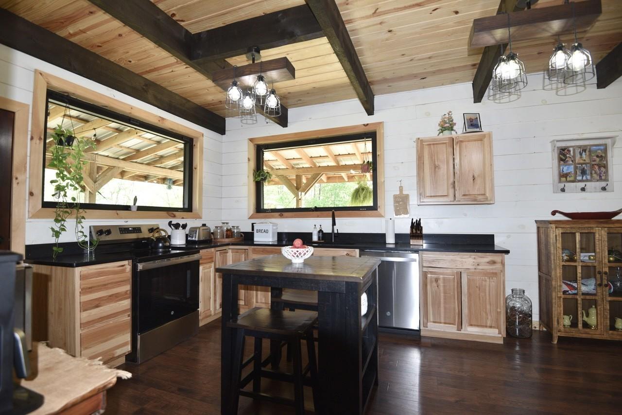 Tucked away just minutes from Fall Creek Falls State Park, this striking all-wood cabin offers the perfect blend of peaceful seclusion and modern convenience. Situated in an unrestricted, no zoning area, the property provides flexibility for a full time residence, weekend retreat, or investment opportunity. Surrounded by natural beauty, this one-of-a-kind property delivers privacy, character, and thoughtful upgrades throughout. Home Features: You will find quality craftsmanship in this solid wood construction home, enhanced by 6" seamless gutters, energy-efficient LED lighting, and current termite/pest service. The main level includes a secondary kitchen, presenting outstanding opportunities for multi-generational living or guest accommodations. A spacious 616 sq. ft. loft includes plumbing for an additional half bath, plus a comfortable sitting area and bedroom space. The main-level primary suite includes washer/dryer hookups for added convenience. Two beautiful spiral staircases create both architectural interest and functionality. Kitchen: Designed with both style and practicality in mind, the kitchen showcases custom-built countertops and a generously sized pantry ideal for organization and storage. Interior Appeal: The open-concept living area features vaulted ceilings and large windows that invite natural light. Bathrooms: Walk-in showers with modern fixtures deliver a spa-like, luxurious experience. Outdoor Living: Enjoy over 1,100 sq. ft. of wraparound porch space with sleek stainless steel cable railings. This expansive three-sided porch provides the perfect setting to relax or entertain. Garage & Workshop: The 24x40 insulated detached garage/shop includes a 16x40 lean-to and 200-amp service, making it ideal for hobbies, storage, equipment, or workspace needs. Land & Setting: Accessed through a gated entrance, the fully fenced property features a private road that circles the land, two spring-fed ponds, and a firepit area. Furnishings are negotiable.