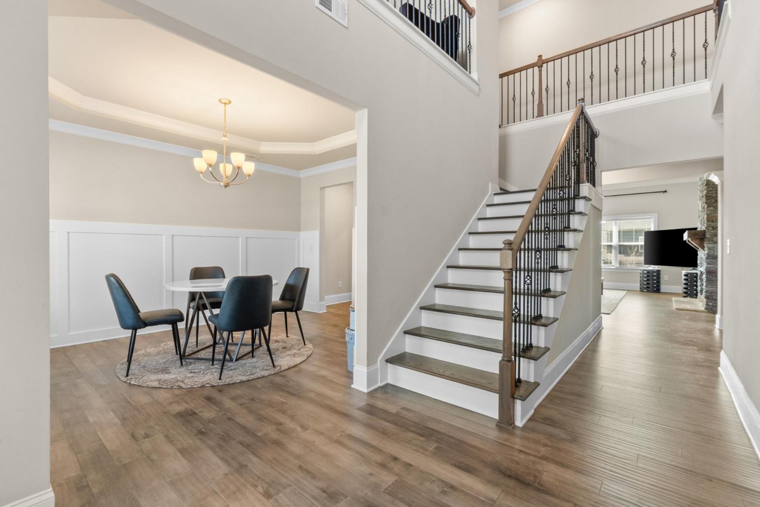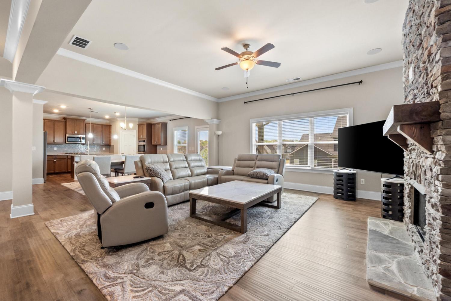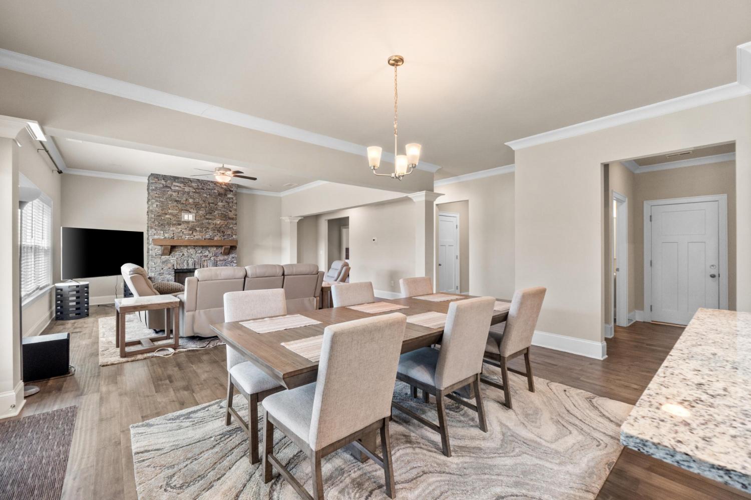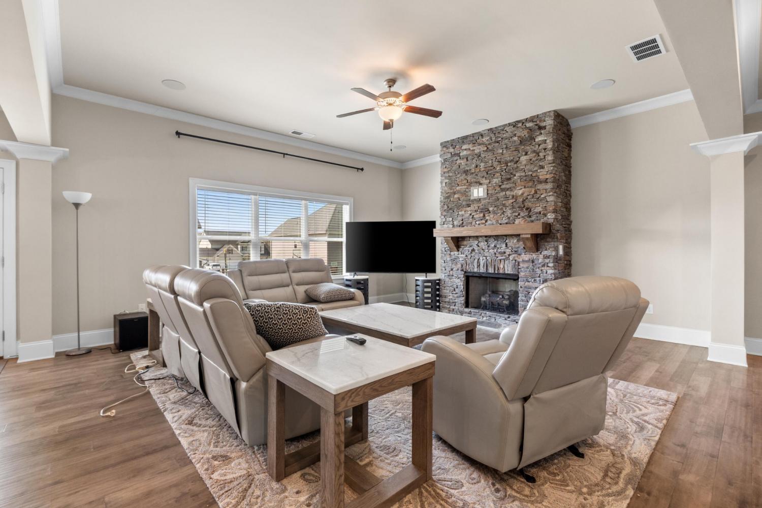 Furnished Executive Home for Lease in Meadow Stream - Prime Ooltewah Location Welcome to this beautifully maintained, move-in-ready furnished executive home in the highly desirable Meadow Stream subdivision. Offering over 3,800 sq ft of thoughtfully designed living space, this spacious residence features 5 bedrooms and 3.5 bathrooms, ideal for comfortable family living and elegant entertaining. As you enter, you are greeted by a grand two-story foyer with soaring ceilings that create a bright and open feel. The main level features an inviting open-concept layout with seamless flow between living areas. A formal dining room with hardwood flooring provides the perfect setting for hosting gatherings and special occasions. The gourmet kitchen is well-appointed with granite countertops, stainless steel appliances, ample cabinetry, and a stylish tile backsplash. It opens into the spacious great room, highlighted by hardwood floors and a beautiful stone fireplace, creating a warm and welcoming atmosphere. Built-in ceiling speakers enhance the main living area and media room, perfect for entertainment. The primary suite on the main level offers a private retreat with a comfortable sitting area, large walk-in closet, and well-designed bath space. Upstairs, you'll find additional bedrooms, a flexible loft area, and a large media/bonus room ideal for entertainment, work, or relaxation. Step outside to enjoy a covered porch and a generously sized backyard, perfect for outdoor living. Conveniently located near top-rated schools, shopping, dining, and Cambridge Square, this home combines space, comfort, and prime location. Fully furnished with beds, dining table, sofas, and more--this home is truly move-in ready. Schedule your showing today!