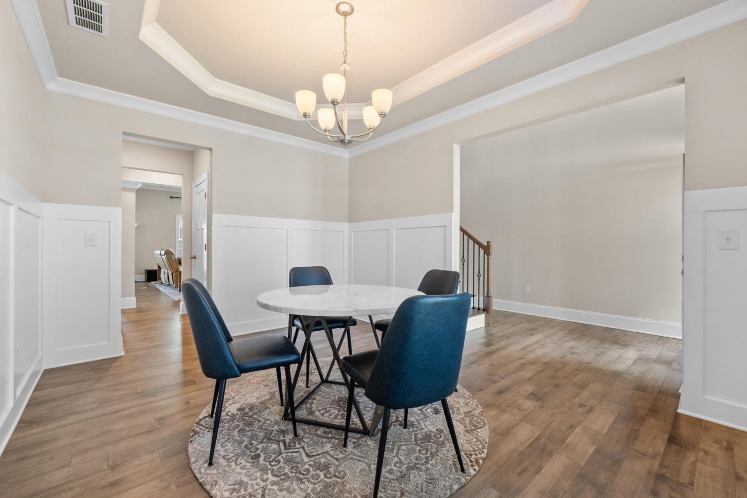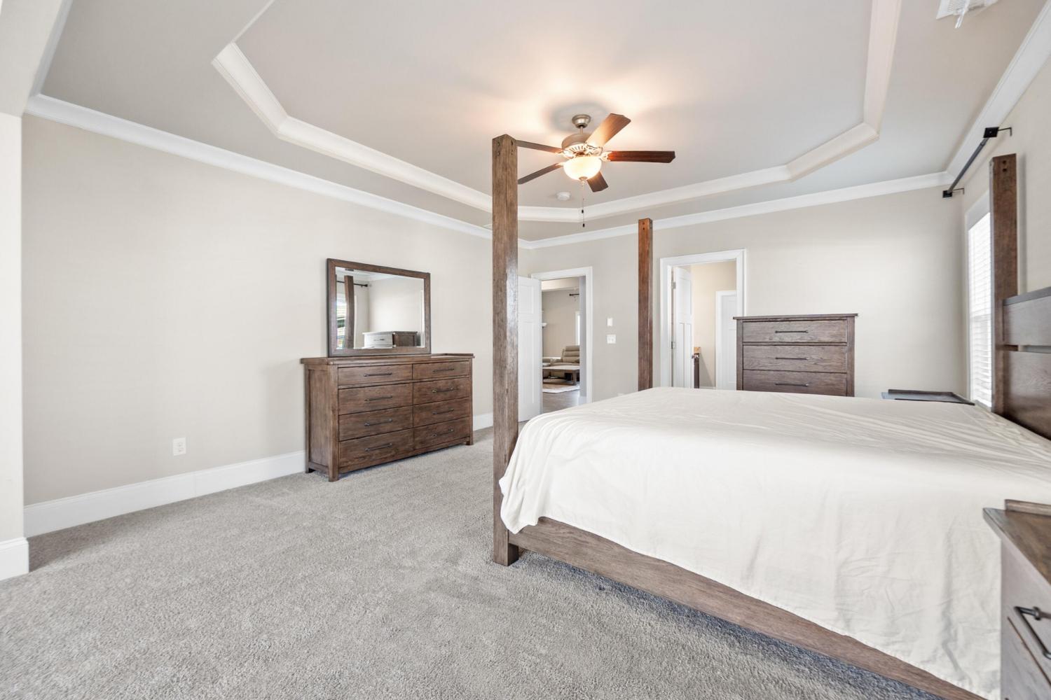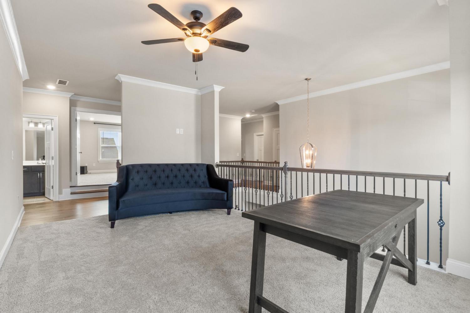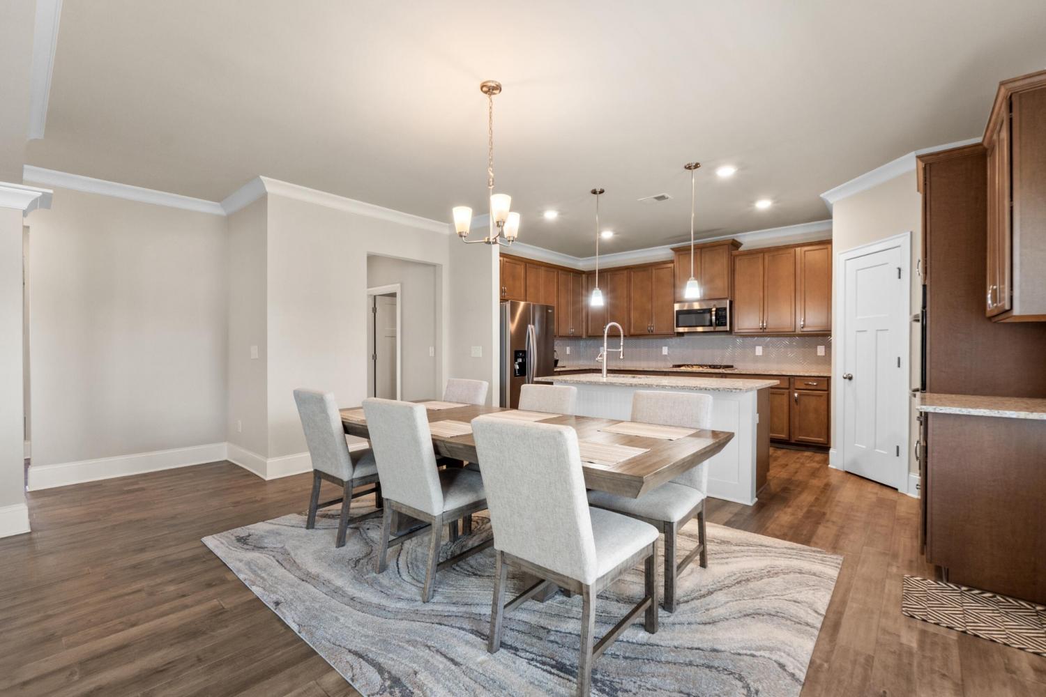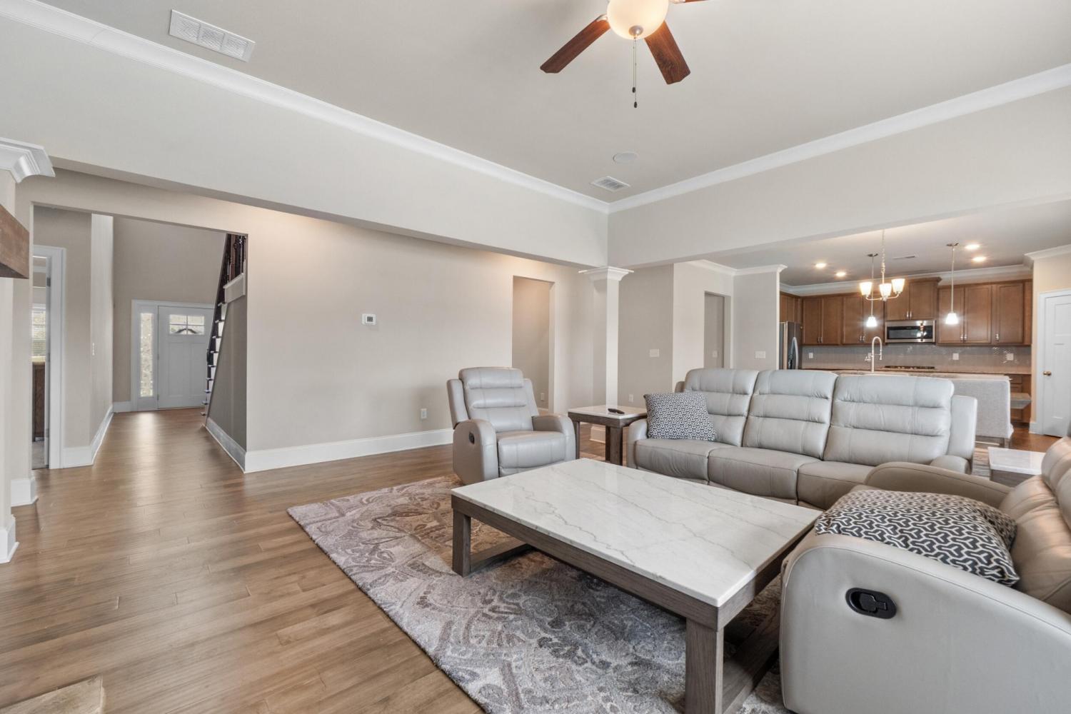 Furnished Executive Home for Lease in Meadow Stream - Prime Ooltewah Location Welcome to this beautifully maintained, move-in-ready furnished executive home in the highly desirable Meadow Stream subdivision. Offering over 3,800 sq ft of thoughtfully designed living space, this spacious residence features 5 bedrooms and 3.5 bathrooms, ideal for comfortable family living and elegant entertaining. As you enter, you are greeted by a grand two-story foyer with soaring ceilings that create a bright and open feel. The main level features an inviting open-concept layout with seamless flow between living areas. A formal dining room with hardwood flooring provides the perfect setting for hosting gatherings and special occasions. The gourmet kitchen is well-appointed with granite countertops, stainless steel appliances, ample cabinetry, and a stylish tile backsplash. It opens into the spacious great room, highlighted by hardwood floors and a beautiful stone fireplace, creating a warm and welcoming atmosphere. Built-in ceiling speakers enhance the main living area and media room, perfect for entertainment. The primary suite on the main level offers a private retreat with a comfortable sitting area, large walk-in closet, and well-designed bath space. Upstairs, you'll find additional bedrooms, a flexible loft area, and a large media/bonus room ideal for entertainment, work, or relaxation. Step outside to enjoy a covered porch and a generously sized backyard, perfect for outdoor living. Conveniently located near top-rated schools, shopping, dining, and Cambridge Square, this home combines space, comfort, and prime location. Fully furnished with beds, dining table, sofas, and more--this home is truly move-in ready. Schedule your showing today!