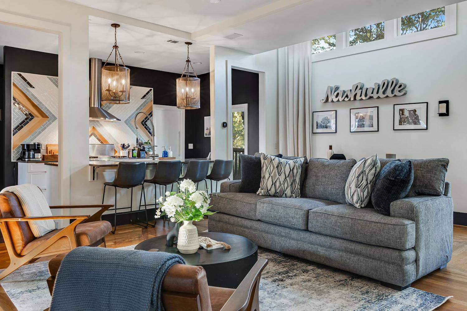 Positioned in the heart of 12 South, this one of a kind home offers the rare combination of walkability, privacy, and effortless living! Just steps from Sevier Park and sought-after dining and shopping, you can fully experience the vibrant culture and energy of 12 South. Thoughtfully designed with both style and function in mind, this home features an expansive open-concept living space, anchored by seamless indoor-outdoor flow. Two bedroom suites are ideally situated on the main level, while the owner’s suite and an additional bedroom are tucked upstairs for added privacy. A versatile bonus space with its own exterior entrance creates the perfect opportunity for a guest suite, private office, or separate living quarters. The dining sunroom complete with a gas fireplace and glass garage doors opens directly to the private pool, creating a true extension of the living space and an exceptional setting for entertaining. This is 12 South living at its finest - elevated, effortless, and truly a gem in this family friendly neighborhood.
