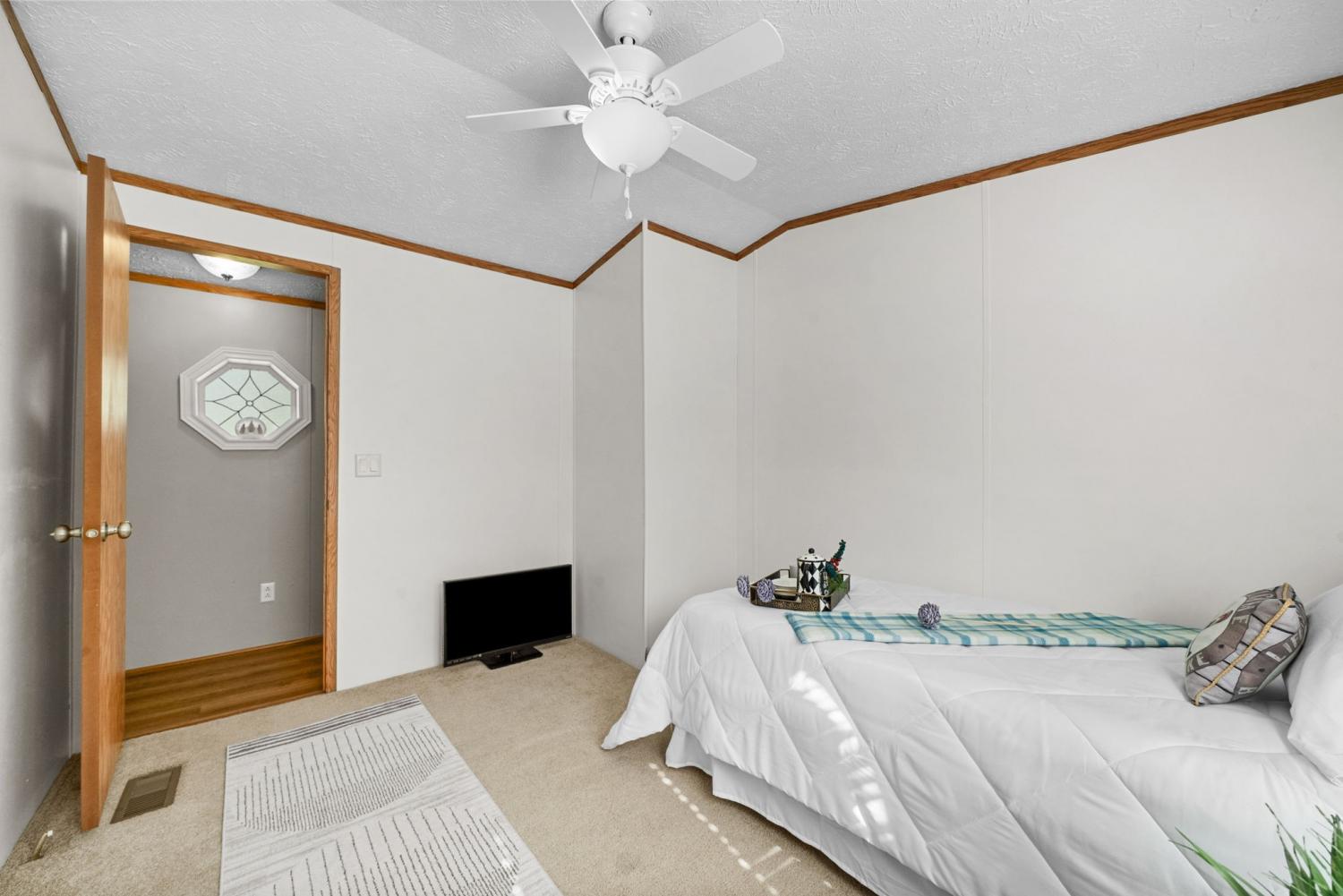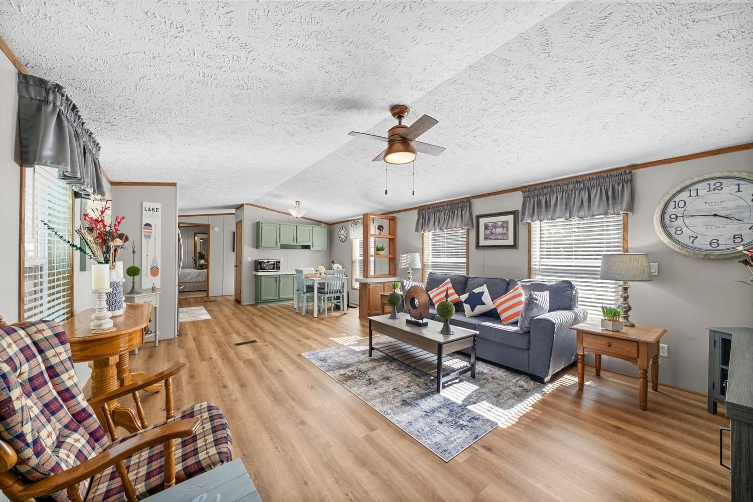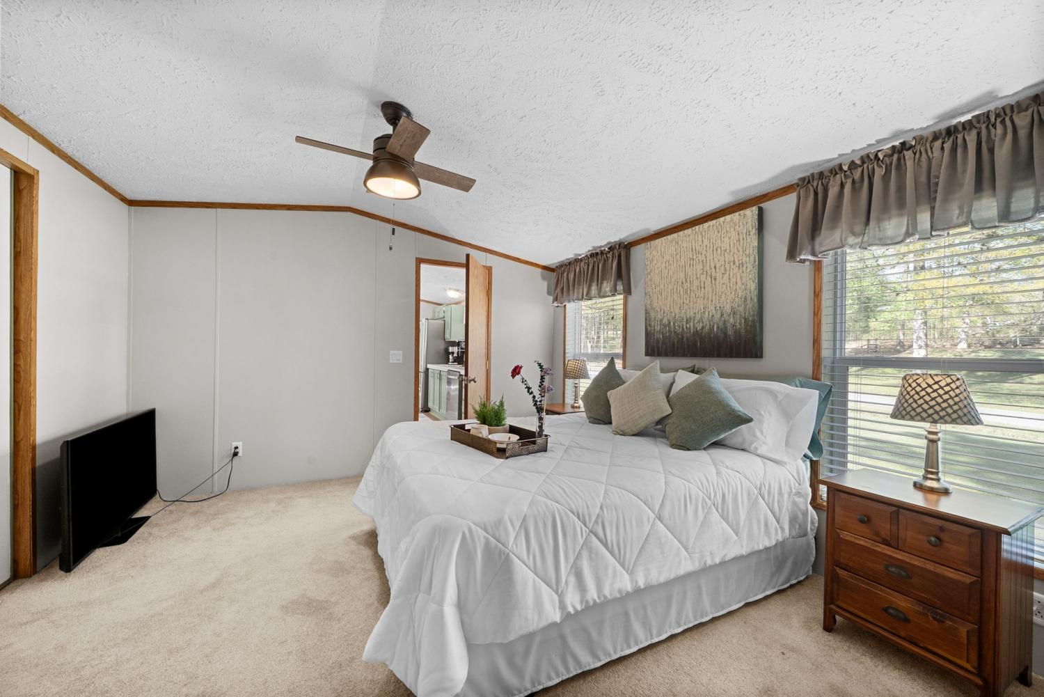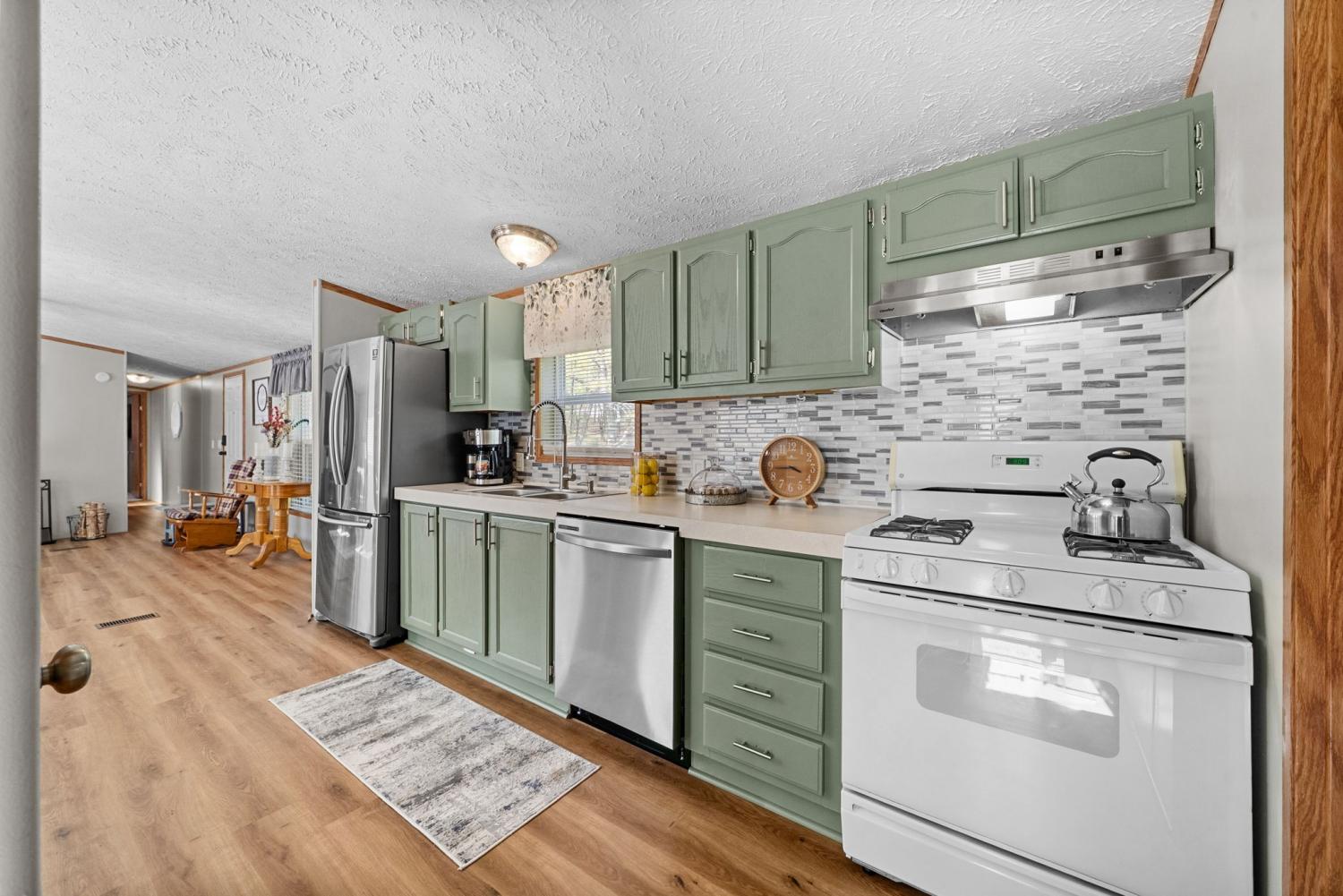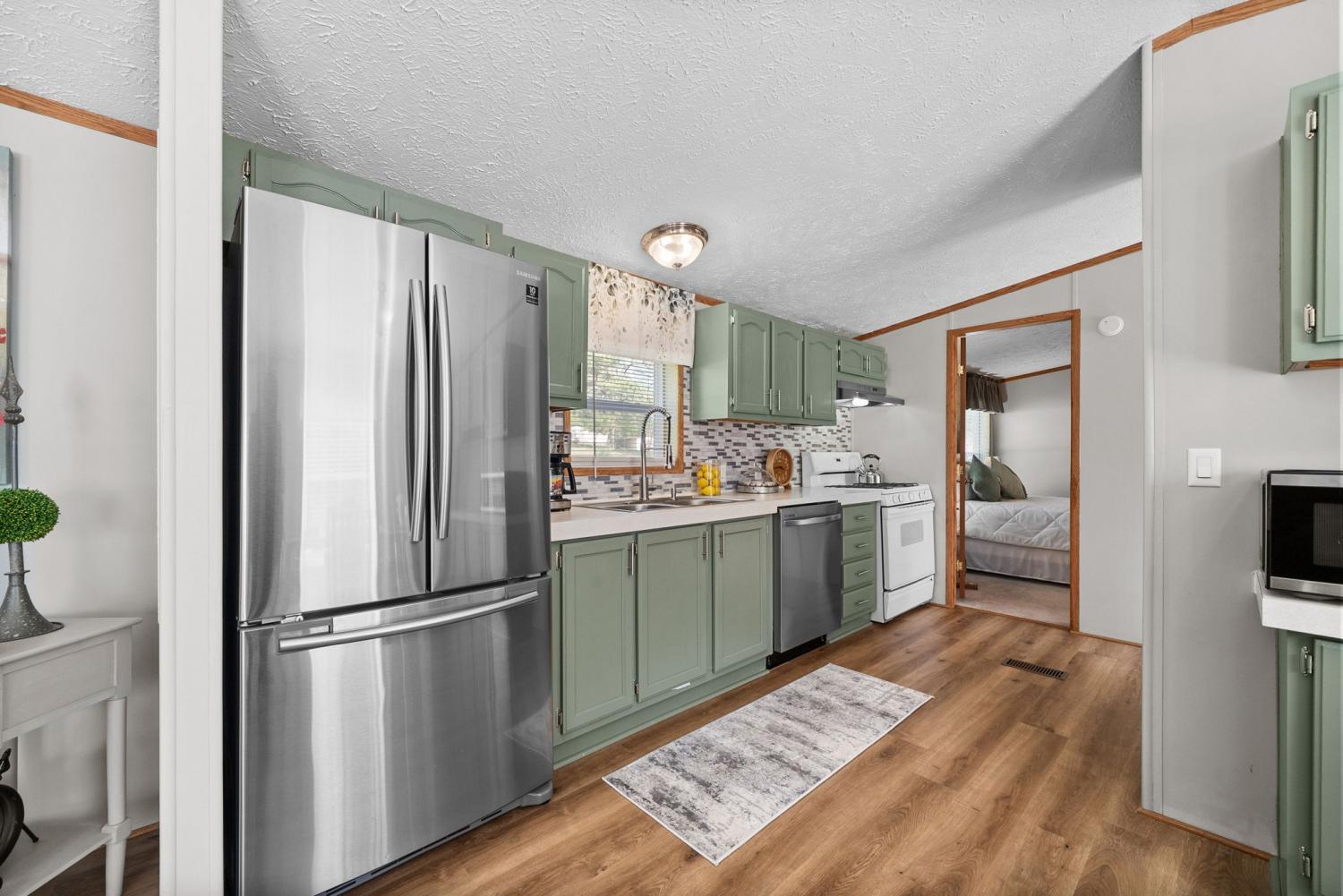 Bring your boat and park it in the large detached garage or dock it at the marina only 0.9 mile away! Beautiful Kentucky Lake-launching-marinas and golf course are right here for you. This gem is waiting for you and has been meticulously maintained. Find this renovated mobile home with 2x6 exterior walls, house style windows, vinyl siding and shingle roofing offering open floor plan with 3BR-2BA. You find LVP flooring, new interior paint, SS appliances along with washer and dryer to be included. Primary bedroom offers large closet space and primary bath with nice soaking tub and separate step in shower. Covered front deck with sidewalk leading to driveway and detached garage. Concrete parking pad found in the front area of the garage and over to the detached double carport. You have a small Amish built storage building/workshop which is wired and offers one side storage loft and work bench. The 24x36 metal detached garage with hi-beam LED lighting offers side entrance door, 2 front bays and one back bay door-all being electric roll ups. Front doors offer 10x10 space. The 24x24 detached metal carport has a gravel bottom with wind/storm anchors and privacy fence to the back side. You have ample parking space and side drive through area being so convenient. You find a 30AMP electric plug ideal for the RV/ camper parking and the level lot being ideal to support the family or friends. Convenient area to nearby shopping and multiple restaurants-dining being ideal for full time-seasonal or airBNB life style. This is a very inviting property and a must see to appreciate!