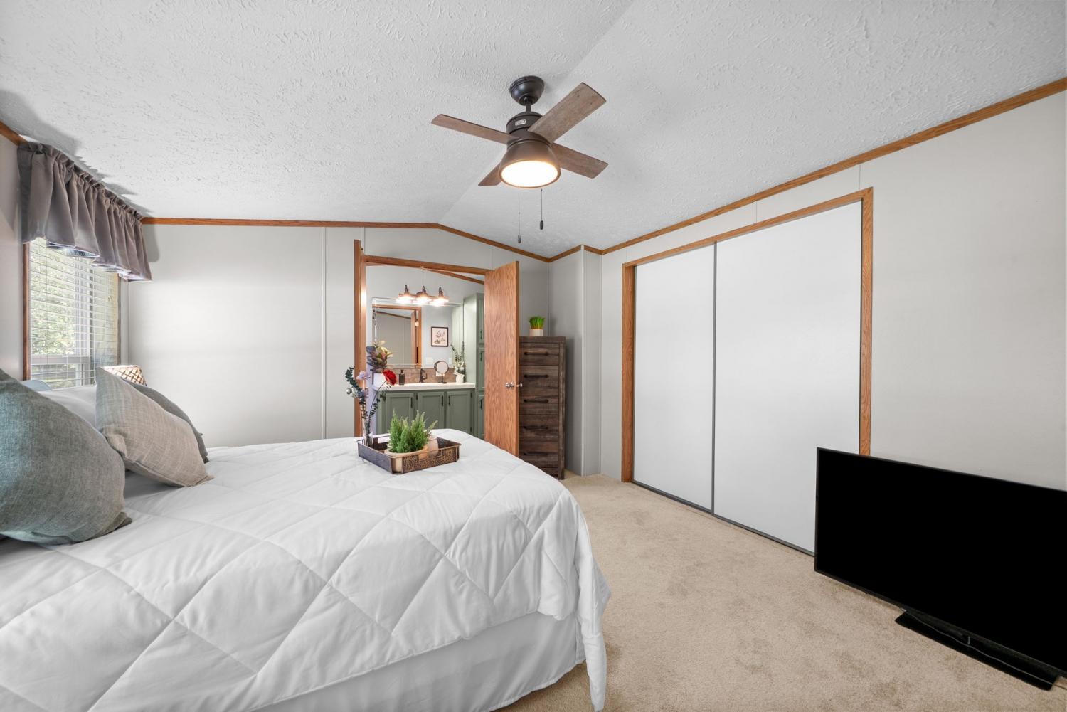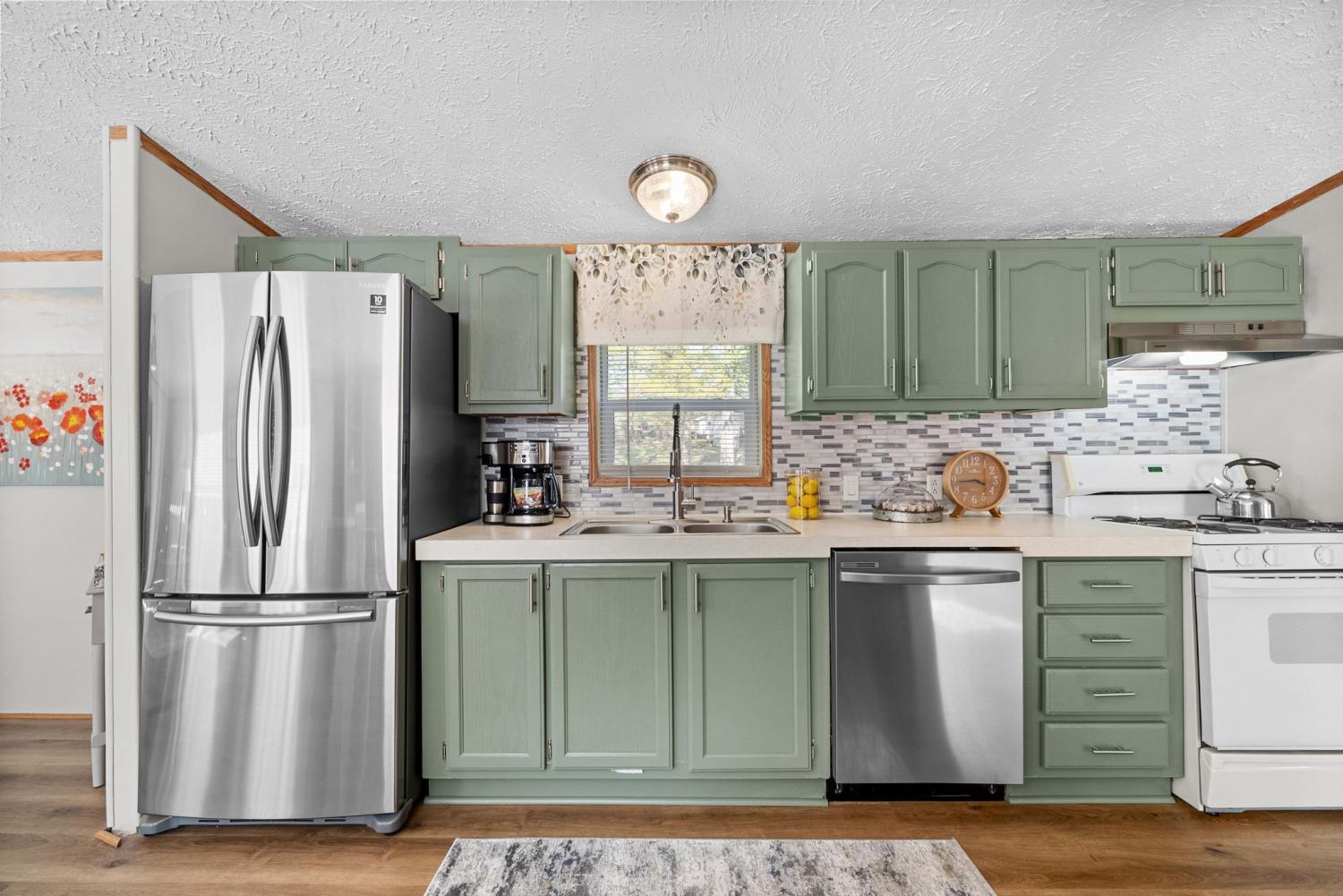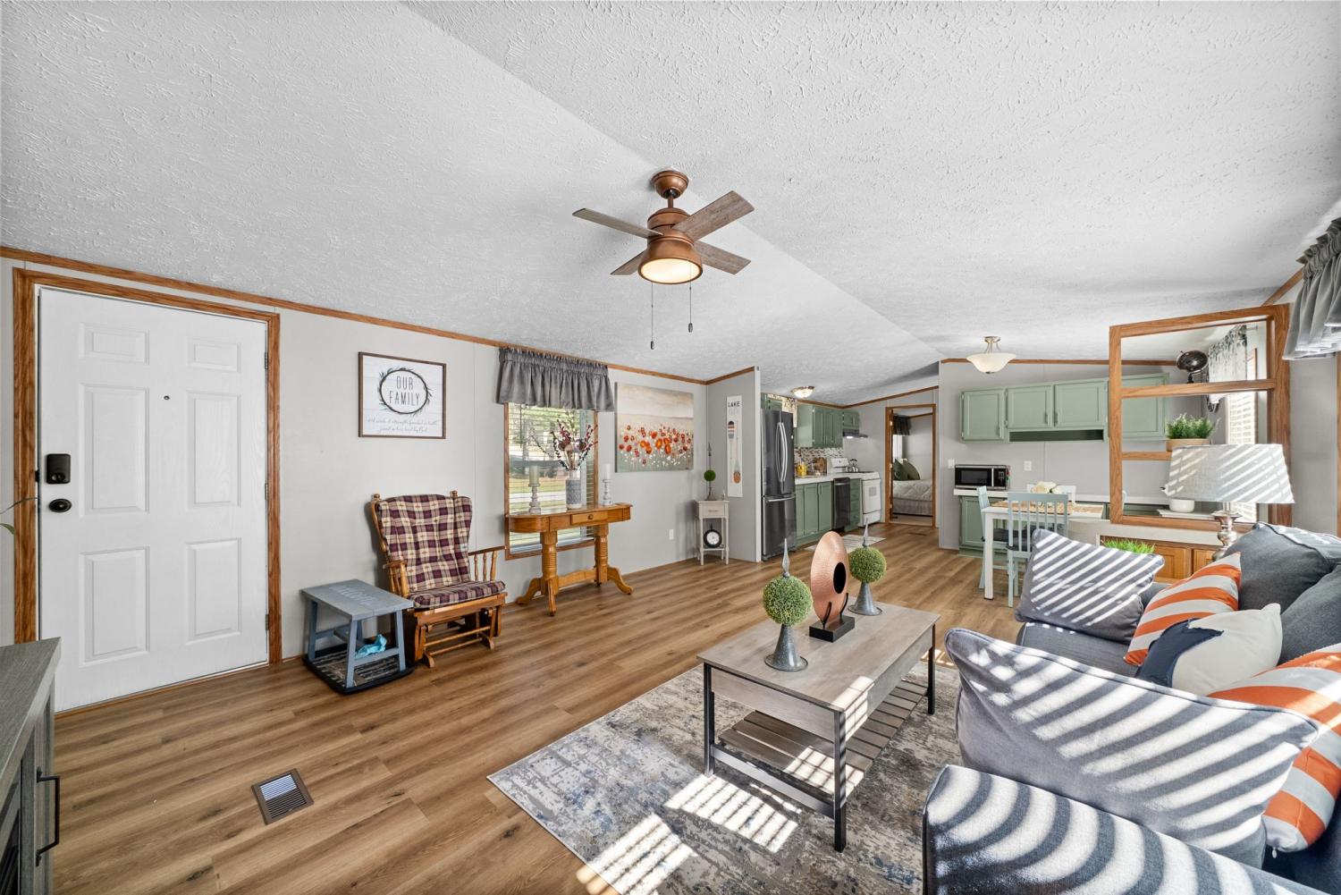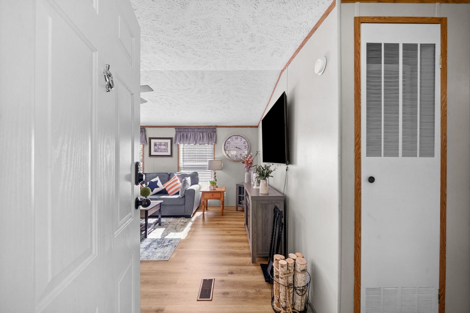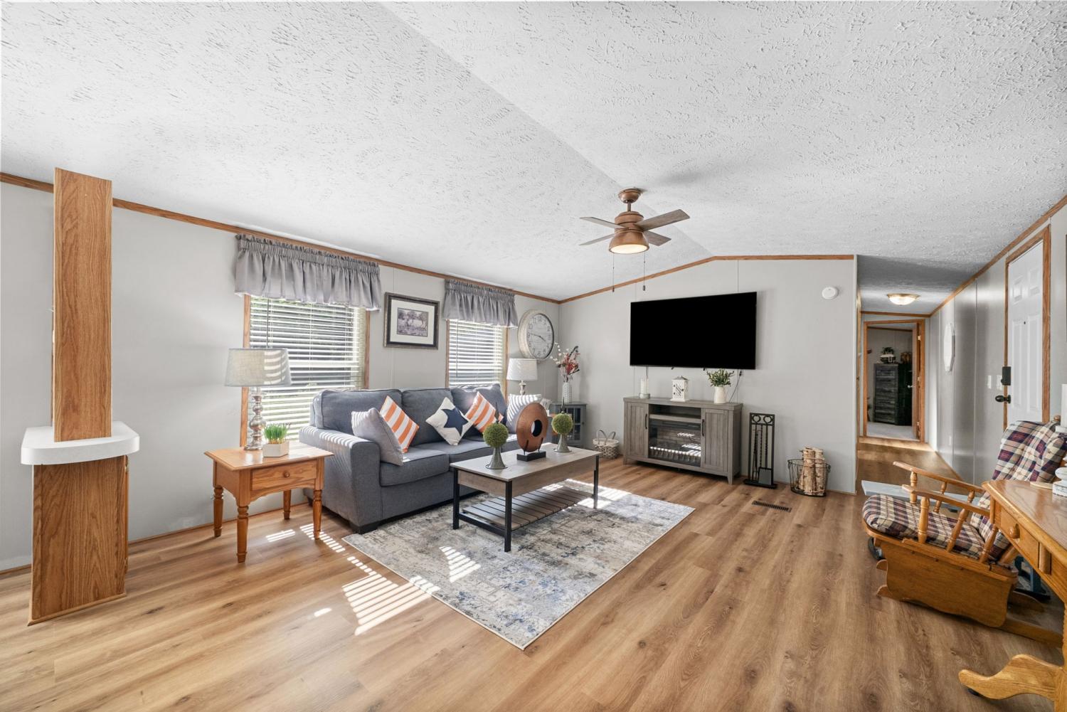Bring your boat and park it in the large detached garage or dock it at the marina only 0.9 mile away! Beautiful Kentucky Lake-launching-marinas and golf course are right here for you. This gem is waiting for you and has been meticulously maintained. Find this renovated mobile home with 2x6 exterior walls, house style windows, vinyl siding and shingle roofing offering open floor plan with 3BR-2BA. You find LVP flooring, new interior paint, SS appliances along with washer and dryer to be included. Primary bedroom offers large closet space and primary bath with nice soaking tub and separate step in shower. Covered front deck with sidewalk leading to driveway and detached garage. Concrete parking pad found in the front area of the garage and over to the detached double carport. You have a small Amish built storage building/workshop which is wired and offers one side storage loft and work bench. The 24x36 metal detached garage with hi-beam LED lighting offers side entrance door, 2 front bays and one back bay door-all being electric roll ups. Front doors offer 10x10 space. The 24x24 detached metal carport has a gravel bottom with wind/storm anchors and privacy fence to the back side. You have ample parking space and side drive through area being so convenient. You find a 30AMP electric plug ideal for the RV/ camper parking and the level lot being ideal to support the family or friends. Convenient area to nearby shopping and multiple restaurants-dining being ideal for full time-seasonal or airBNB life style. This is a very inviting property and a must see to appreciate!
