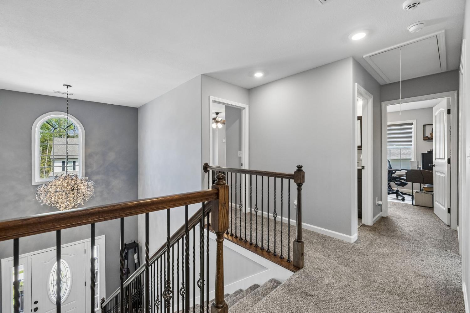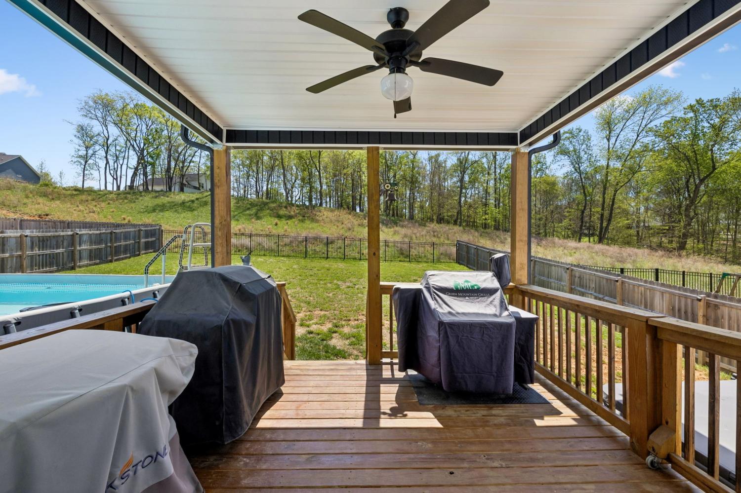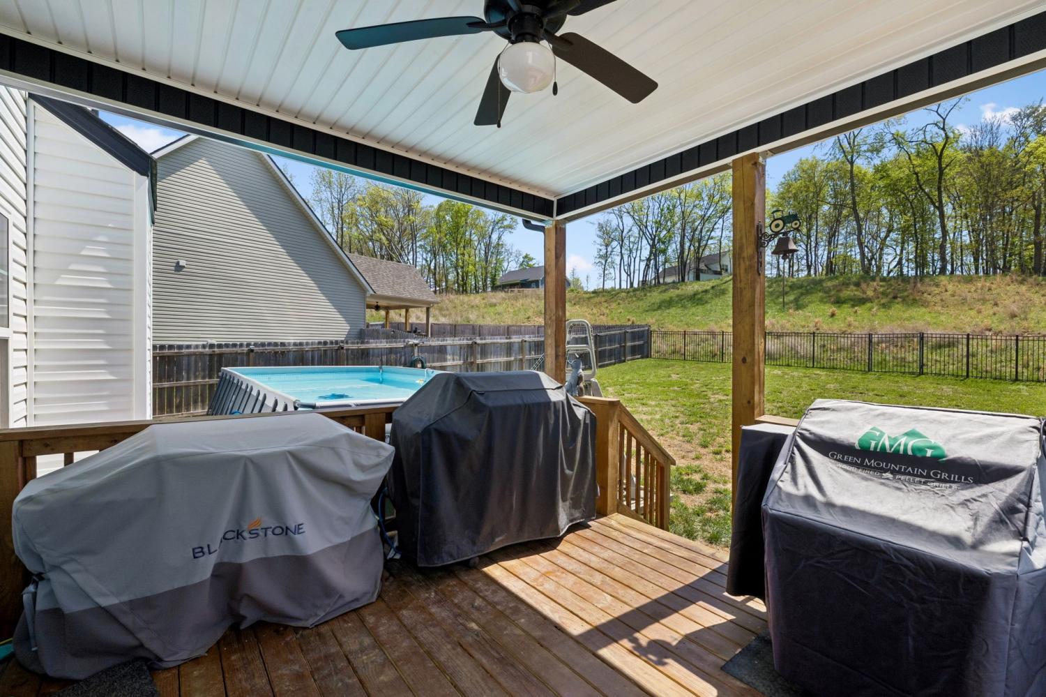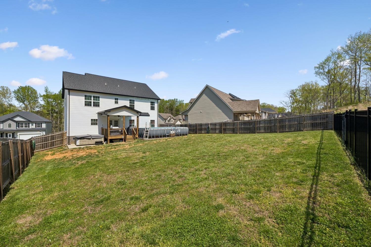 Welcome to 380 Barry Dr in the highly desirable Hampton Hills neighborhood of Clarksville! This spacious 4-bedroom, 2.5-bath home offers the perfect blend of comfort, functionality, and outdoor living on a large 0.42-acre lot. Step inside to an open floorplan designed for both everyday living and entertaining. The living room features a cozy fireplace, flowing seamlessly into the kitchen where a peninsula provides seating for three—perfect for casual meals or gathering with guests. Just off the main living space, you’ll find a versatile piano room that can easily serve as a formal dining room, home office, or flex space to fit your needs. Upstairs, the primary suite offers a relaxing retreat with a private bathroom complete with a separate tub and shower. Three additional bedrooms provide plenty of space for family, guests, or hobbies. Out back is where this home truly shines—enjoy your own private oasis with a covered deck overlooking the above-ground pool and hot tub, all surrounded by a privacy fence. With no neighbors directly behind you and a peaceful tree line backdrop, you’ll love the added sense of privacy and space. Additional features include a 2-car attached garage with separate stalls and a layout that balances comfort and convenience. Located in sought-after Hampton Hills, this home is one you won’t want to miss!