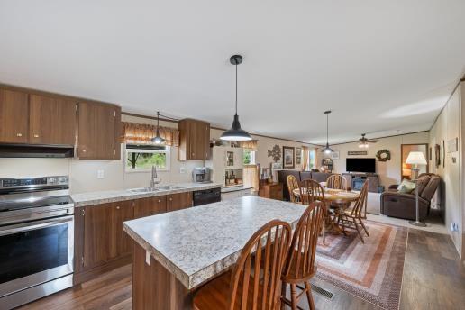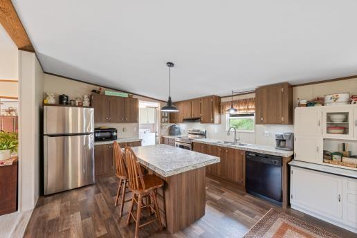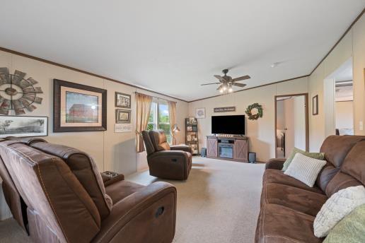 Beautiful manufactured home sitting Permanent foundation on 1.5 acres. 4 Bedrooms and 2 baths. Living room and open den . Great Plan large covered Front porch and Large Back Deck with fenced yard 30x30 Detached Garage with lean to for Boat