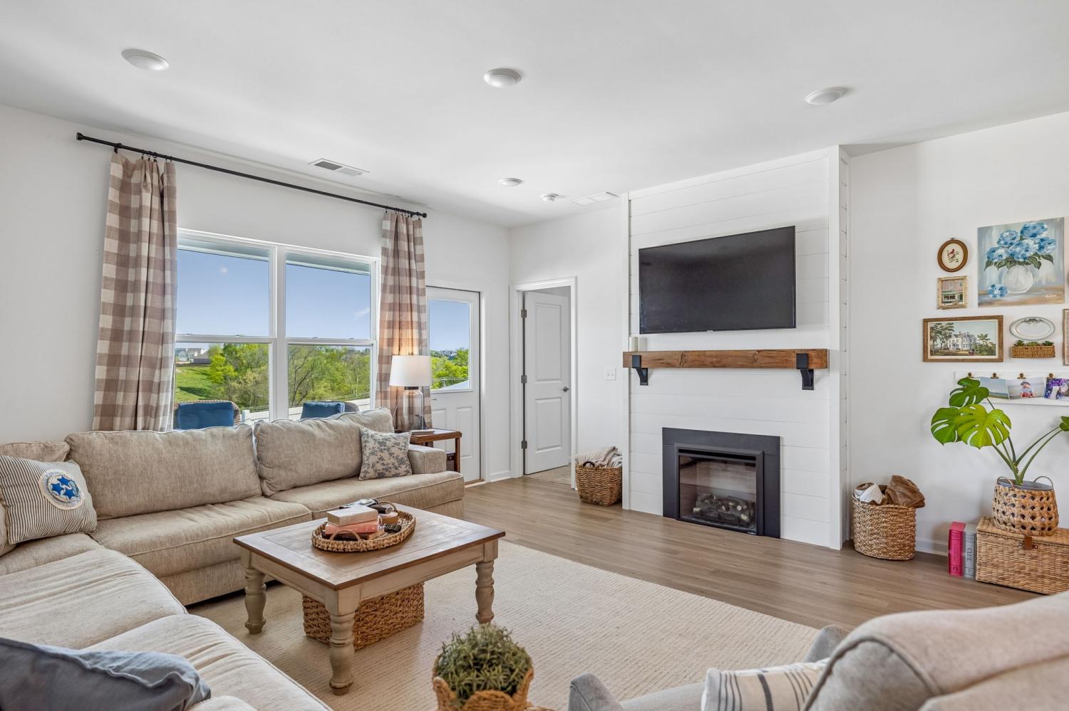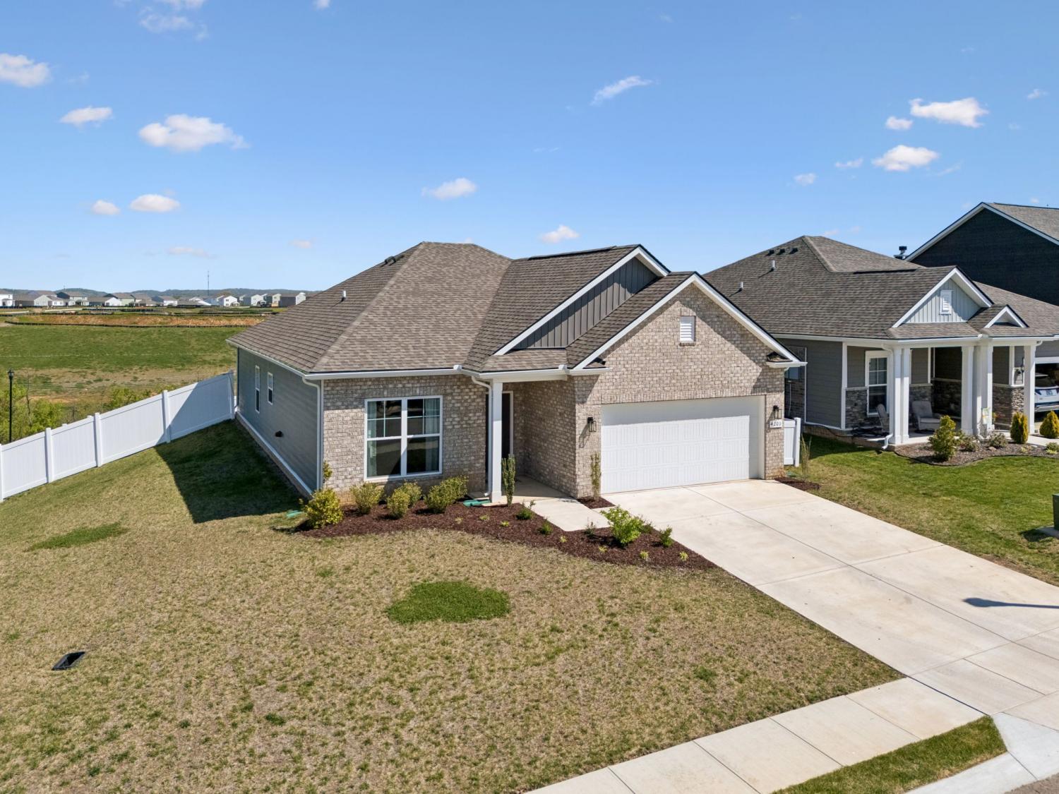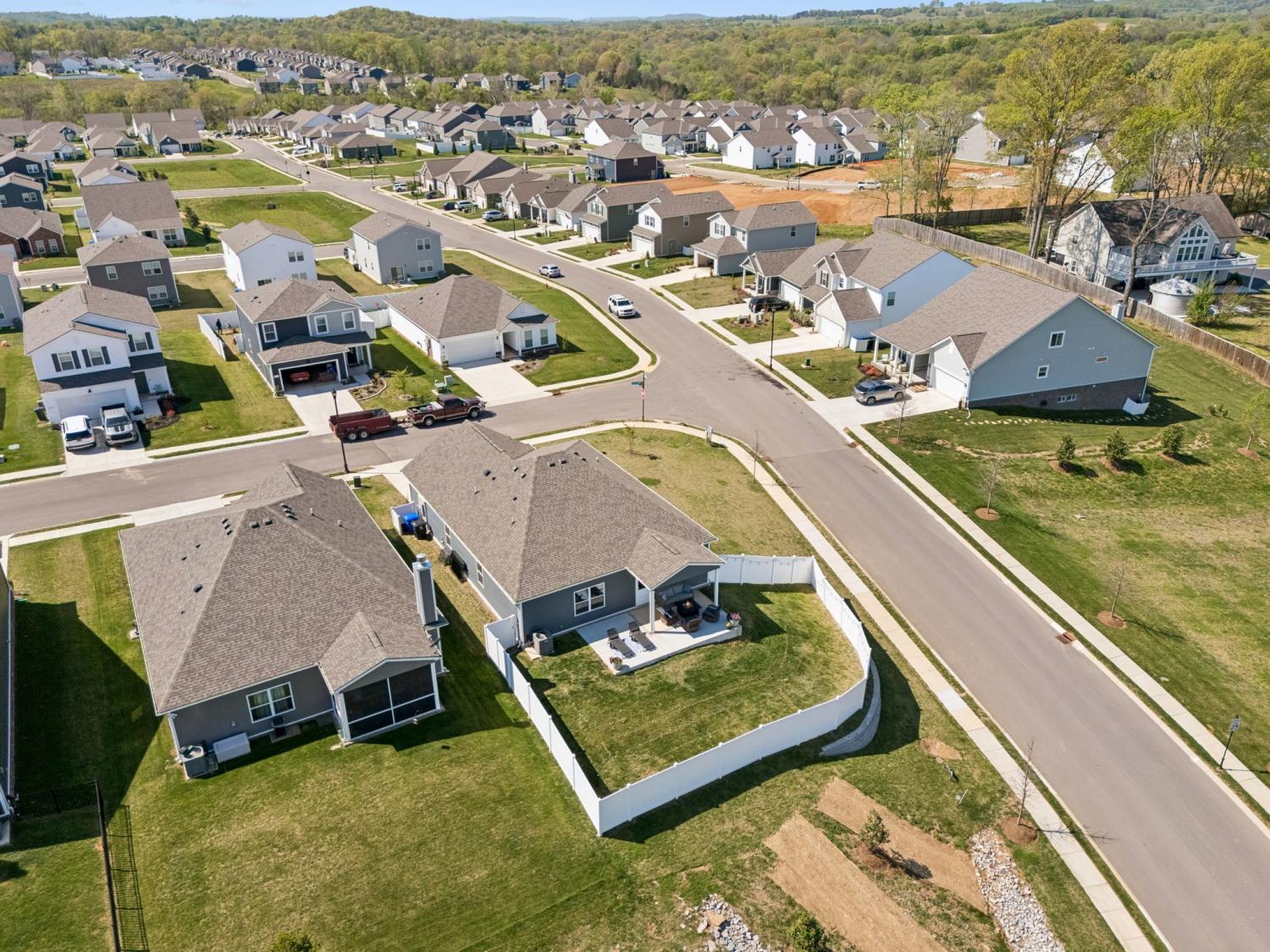 Tucked on a corner lot in a cul-de-sac, this one-level home offers a comfortable layout and a setting that's hard to beat. The fully fenced backyard backs to green space, giving you extra privacy, while the covered patio with extended concrete is perfect for relaxing or entertaining. From here, you'll catch beautiful sunsets stretching out over Carters Creek Station Rd toward Carters Creek Pike. Inside, the home features 3 bedrooms plus an additional 18x11 flex room that works well as a fourth bedroom, office, or den. The living area has been updated with a built-in electric fireplace, creating a warm focal point, and the primary closet includes custom built-in shelving for added organization. Enjoy both a covered front porch and a functional outdoor setup in the back, making it easy to take advantage of every part of the home. The neighborhood also offers great amenities, including nearby playgrounds, pool, and walking trails. Conveniently located just minutes from the Spring Hill Crossings, Saturn Parkway to I-65, and Carter's Creek Pike, as well as downtown Columbia, this location offers the perfect balance of a quiet setting with quick and easy access north or south.