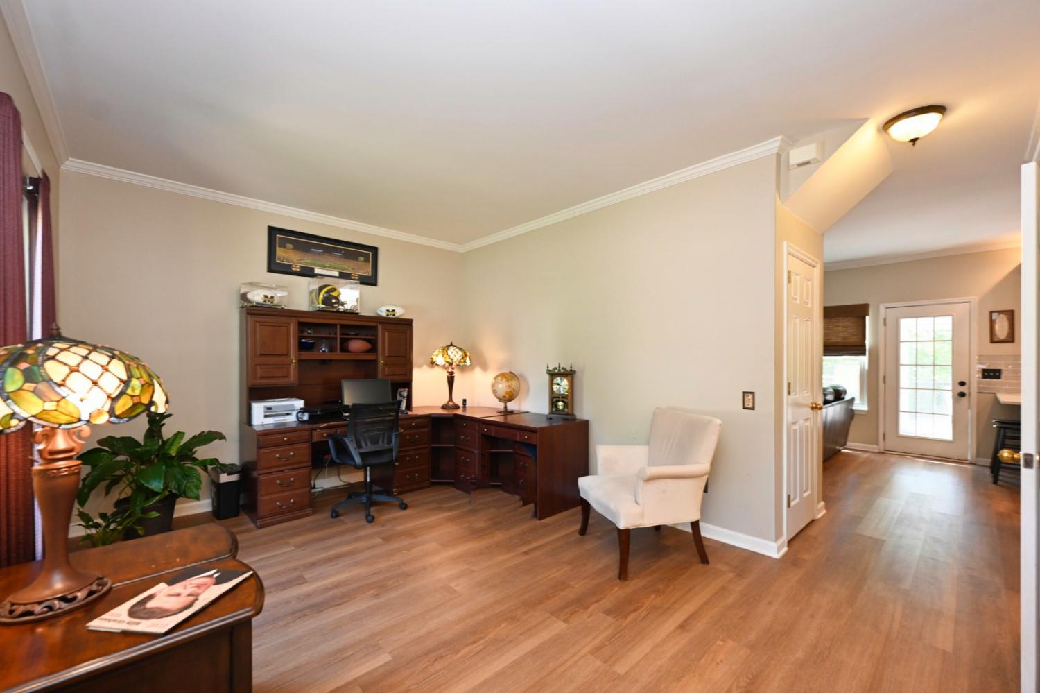 Timeless Colonial Charm with updates and Private Backyard Retreat. Don't miss this beautifully updated colonial packed with space and charm!! This home features formal living and dining rooms, a large recreation room, and a cozy den with a gas log fireplace. Stylish touches like arched doorways and a sun-filled bay window in the breakfast area add character while the remodeled kitchen with Quartz counter tops along with two lazy susan cabinets, updated bathrooms, and brand new carpet make it move- in ready. Roman shades thru most of the home. Windows replaced in 2017, tankless water heater in 2020 and roof in 2021. The screened/glass Florida room overlooks a private common area, creating a peaceful retreat at home. Outside, enjoy a newly fenced backyard and a large storage shed- ideal for all your extras.