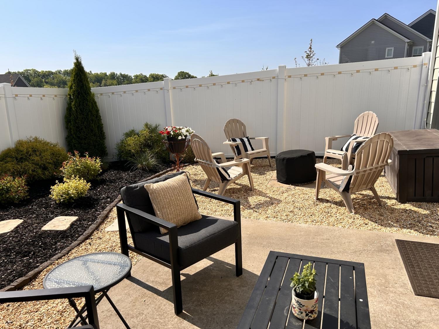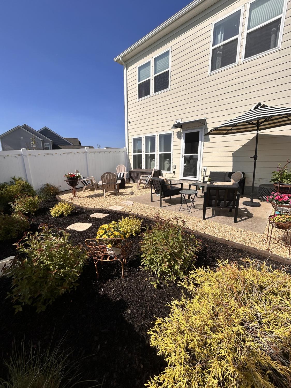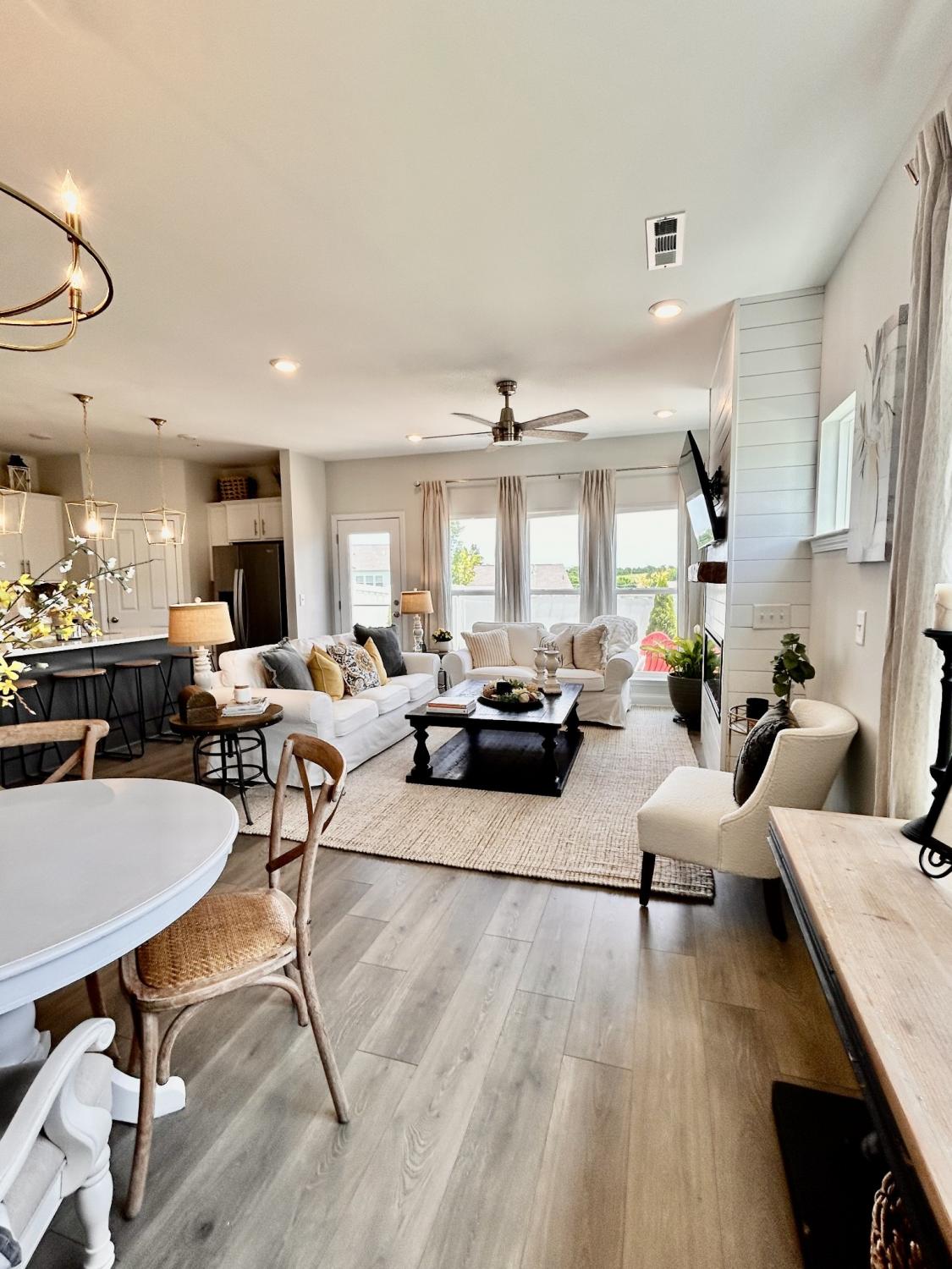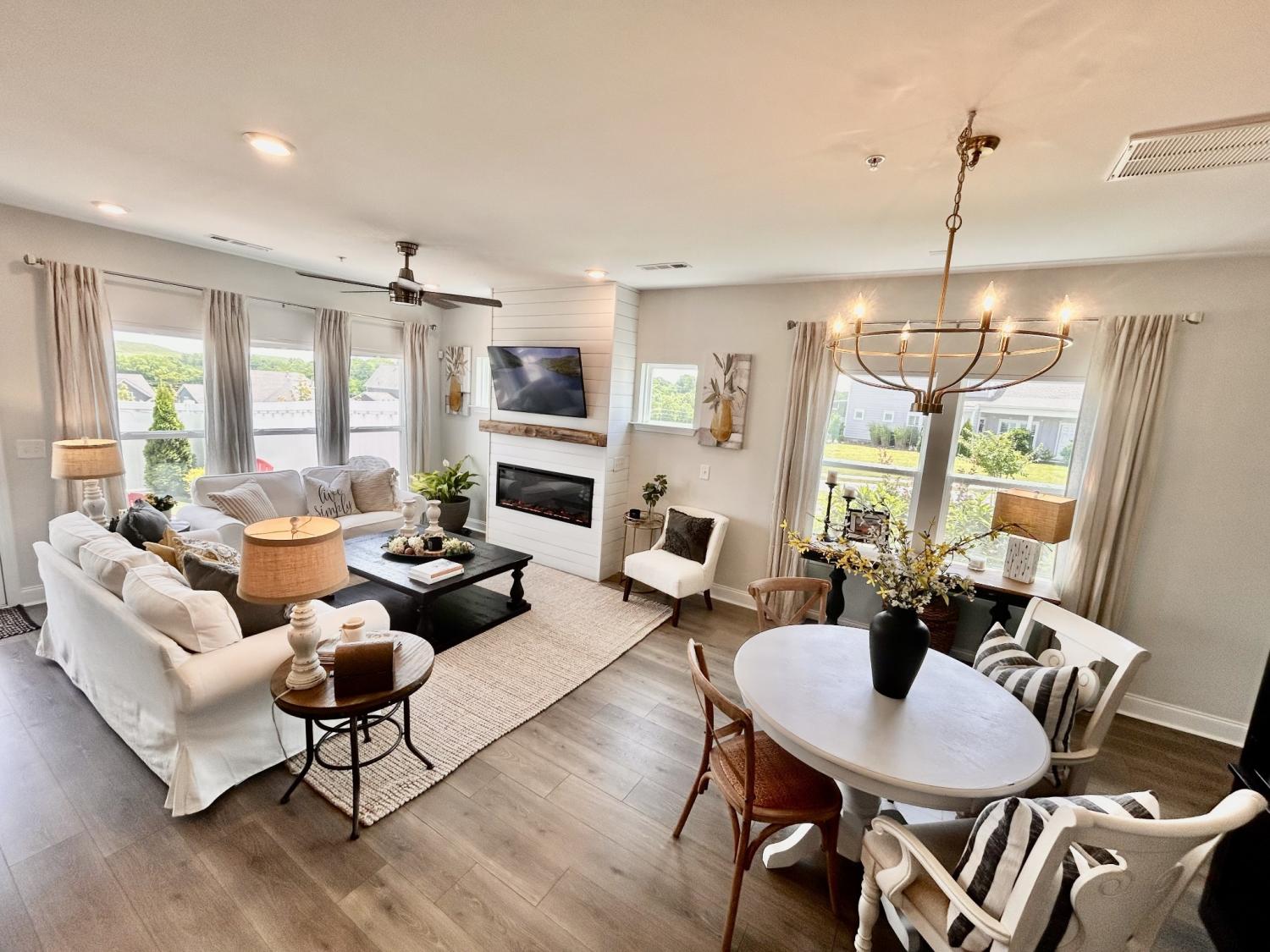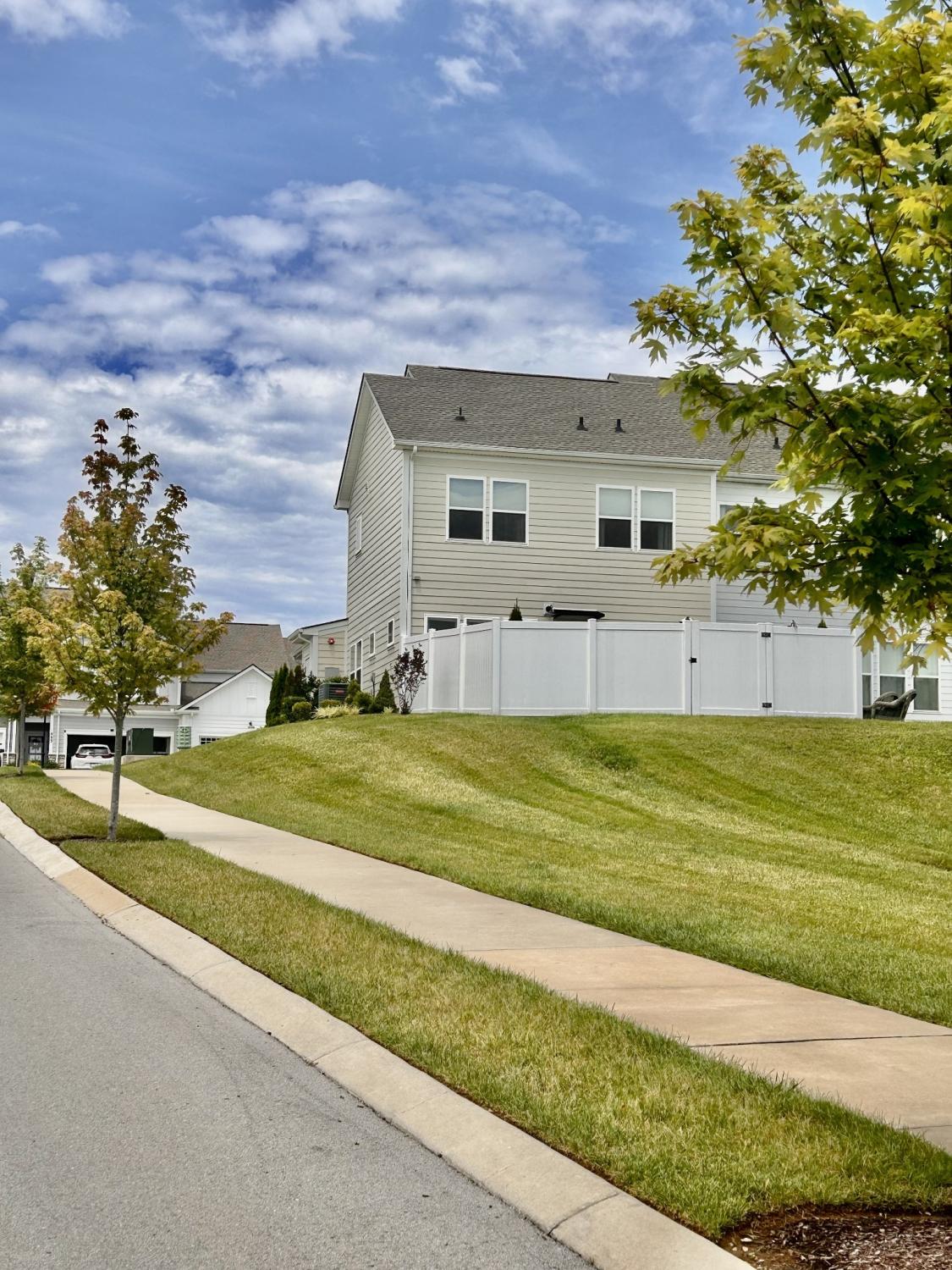 Coming Soon – Showings Begin Wednesday, April 15th Located in the beautiful Harvest Point neighborhood in The Heights, this updated 3 BR / 2.5 BA end-unit townhome offers privacy with no immediate rear neighbors and scenic hillside views. Features include a screened-in front porch, built-in family room with electric fireplace (usable with or without heat), and professionally landscaped yard with a private backyard oasis—ideal for year-round enjoyment.The main-level primary suite features wood flooring that continues into the walk-in closet. Hardwood floors extend throughout the downstairs living areas. Upstairs includes a spacious loft/flex area and two generously sized bedrooms. HOA covers exterior home maintenance, yard service, and neighborhood amenities including a pool.