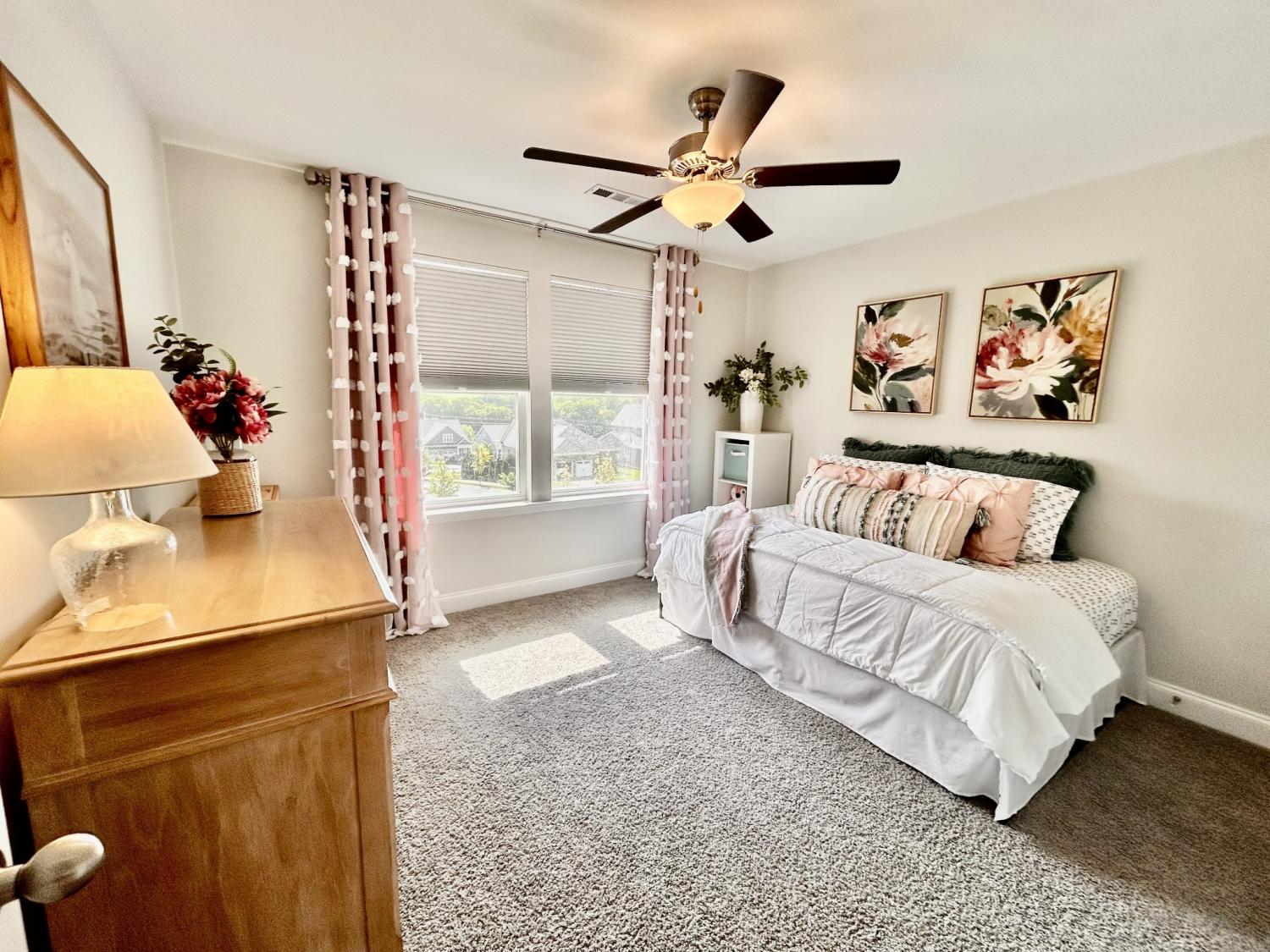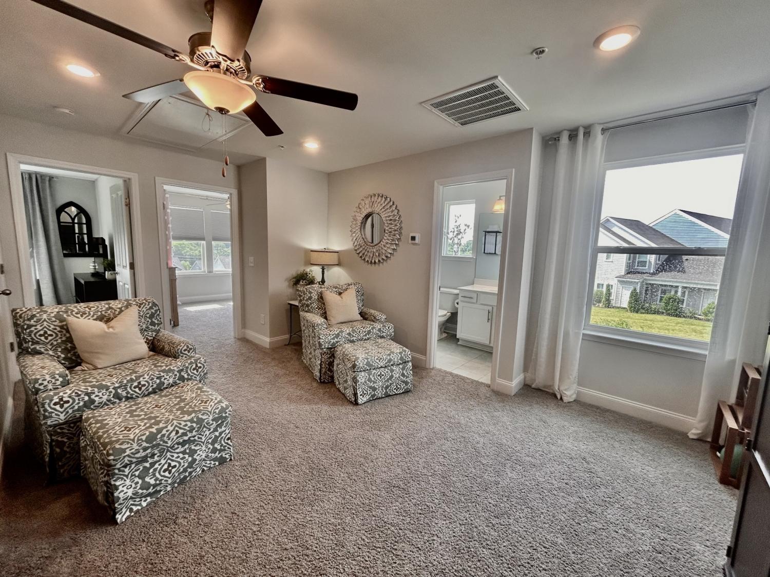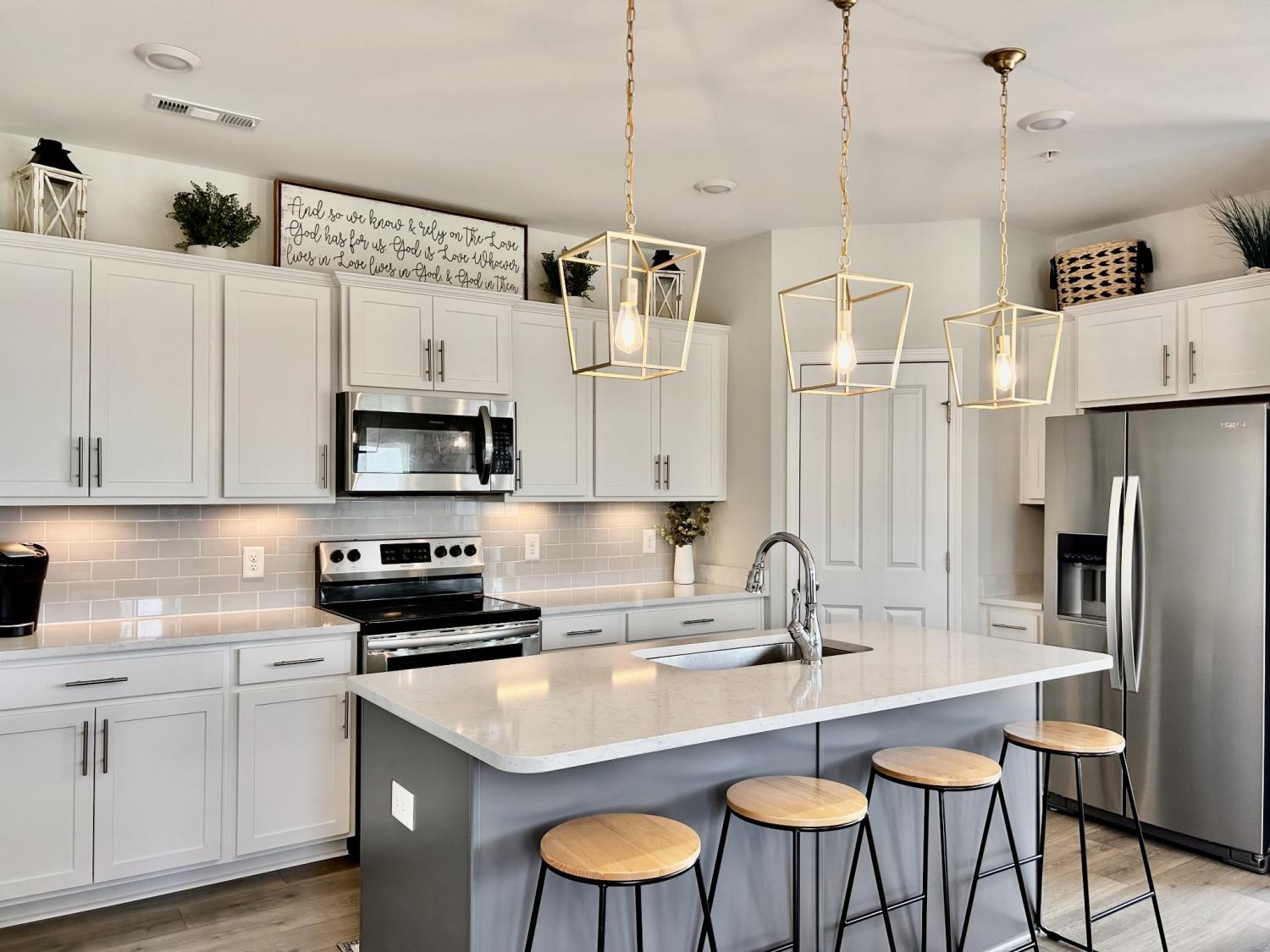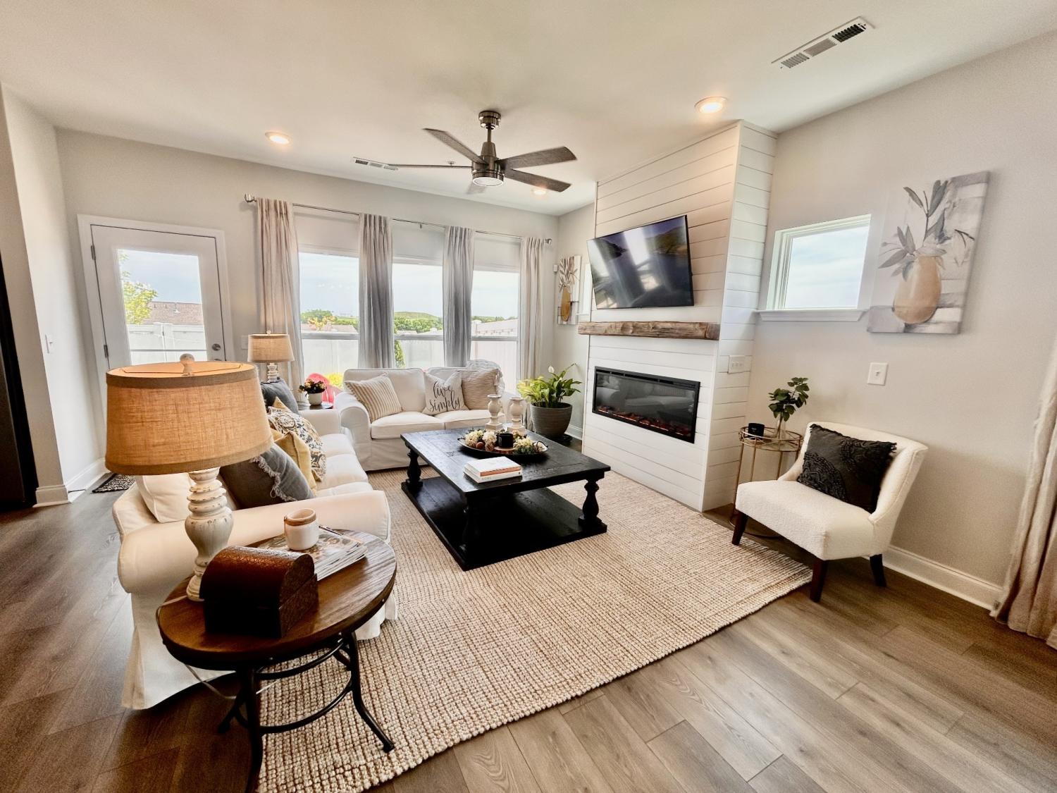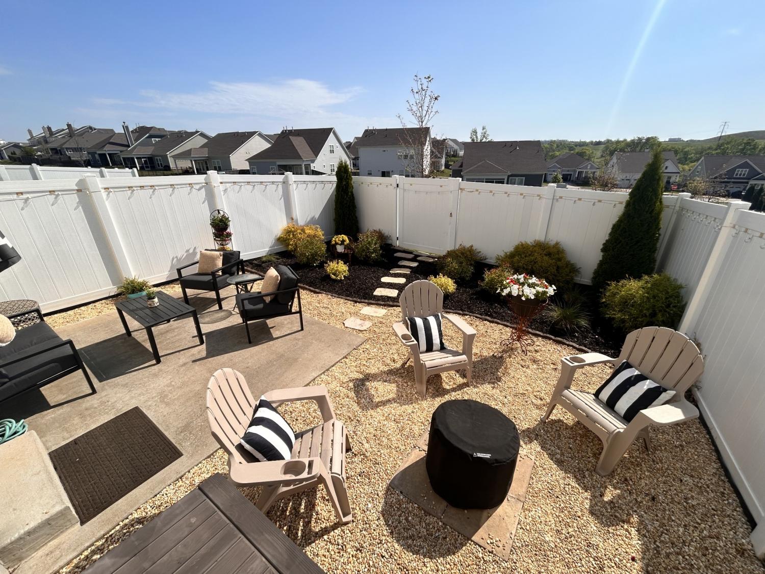 Coming Soon – Showings Begin Wednesday, April 15th Located in the beautiful Harvest Point neighborhood in The Heights, this updated 3 BR / 2.5 BA end-unit townhome offers privacy with no immediate rear neighbors and scenic hillside views. Features include a screened-in front porch, built-in family room with electric fireplace (usable with or without heat), and professionally landscaped yard with a private backyard oasis—ideal for year-round enjoyment.The main-level primary suite features wood flooring that continues into the walk-in closet. Hardwood floors extend throughout the downstairs living areas. Upstairs includes a spacious loft/flex area and two generously sized bedrooms. HOA covers exterior home maintenance, yard service, and neighborhood amenities including a pool.