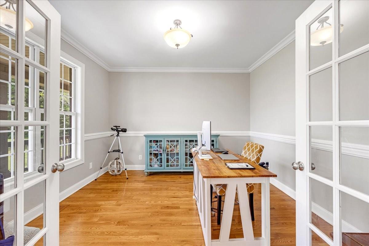 Beautifully crafted 4-bedroom, 3.5-bath custom home with a dedicated office, two-car attached garage, and 30x40 detached workshop, all situated on 6.67 peaceful acres in Rutherford County. This spacious property showcases true hardwood floors, granite countertops, and detailed trim work throughout. The main-level primary suite includes 2 walk-in closet and spa-like bath, while the upstairs offers a private guest suite with an attached full bathroom—ideal for visitors or multi-generational living. The open-concept layout features a sun-filled living room, formal dining area, bonus/flex space, and a large kitchen with ample cabinetry and backyard views. The dedicated office is perfect for remote work or homeschooling. Step outside to enjoy a fenced backyard, covered porches, and wide-open acreage with plenty of room to garden, explore, or expand. Located just minutes from Murfreesboro, Shelbyville, and I-24—and only 45 minutes to Nashville International Airport (BNA)—this move-in ready home blends modern comfort, functionality, and the freedom of country living in one.