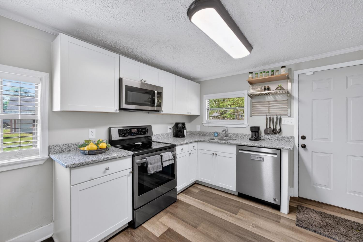 The interior features a renovated kitchen equipped with granite countertops and a full suite of stainless steel appliances, including a dishwasher and microwave. Durable laminate flooring runs throughout the living spaces, ensuring a carpet-free environment that is easy to maintain. Brand new Central HVAC system. Insulated windows for enhanced efficiency. Outside, the level lot provides a large backyard and a covered front porch. Located within walking distance of Middle Tennessee State University, this home is a versatile find for those seeking a move-in-ready property with upgrades already in place. Investment opportunity!