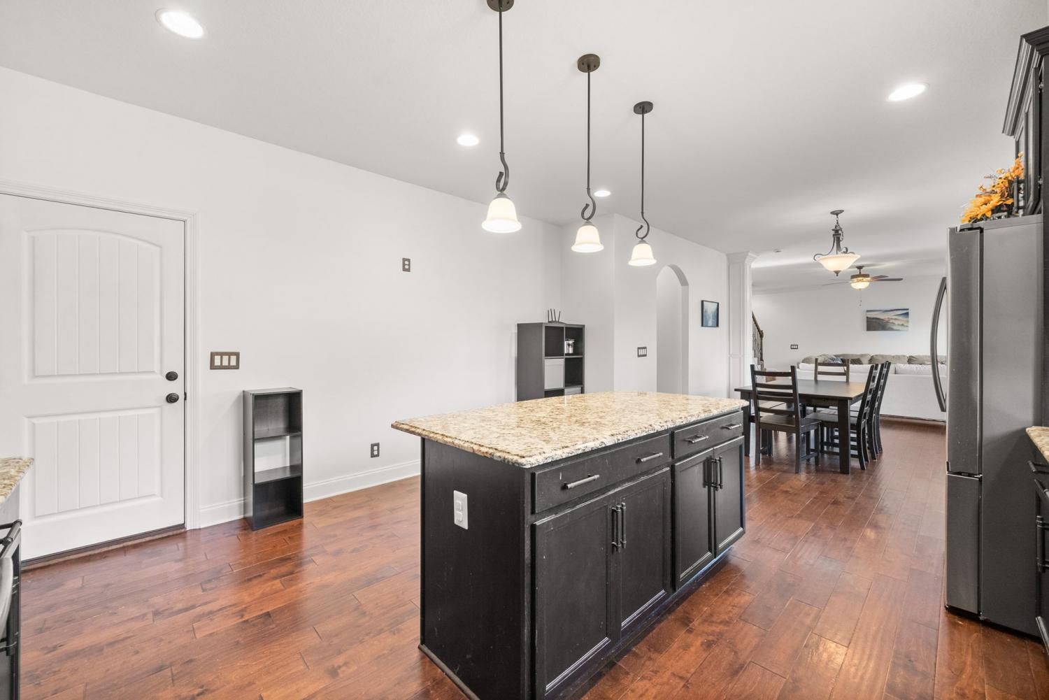 If you're looking for value and space, this is THE ONE! Welcome to 3148 Timberdale Drive where timeless design, thoughtful upgrades and everyday functionality come together to create a home that truly stands out from the crowd. From the moment you arrive, the stately brick exterior and inviting front porch set the tone. Step inside to a freshly painted interior filled with natural light, rich hardwood floors and architectural details that immediately catch your eye like arched entryways, coffered ceilings and beautiful wood French doors leading into a private office space that’s perfect for working from home. The main living area is both warm and elevated, anchored by a stunning stacked stone fireplace and designed with an open flow that makes everyday living and entertaining feel effortless. The kitchen delivers on both style and function with granite countertops, a large island, dark cabinetry and one of the largest residential refrigerators available. Just off the kitchen, a butler’s pantry with wine bar adds even more convenience and character, while the oversized pantry ensures you’ll never run out of storage. Upstairs, you’ll find the primary suite (also just painted), plus three spacious spare bedrooms, full bath with double vanities and a huge bonus room currently set up as a movie room featuring bold black walls that create the ultimate cinematic feel perfectly contrasted by the bright, freshly painted tones throughout the rest of the home. Step outside and you’ll appreciate not only the fully fenced yard but also the added value of a property line that extends beyond the fence, giving you even more space and flexibility than meets the eye. This home has exactly what you're looking for with more space, more storage, more character and a layout that actually works for an affordable price. Make a showing appointment today!