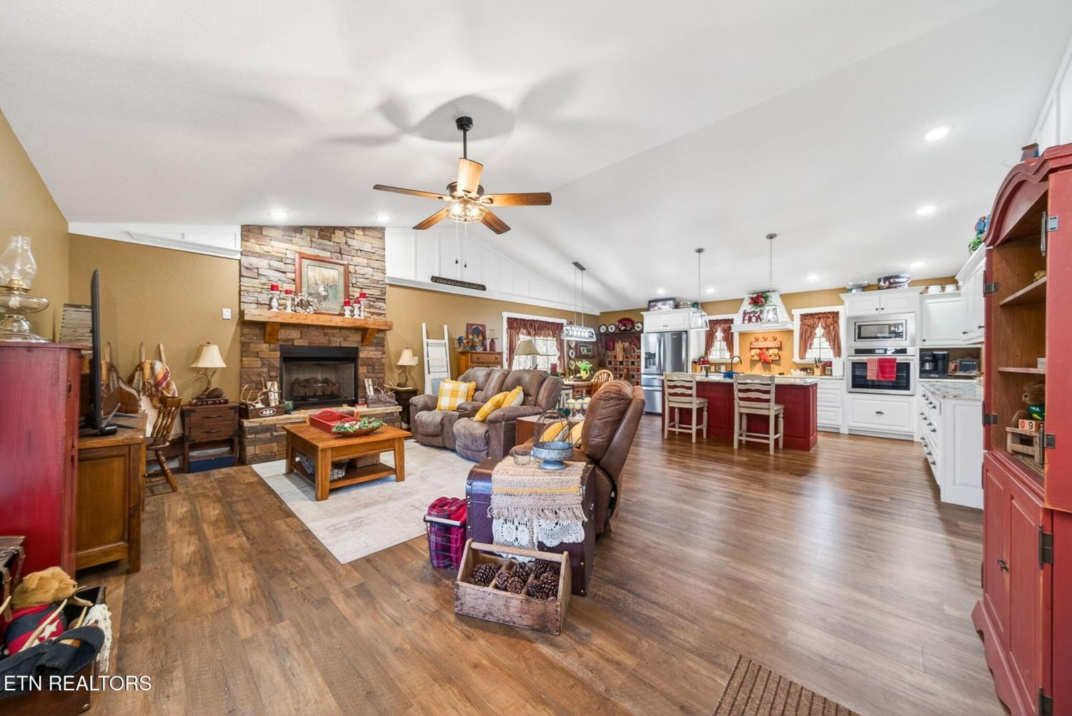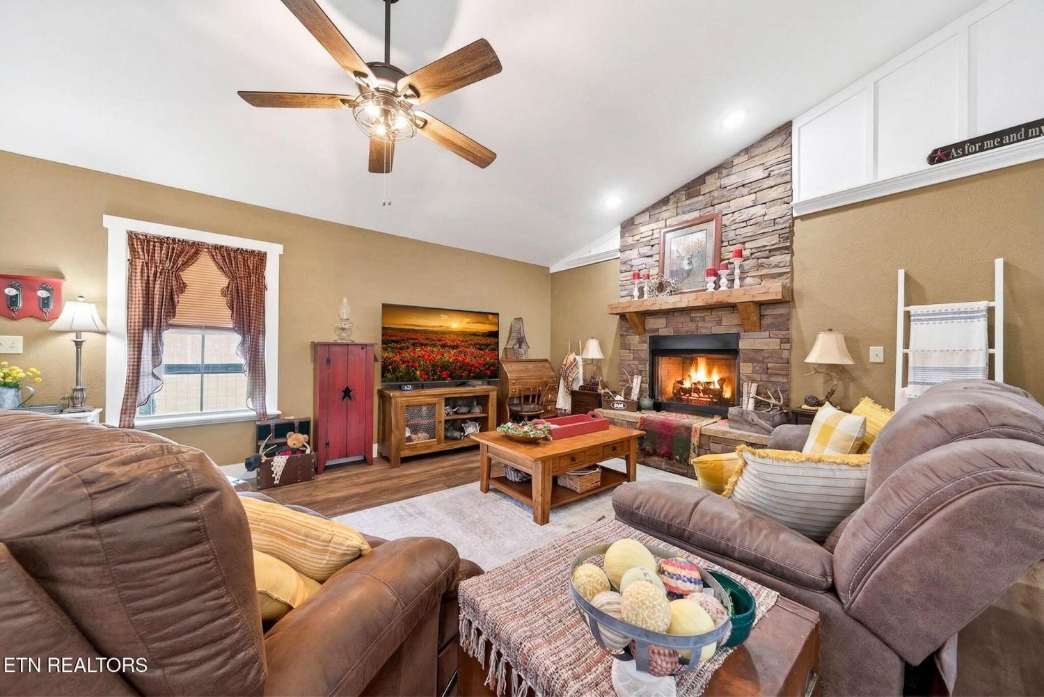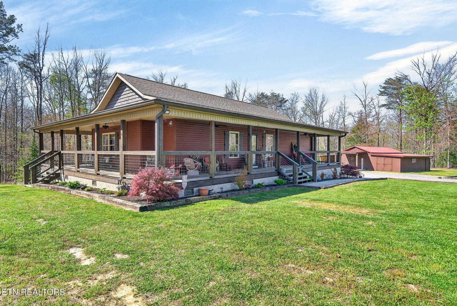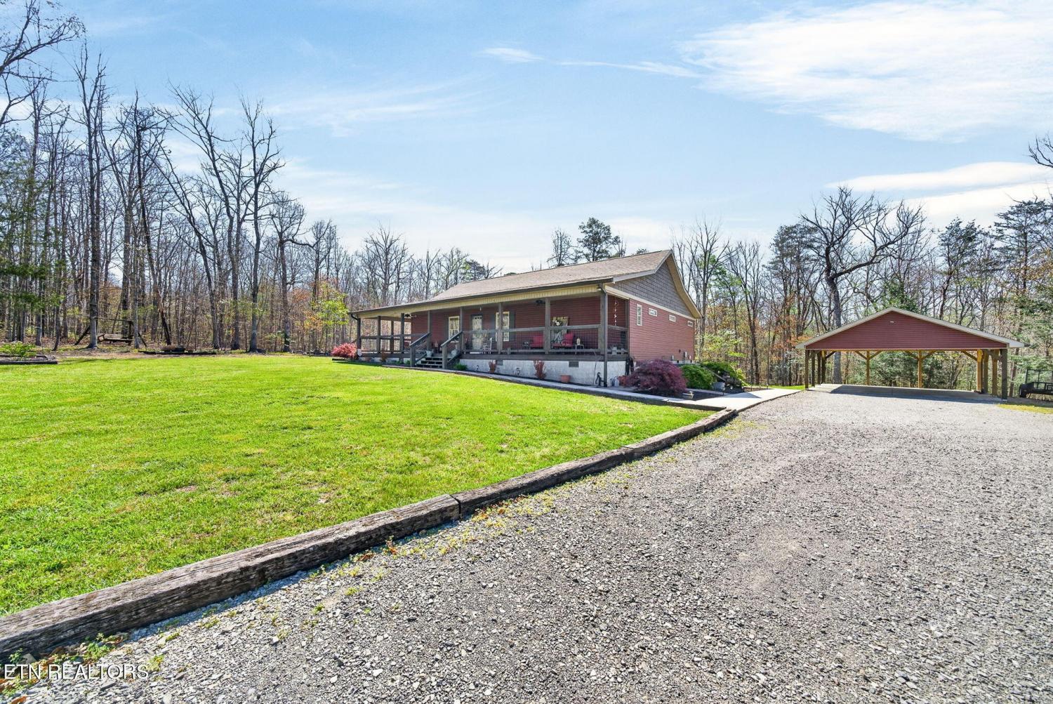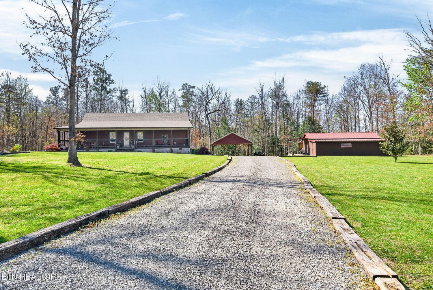 Welcome to your peaceful modern cottage retreat, nestled on 3.07 acres across two lots which offers privacy, space, or the opportunity to build a detached garage. Built in 2021, this thoughtfully designed 1,552 sq ft home features vaulted ceilings that create an open, airy feel throughout the main living spaces. Stylish LVP flooring flows seamlessly, complemented by soft-close cabinetry and a spacious kitchen with a large pantry for everyday ease. Cozy up by the natural gas fireplace with remote start, perfect for adding warmth and ambiance with the touch of a button. The home offers 2 bedrooms plus a versatile bonus room--ideal for a home office, craft space, or even a generous walk-in closet to suit your lifestyle. The primary suite is a true retreat, featuring a walk-in closet and dual vanities for added comfort and convenience. Step outside to a charming three-sided porch, perfect for relaxing and enjoying the peaceful surroundings. The well-built carport with a concrete slab offers excellent protection for your vehicle or can easily double as an inviting outdoor entertaining area. Additional highlights include an encapsulated crawlspace for efficiency and peace of mind, along with a very large storage shed--perfect for lawn equipment, ATVs, tools, or hobbies. Modern comfort meets quiet country living--this one is truly special. *buyer to verify all information before making an informed offer