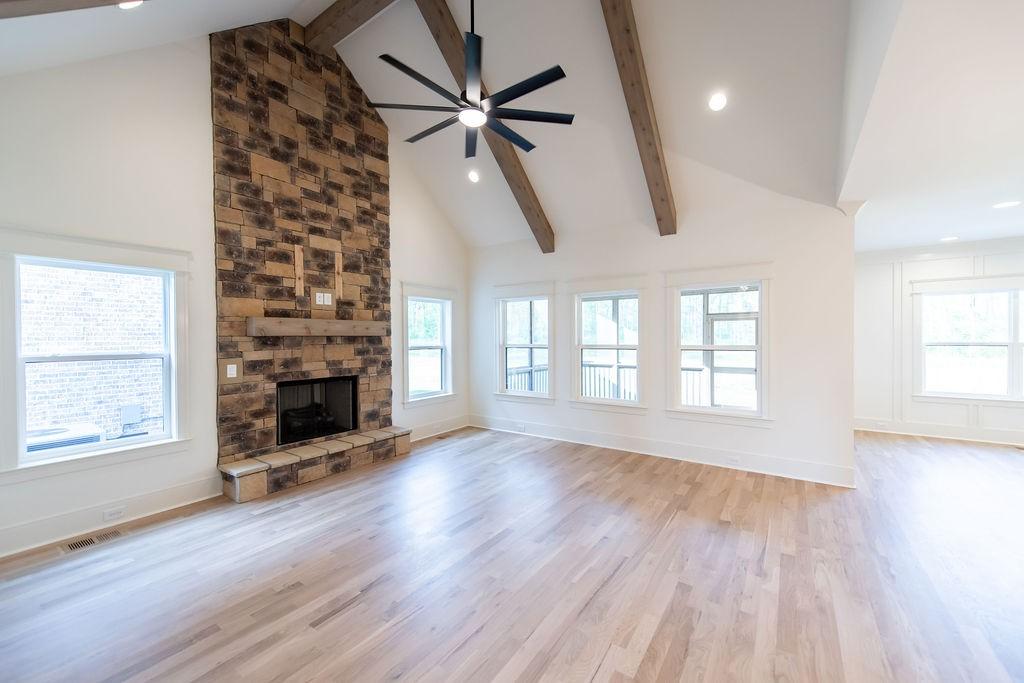 ✨ New Construction in Stonehollow – The Lillian Plan ✨ Welcome to the beautifully designed Lillian Plan, offering 4 bedrooms, 3 full baths, and a thoughtfully crafted layout perfect for modern living. The main level features a spacious Owner’s Suite and Bedroom #2, along with a dedicated Office/Study ideal for working from home. The stunning Great Room showcases a vaulted ceiling with cedar beams and a dramatic floor-to-ceiling stone gas fireplace. The kitchen is equipped with custom wood cabinetry and elegant quartz/granite countertops, which are also featured in the Owner’s Bath. Sand & finish hardwood flooring runs throughout the main level, adding warmth and sophistication. Upstairs you’ll find Bedrooms #3 and #4 plus a generous 14x19 bonus room over the two-car garage — perfect for a media room, playroom, or guest retreat. Enjoy outdoor living year-round on the screened-in covered back porch. Additional highlights include: • Full yard sod • Epoxy-coated garage floors • Two-car garage • 2-10 Home Warranty included This exceptional new construction home combines quality craftsmanship with timeless design — don’t miss your opportunity to own in desirable Stonehollow!