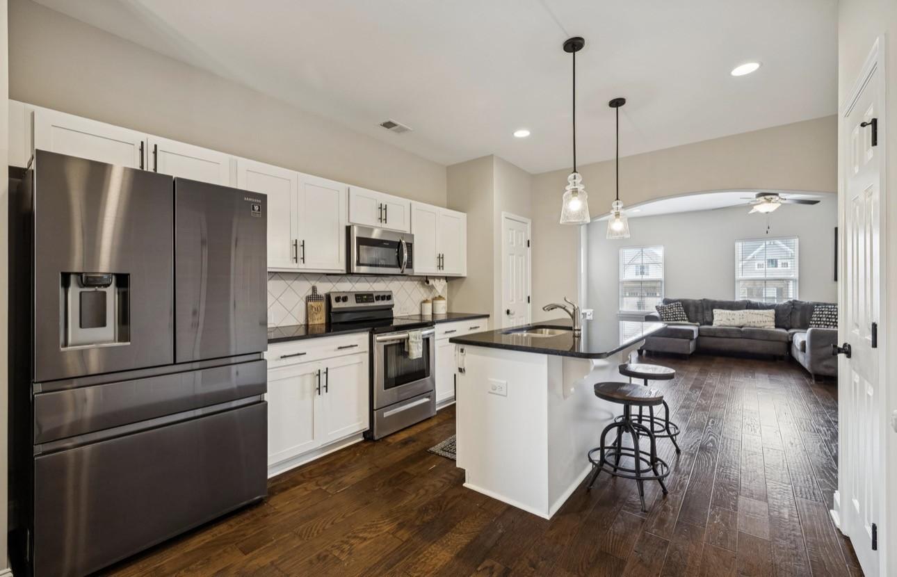 BEST PRICE IN THE NEIGHBORHOOD! Fresh paint! Welcome to this beautiful two-story home featuring classic white full brick and timeless curb appeal! Offering 3 bedrooms, 2.5 baths, and over 1,600 square feet of well-designed living space, this home combines style, comfort, and functionality. Step inside to gorgeous hardwood floors flowing throughout the main level, creating a warm and inviting atmosphere. The spacious eat-in kitchen is perfect for entertaining and everyday living, complete with granite countertops, stainless steel appliances, and a large pantry for ample storage. Upstairs, the extra-large primary suite provides a private retreat with a generous walk-in closet and a well-appointed en-suite bath featuring a spacious shower. Two additional oversized bedrooms offer exceptional closet space and flexibility for guests, home office, or growing households. Additional highlights include fresh interior paint, a tankless water heater for energy efficiency, and a one-car garage. Enjoy resort-style community amenities including a pool and clubhouse, all within walking distance. Located in an area known for outstanding schools and convenience, this home truly checks every box.