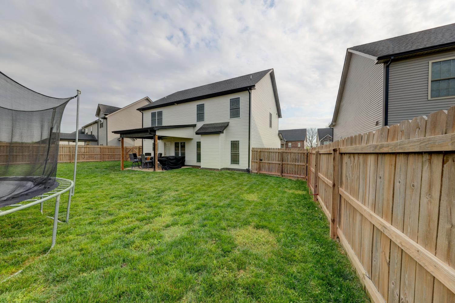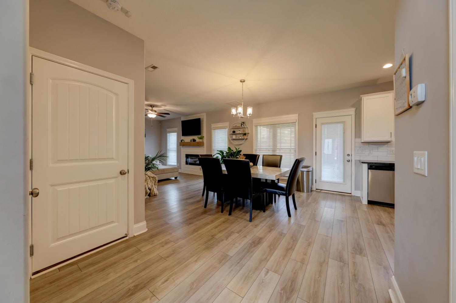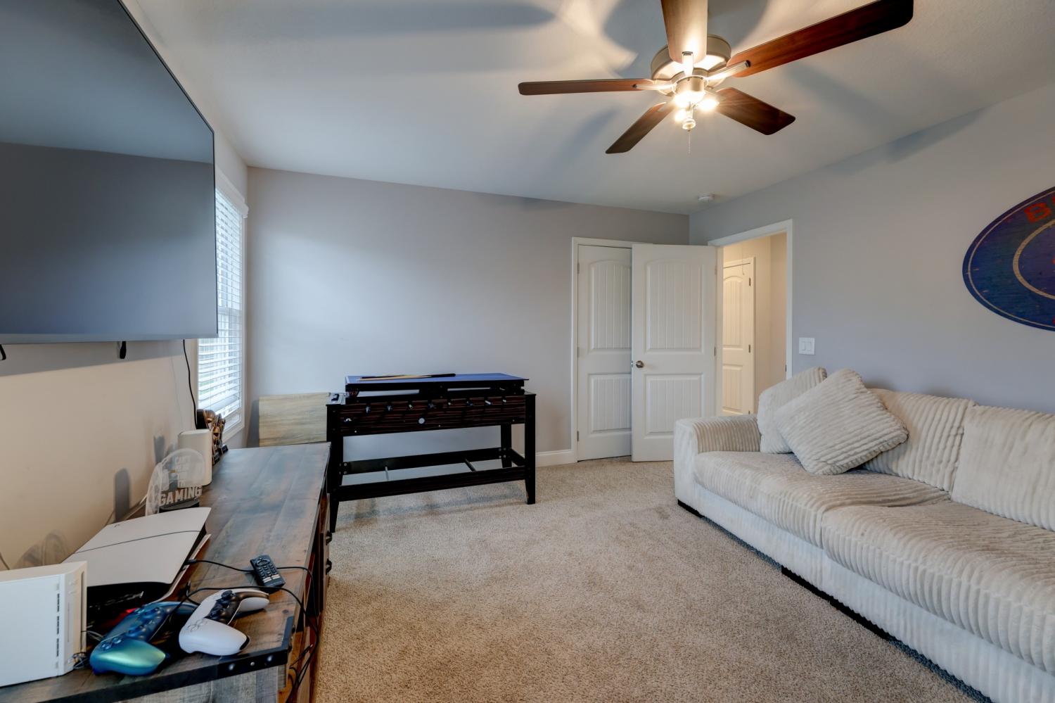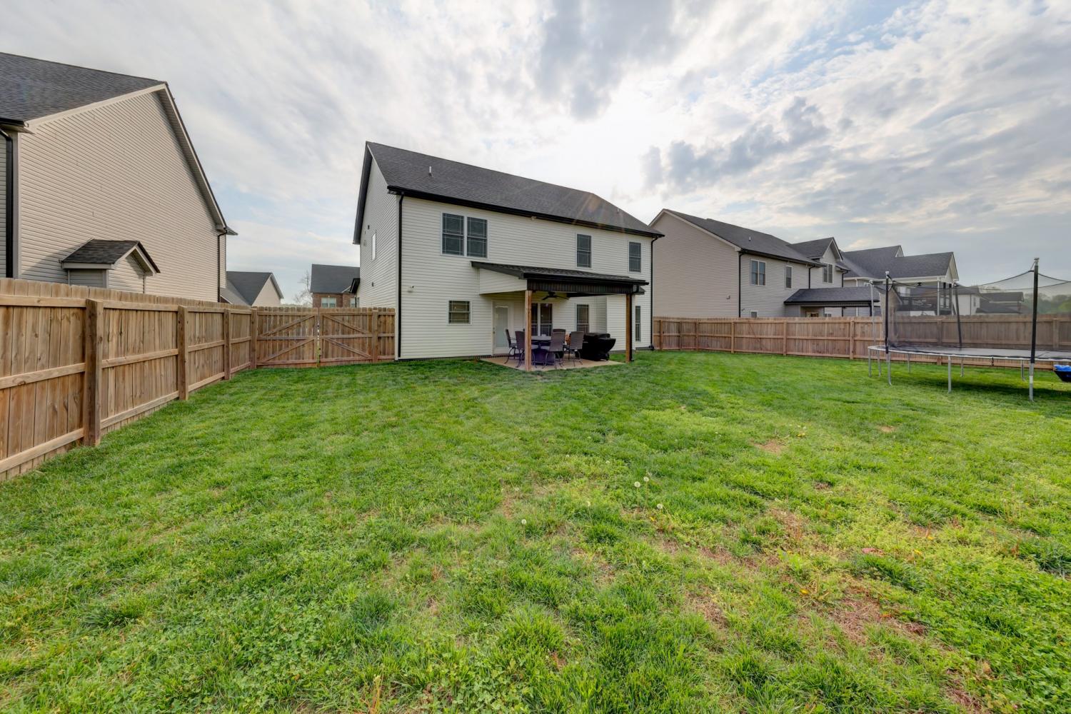 Better than new in Griffey Estates! This stunning 4 bedroom, 3 bath home with a versatile bonus room offers the space, style, and flexibility to be used as a 5th bedroom if needed. Step inside to an open concept design with soaring ceilings, abundant natural light, and beautiful shiplap electric fireplace as the center piece of the room. The kitchen impresses with granite countertops, lots of cabinet space, and generous workspace- perfect for everyday living and entertaining. A main level bedroom adds ideal flexibility for guests or office space. The spacious primary suite features beautiful tray ceiling and spa- like bath with double vanities, a soaking tub, separate shower and his/her walk-in closets. Enjoy outdoor living in the fully fenced backyard offering privacy and space to relax under the covered patio. Located in a walkable neighborhood with sidewalk and a playground, this home blends comfort, convenience, and community. Move-in ready and feels like new- without the wait!