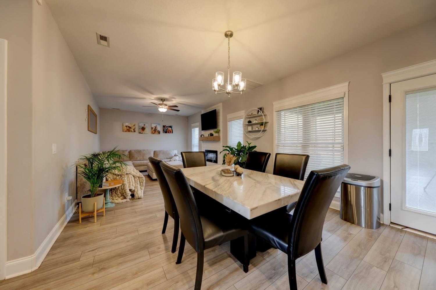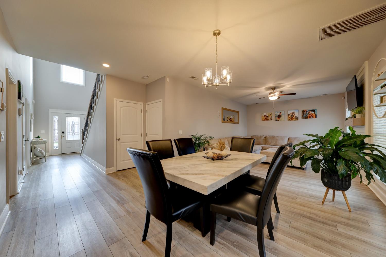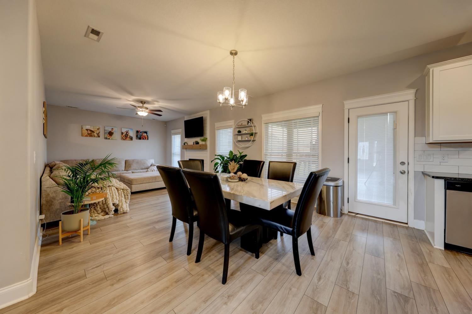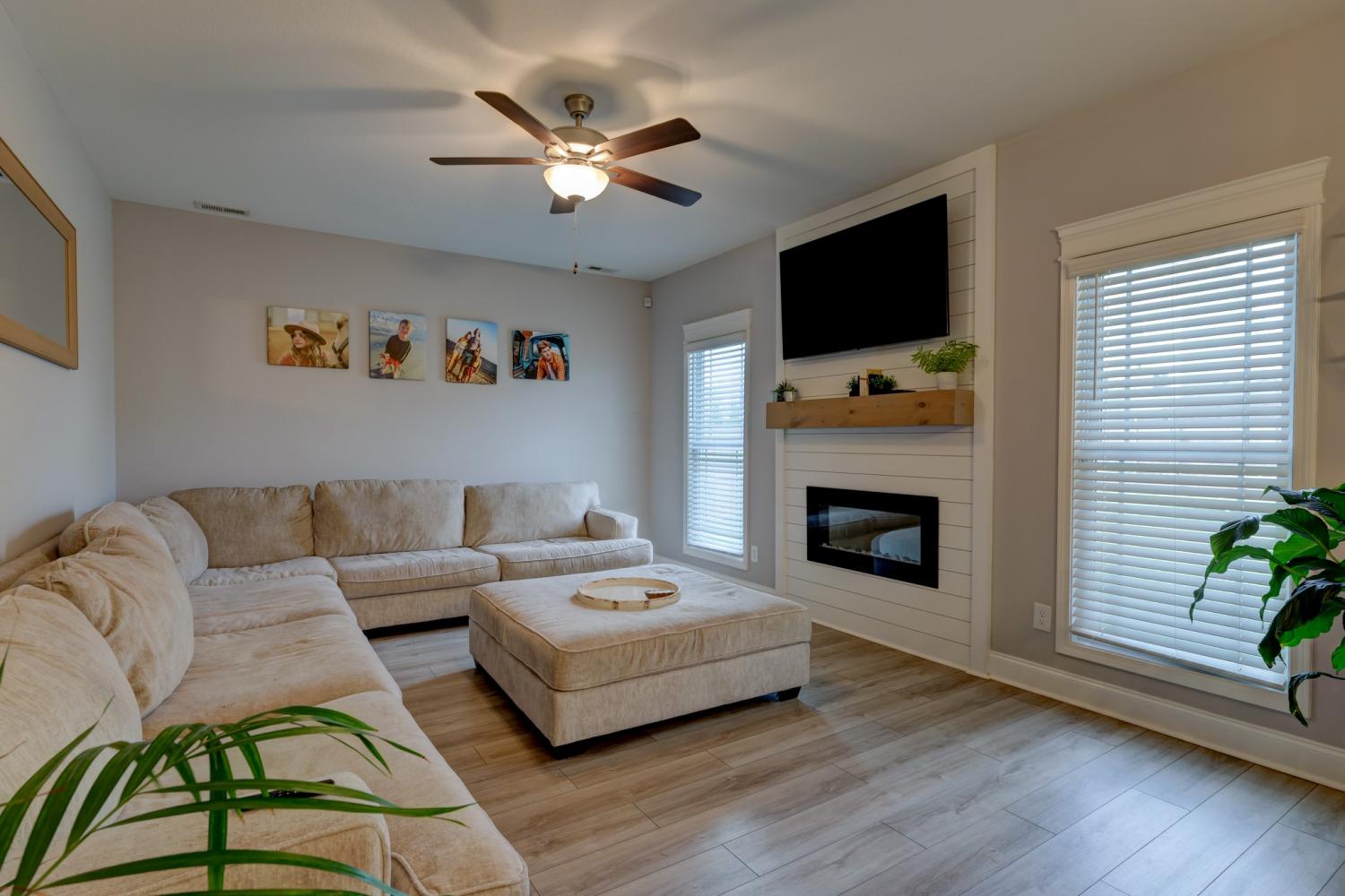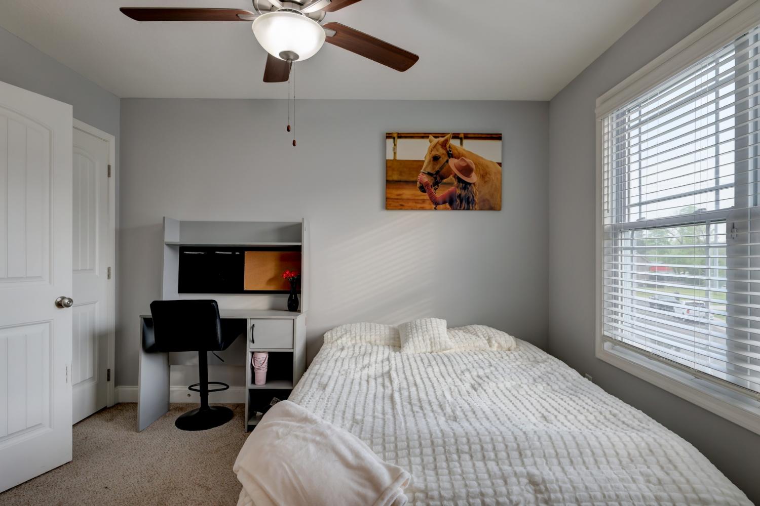 Better than new in Griffey Estates! This stunning 4 bedroom, 3 bath home with a versatile bonus room offers the space, style, and flexibility to be used as a 5th bedroom if needed. Step inside to an open concept design with soaring ceilings, abundant natural light, and beautiful shiplap electric fireplace as the center piece of the room. The kitchen impresses with granite countertops, lots of cabinet space, and generous workspace- perfect for everyday living and entertaining. A main level bedroom adds ideal flexibility for guests or office space. The spacious primary suite features beautiful tray ceiling and spa- like bath with double vanities, a soaking tub, separate shower and his/her walk-in closets. Enjoy outdoor living in the fully fenced backyard offering privacy and space to relax under the covered patio. Located in a walkable neighborhood with sidewalk and a playground, this home blends comfort, convenience, and community. Move-in ready and feels like new- without the wait!