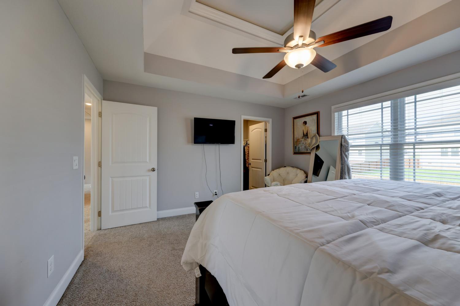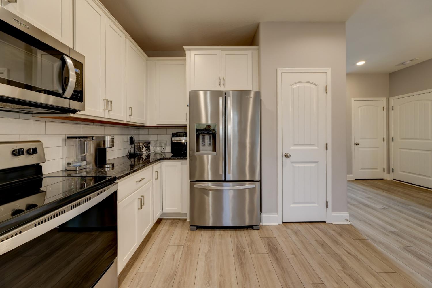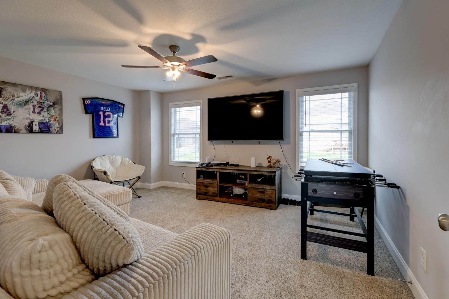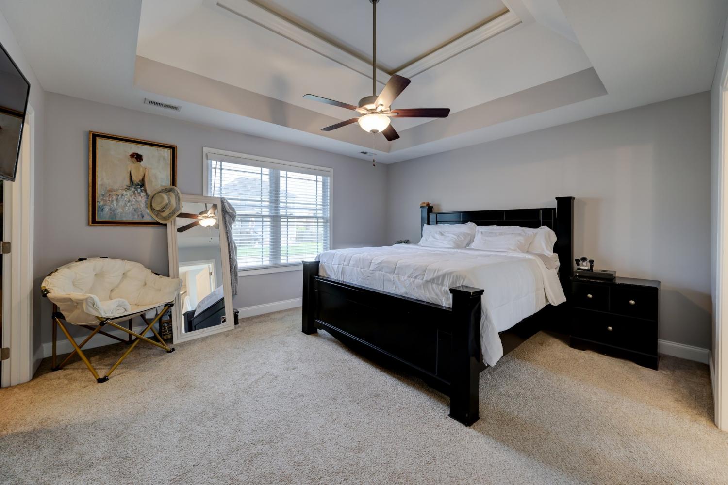 Better than new in Griffey Estates! This stunning 4 bedroom, 3 bath home with a versatile bonus room offers the space, style, and flexibility to be used as a 5th bedroom if needed. Step inside to an open concept design with soaring ceilings, abundant natural light, and beautiful shiplap electric fireplace as the center piece of the room. The kitchen impresses with granite countertops, lots of cabinet space, and generous workspace- perfect for everyday living and entertaining. A main level bedroom adds ideal flexibility for guests or office space. The spacious primary suite features beautiful tray ceiling and spa- like bath with double vanities, a soaking tub, separate shower and his/her walk-in closets. Enjoy outdoor living in the fully fenced backyard offering privacy and space to relax under the covered patio. Located in a walkable neighborhood with sidewalk and a playground, this home blends comfort, convenience, and community. Move-in ready and feels like new- without the wait!