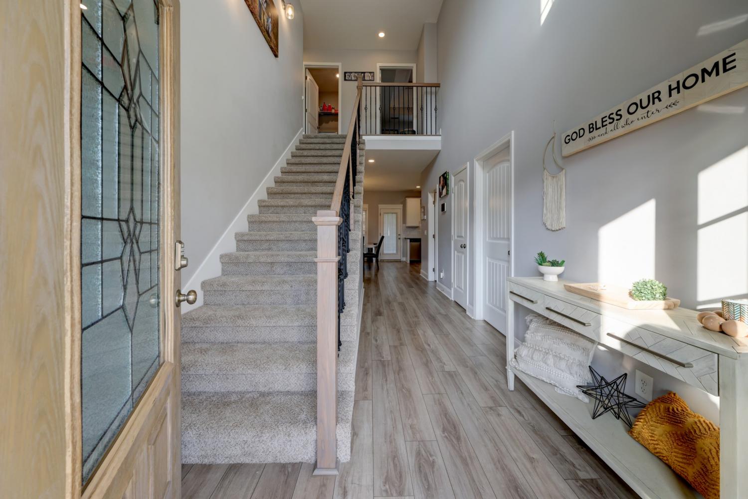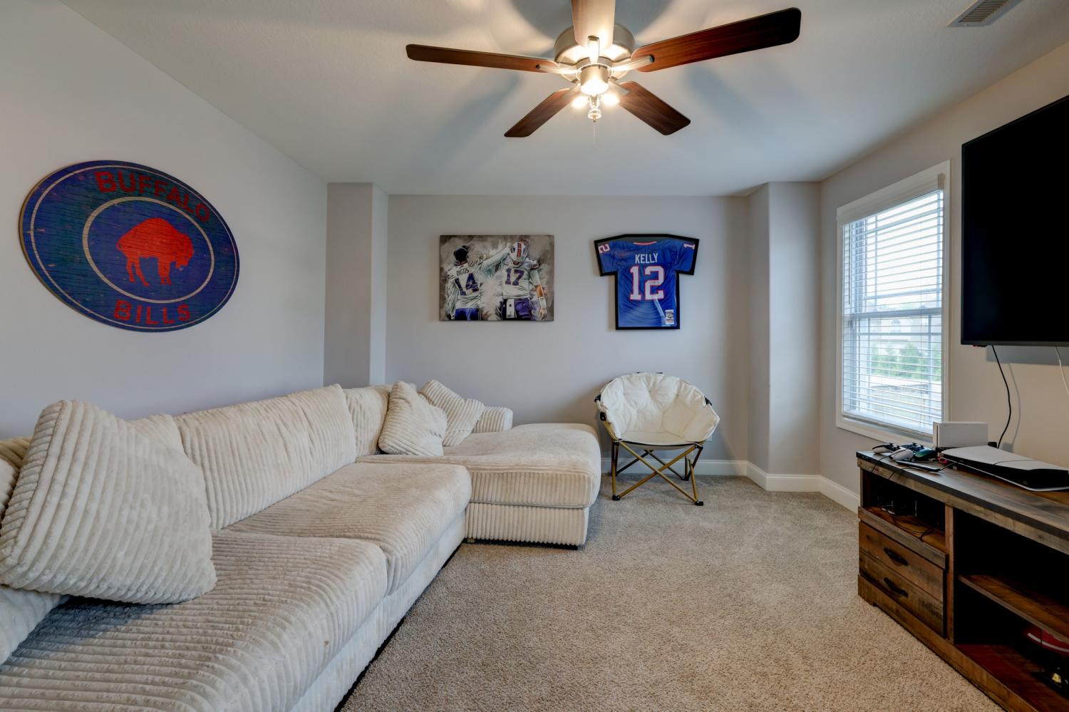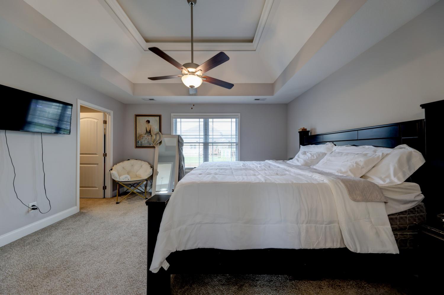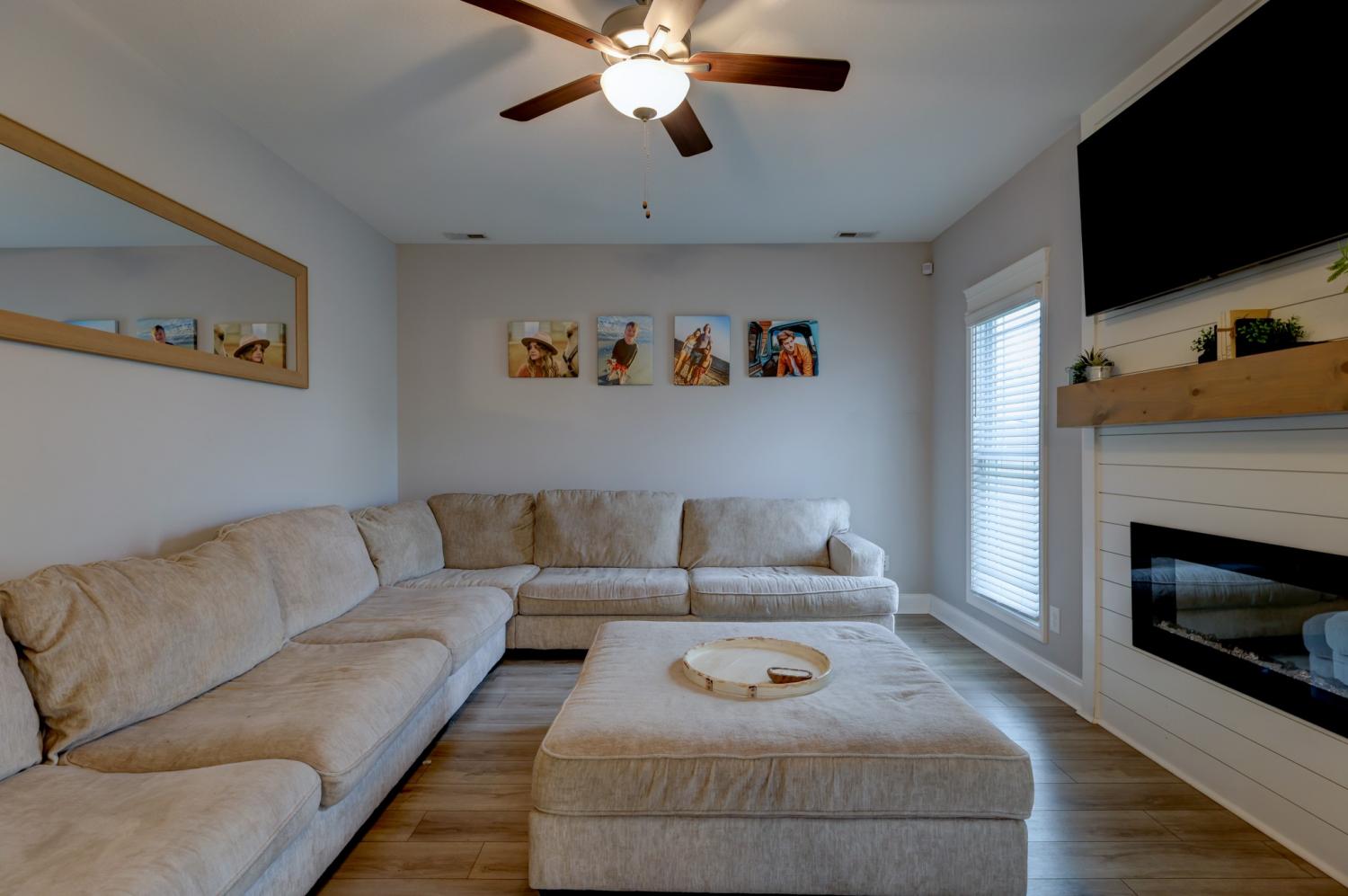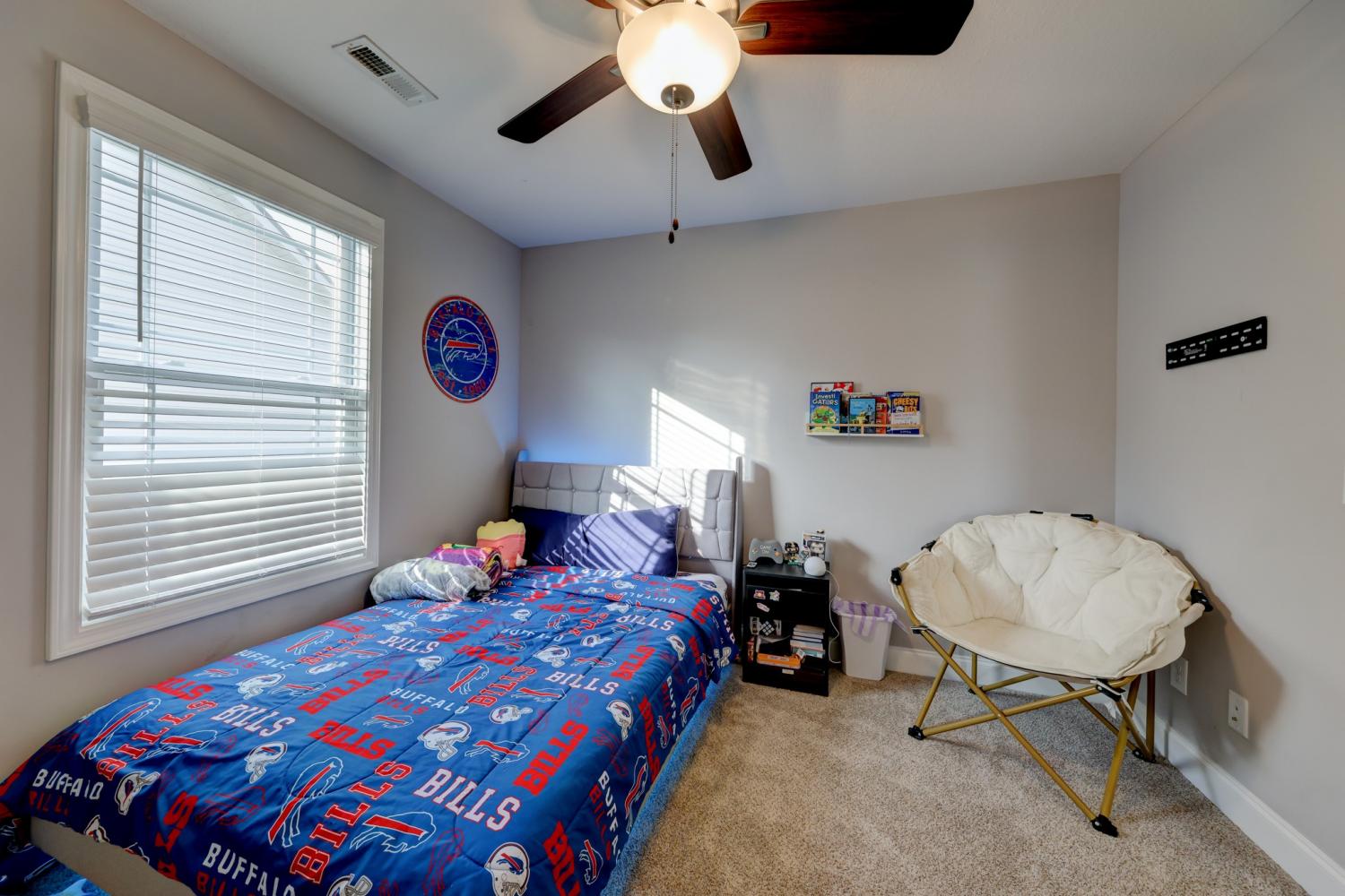 Better than new in Griffey Estates! This stunning 4 bedroom, 3 bath home with a versatile bonus room offers the space, style, and flexibility to be used as a 5th bedroom if needed. Step inside to an open concept design with soaring ceilings, abundant natural light, and beautiful shiplap electric fireplace as the center piece of the room. The kitchen impresses with granite countertops, lots of cabinet space, and generous workspace- perfect for everyday living and entertaining. A main level bedroom adds ideal flexibility for guests or office space. The spacious primary suite features beautiful tray ceiling and spa- like bath with double vanities, a soaking tub, separate shower and his/her walk-in closets. Enjoy outdoor living in the fully fenced backyard offering privacy and space to relax under the covered patio. Located in a walkable neighborhood with sidewalk and a playground, this home blends comfort, convenience, and community. Move-in ready and feels like new- without the wait!