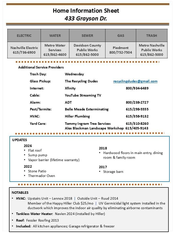 From Hwy 70S/Harding Pike, Right on Vaughn's Gap Rd; Left onto Jocelyn Hollow Rd; Right on Grayson Dr. to home at the end of the cul-de-sac