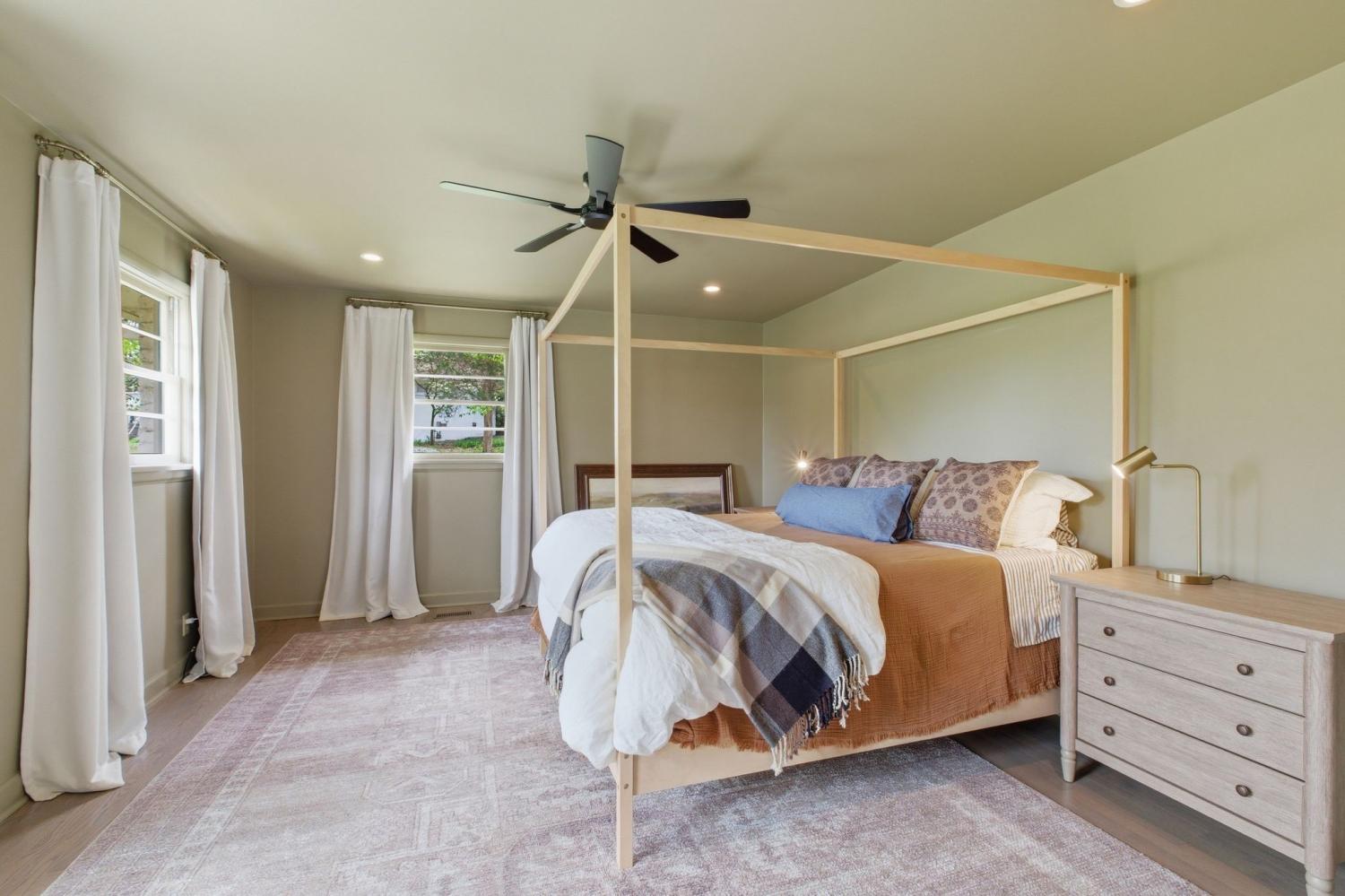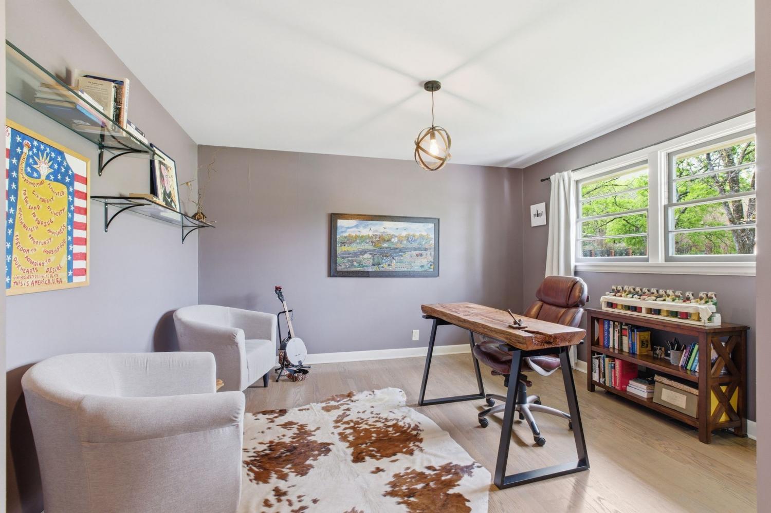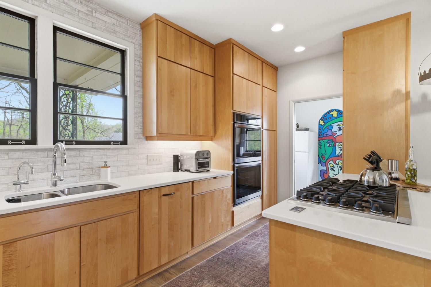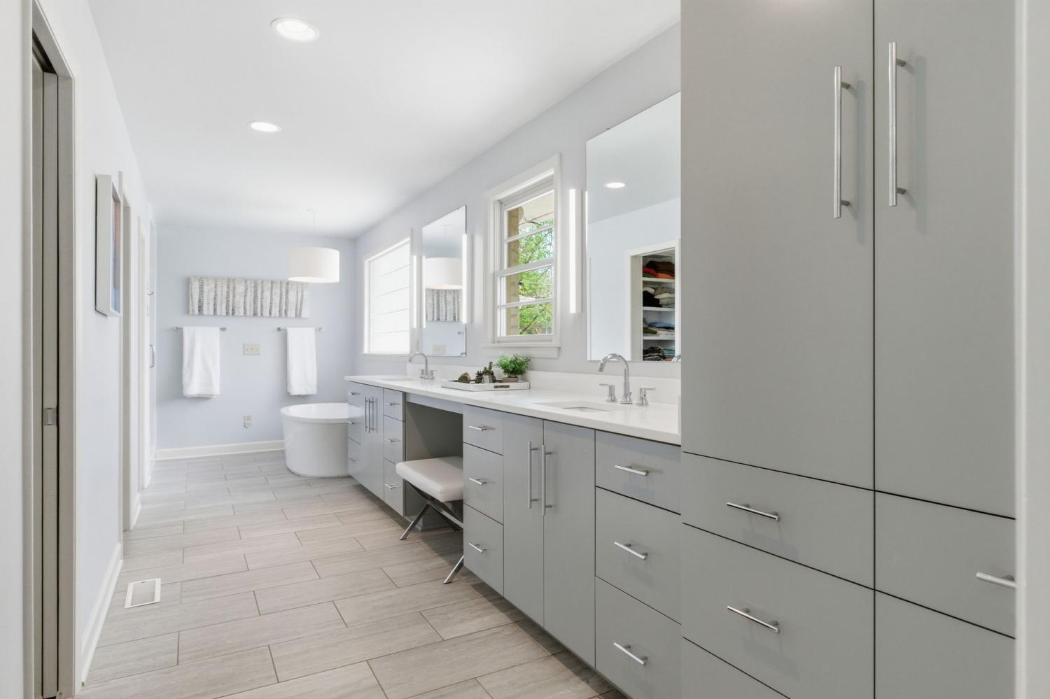 This exceptional mid-century residence is a rare offering, set on a private, park-like lot. Designed for effortless one-level living, the home is filled with natural light and showcases serene views from every window. Thoughtfully renovated in 2016, the current owners preserved its timeless mid-century character while seamlessly integrating modern updates. The kitchen is both upgraded and functional, featuring premium appliances including a Viking six-burner gas range, double ovens, a Sub-Zero refrigerator, walk-in pantry, and a wet bar. The open-concept kitchen and main living space offer the popular style of living, while an additional separate living area provides flexibility—as a den, or potential fourth bedroom with ensuite bath. The primary suite is move-in ready, featuring a beautifully updated bathroom. An elevator provides convenient access to the garage, which offers abundant storage in the unfinished basement. The outdoor living is lovely with thoughtfully designed spaces that invite both relaxation and entertaining. Enjoy a fireplace, outdoor gas grill, fire pit, bocce ball court, and multiple patio areas—all surrounded by mature landscaping that ensures privacy. A circular driveway adds both convenience and ample parking. Meticulously maintained, the home includes numerous upgrades such as a Sonos sound system, encapsulated attic with foam insulation, and new garage doors with updated systems. Opportunities like this are rare—the chance to own a true mid-century, single-level home on a flat lot, tucked away in a premier location.