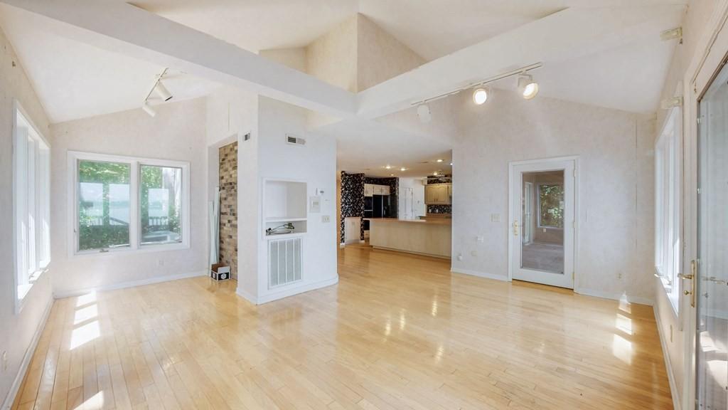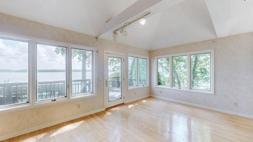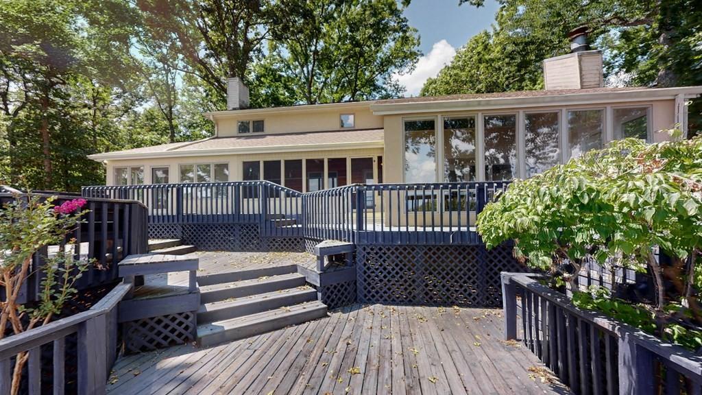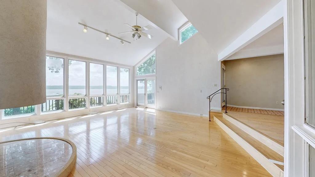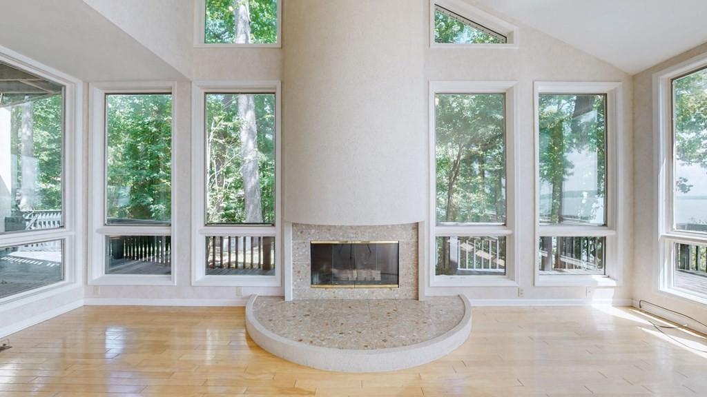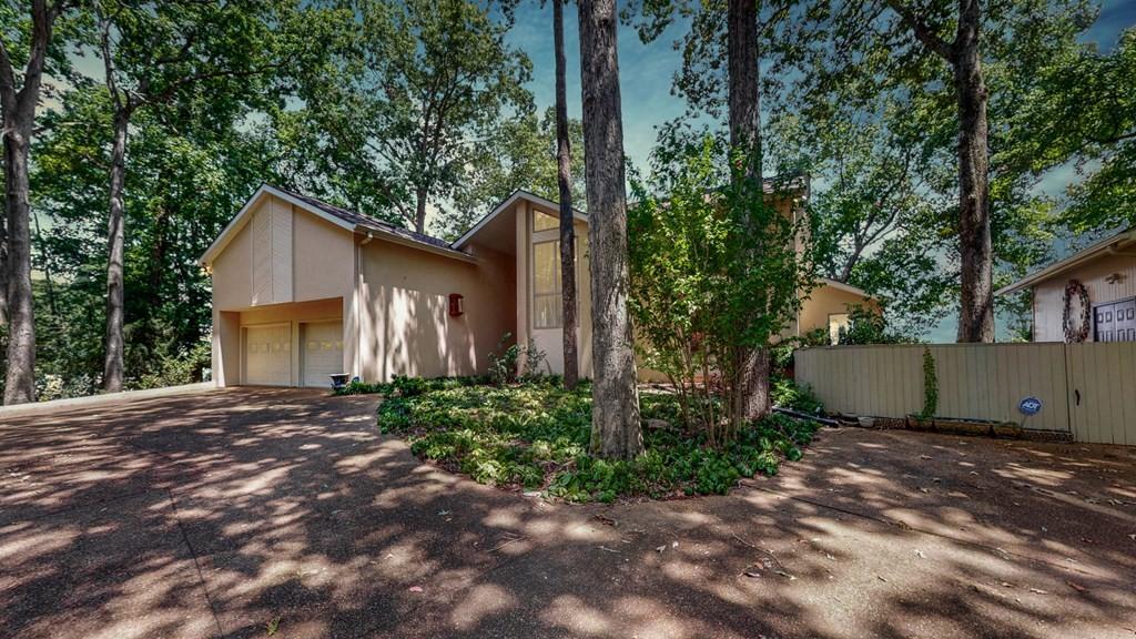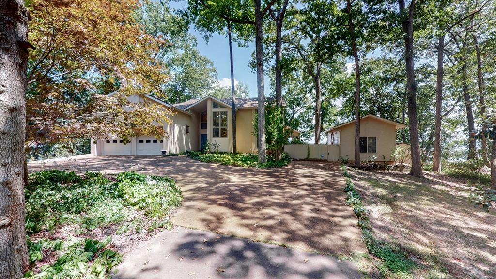 THIS ARCHITECT DESIGNED, 3943 SQ FT LAKEFRONT CONTEMPORARY HOME, IS 1 MILE NORTH OF PARIS LANDING STATE PARK. A LARGE FORYER & FORMAL DINING ROOM LEAD TO A SUNKEN GREAT ROOM WITH SCULPTURED FIREPLACE & SPECTACULAR VIEWS OF KENTUCKY LAKE THROUGH EXTRA-LARGE WINDOWS. SCREENED CEDAR PORCH LEADS TO HUGE DECK. BLUSH TERRACOTTA FLOOR AND CUSTOM HARDWOOD CABINETS IN KITCHEN OPEN TO A 2ND FIREPLACE & LARGE WINDOWED DEN. CUSTOM HARDWOOD FLOORS THROUGHOUT DOWNSTAIRS. MASTER SUITE HAS NEW CARPET, VIEWS OF LAKE, AND ITS OWN PRIVATE DECK. DRESSING ROOM INCLUDES HIS/HERS CLOSETS, MIRROR SURROUND, JETTED 2 PERSON BATHTUB, NATURAL LIGHT STREAMS THROUGH SKYLIGHTS IN LARGE BONUS ROOM WITH WETBAR, REFRIGERATOR, BUILT-IN BOOKCASES. AMENTIES INCLUDE DIRECT WATER/LAKE ACCESS, U-SHAPED PRIVATE DOCK, BOAT LIFT, LARGE GARDEN HOUSE/WORKSHOP NEXT TO MAIN HOUSE, NEW 2025 ROOF, RAINBIRD IRRIGATION SYSTEM, NEW HEAT PUMPS, CENTRAL VACUUM, NEW HOT WATER HEATERS, NEWPORTBURY NAVY BLUE STAINED, GORGEOUS 2,000 SQU FT MULTILEVEL DECK.