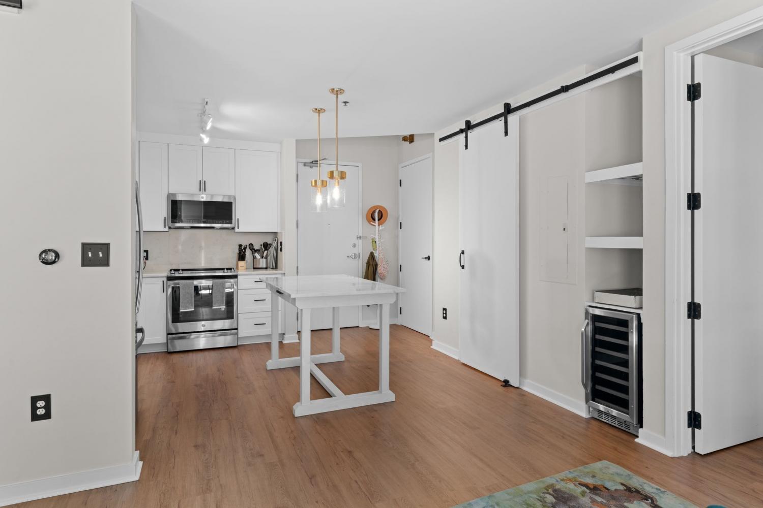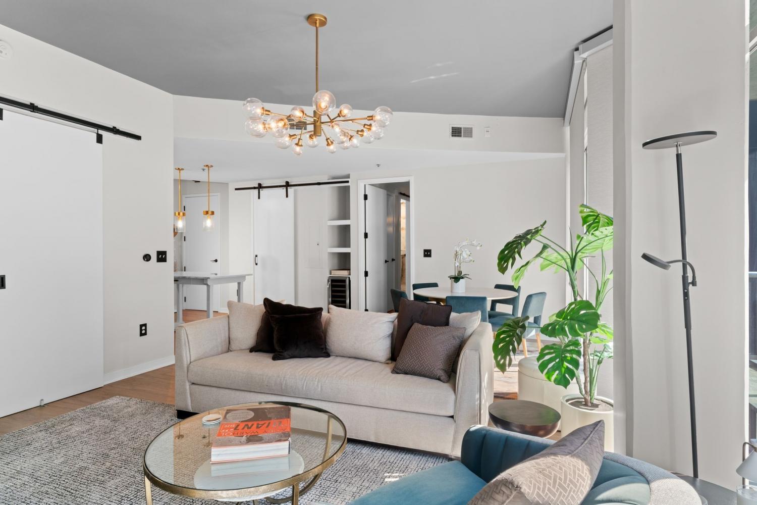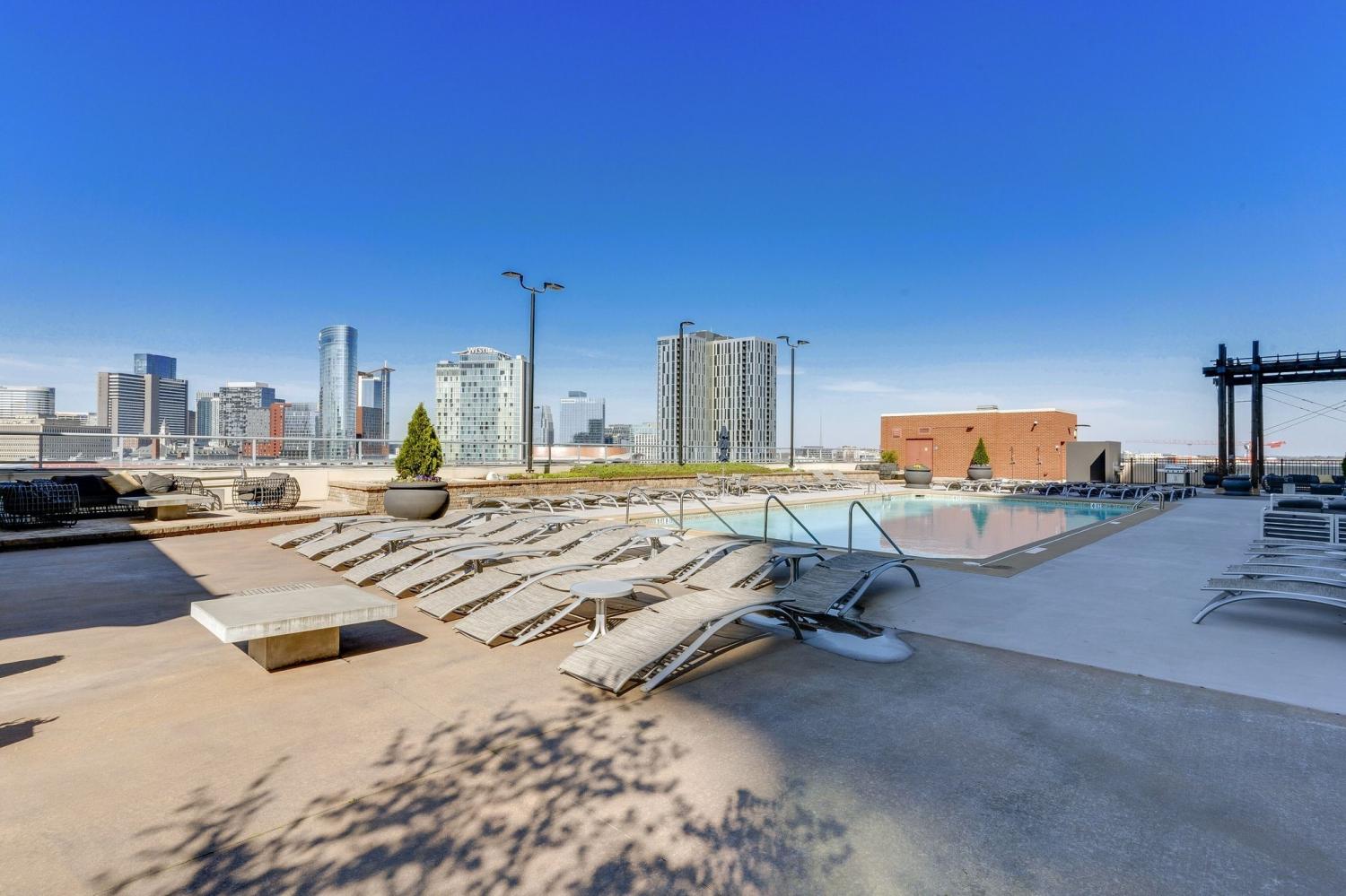 The coveted Icon Building, the Gem of Nashville's vibrant Gulch neighborhood.....now offering this stunning fully remodeled 2 Br 1 full and 1 half bath residence. Freshly priced & move-in ready! All the hassle of a remodel has been done for you!! This condo has been thoughtfully redesigned with modern finishes, new flooring, updated lighting, & a fully renovated kitchen featuring quartz countertops, custom cabinetry and backsplash, plus premium stainless appliances. Floor-to-ceiling windows fill the open-concept living area with natural light. The spacious primary suite provides a relaxing retreat with a large walk-in closet and a fully remodeled spa-inspired bath with custom tiled shower & large double vanity. The second bedroom is ideal for guests or a home office. Residents enjoy world-class amenities including two resort-style pools, a state-of-the-art fitness center, multiple rooftop lounges with panoramic skyline views, and 24-hr concierge service. The unbeatable location of the Icon places you just steps from Nashville's best dining, shopping, and entertainment.