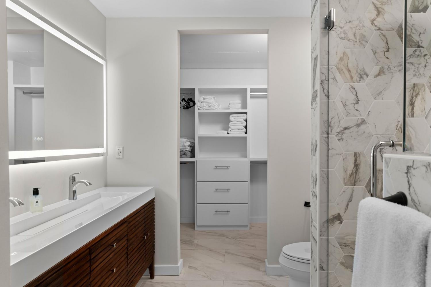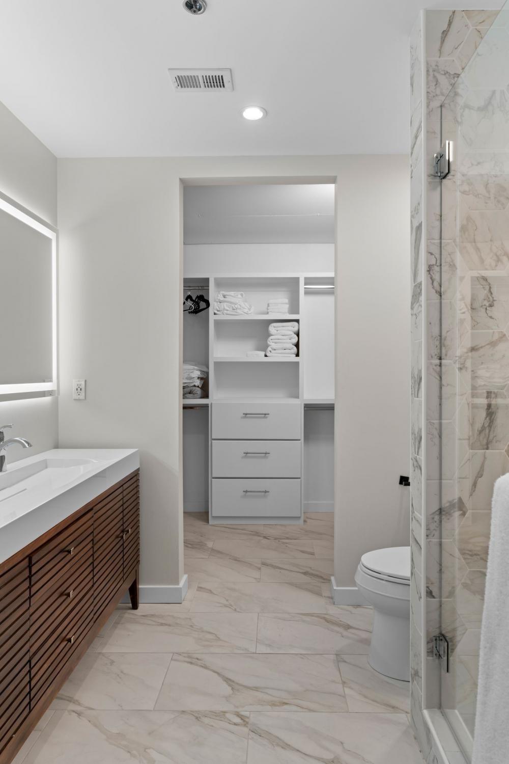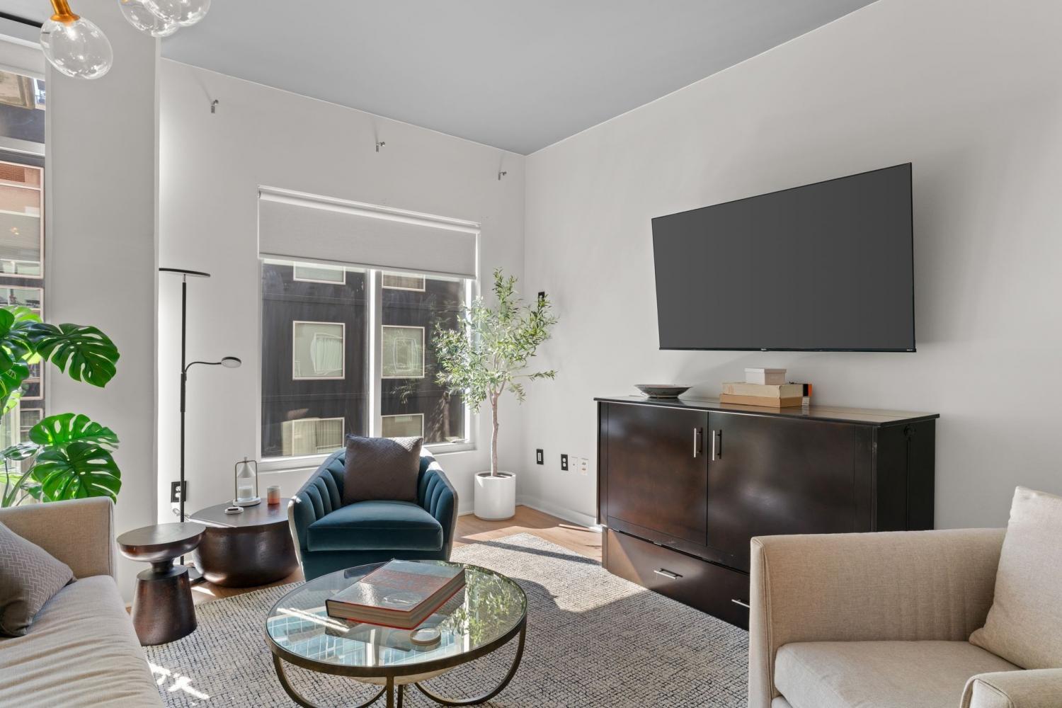 The coveted Icon Building, the Gem of Nashville's vibrant Gulch neighborhood.....now offering this stunning fully remodeled 2 Br 1 full and 1 half bath residence. Freshly priced & move-in ready! All the hassle of a remodel has been done for you!! This condo has been thoughtfully redesigned with modern finishes, new flooring, updated lighting, & a fully renovated kitchen featuring quartz countertops, custom cabinetry and backsplash, plus premium stainless appliances. Floor-to-ceiling windows fill the open-concept living area with natural light. The spacious primary suite provides a relaxing retreat with a large walk-in closet and a fully remodeled spa-inspired bath with custom tiled shower & large double vanity. The second bedroom is ideal for guests or a home office. Residents enjoy world-class amenities including two resort-style pools, a state-of-the-art fitness center, multiple rooftop lounges with panoramic skyline views, and 24-hr concierge service. The unbeatable location of the Icon places you just steps from Nashville's best dining, shopping, and entertainment.