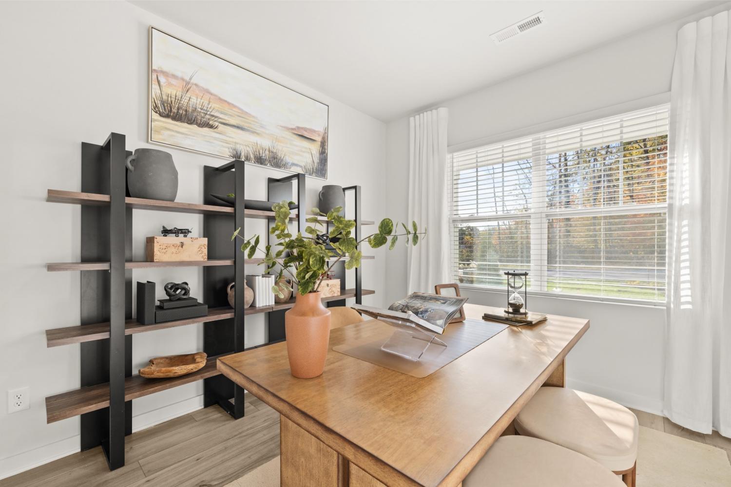 The Mayflower floorplan welcomes you with thoughtful details and plenty of space for everyone. On the main floor, you’ll find a study with French doors—ideal for working from home—along with a comfortable bedroom and full bath for guests. The open kitchen, dining, and living areas are filled with natural light, and the kitchen includes all appliances (yes, the fridge too!). Blinds and select smart-home features are already in place to make everyday living easy. Head upstairs to discover a spacious loft, two secondary bedrooms with walk-in closets, and an impressively large primary suite that’s perfect for relaxation. It’s a bright, beautiful home designed with today’s lifestyle in mind. Images from artist rendering. Actual configuration and features may vary.