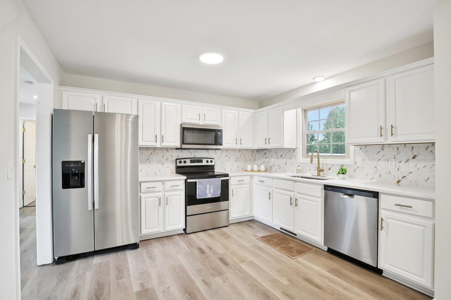 Welcome to 1698 Porter Rd. Set on a gorgeous 1.05 flat acre lot, this 3 bedroom, 2 bath home offers 2,823 sq ft of beautifully refreshed living space with thoughtful updates and room to spread out. Inside, you’ll immediately notice the fresh, new lighting throughout and the abundance of natural light that brightens every corner. Recent upgrades include new LVP throughout the main living areas and bedrooms, new tile in both bathrooms, and new carpet in the bonus room, giving the home a clean, modern feel while still being comfortable and inviting. The kitchen is a true standout with bright white cabinets, new quartz countertops, a new tile backsplash, brand-new stainless steel appliances, and stylish new gold tone fixtures and hardware that add the perfect finishing touch. The master suite is equally impressive, featuring his and her closets including a massive walk-in closet, plus an updated en suite bathroom with a dual vanity, new quartz countertops, new gold tone fixtures and hardware, new lighting, and a new beautifully tiled walk-in shower with a premium frameless glass enclosure. Need flexible space? You’ve got it. The huge bonus room is ideal for a second living area, playroom, home gym, or theater room, and the oversized sunroom offers even more room to relax, entertain, or enjoy the views of your acreage. Outside is where this property truly shines for hobbyists and gearheads, with two separate driveways, a 3 car detached garage, and an Atlas lift included, plus an upstairs storage area and a large shed for even more space to keep tools, equipment, and toys organized. From the bright, updated interior to the sunroom, bonus space, and the dream setup for car enthusiasts, 1698 Porter Rd is the one you’ve been waiting for. Welcome home!