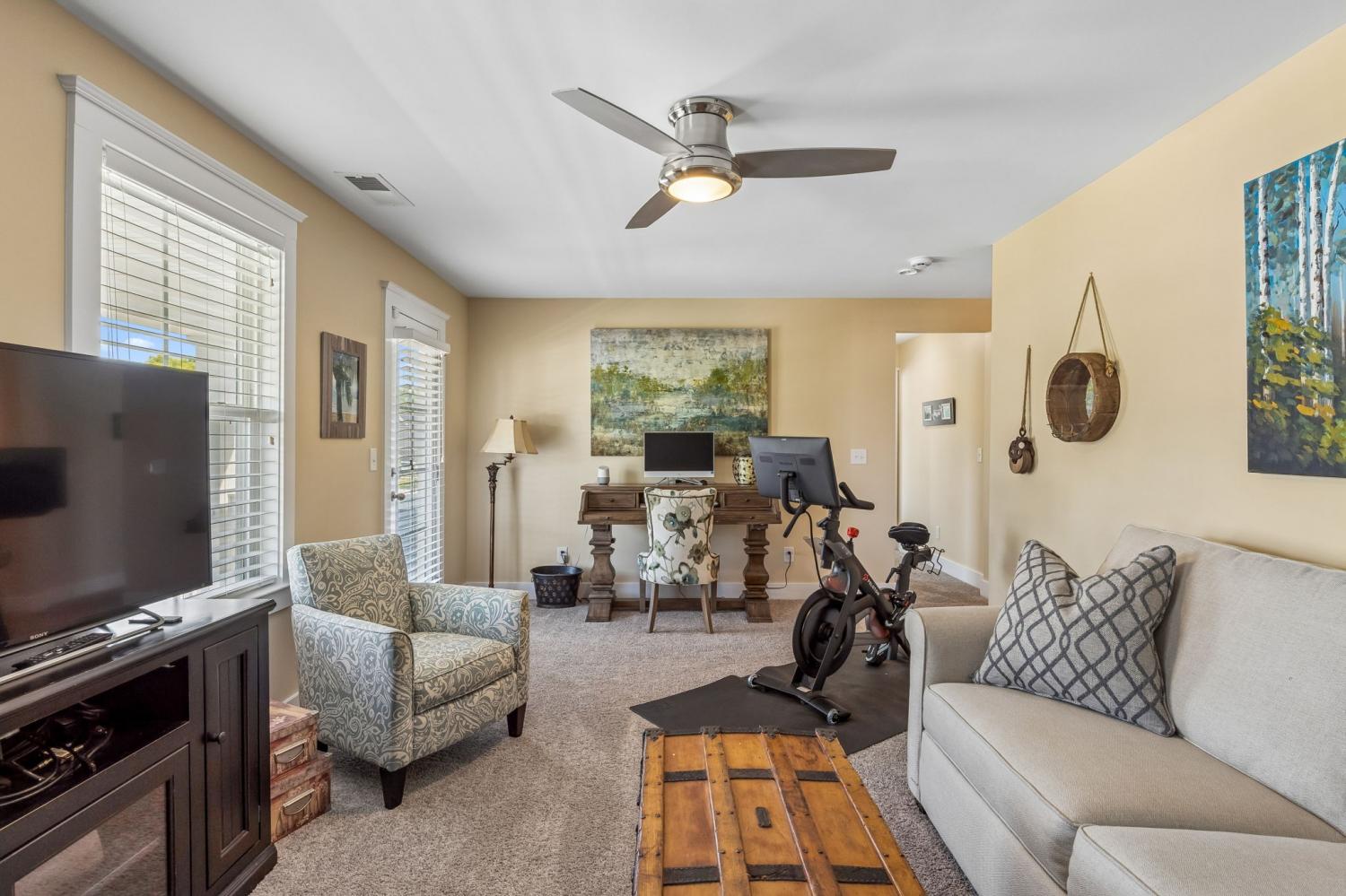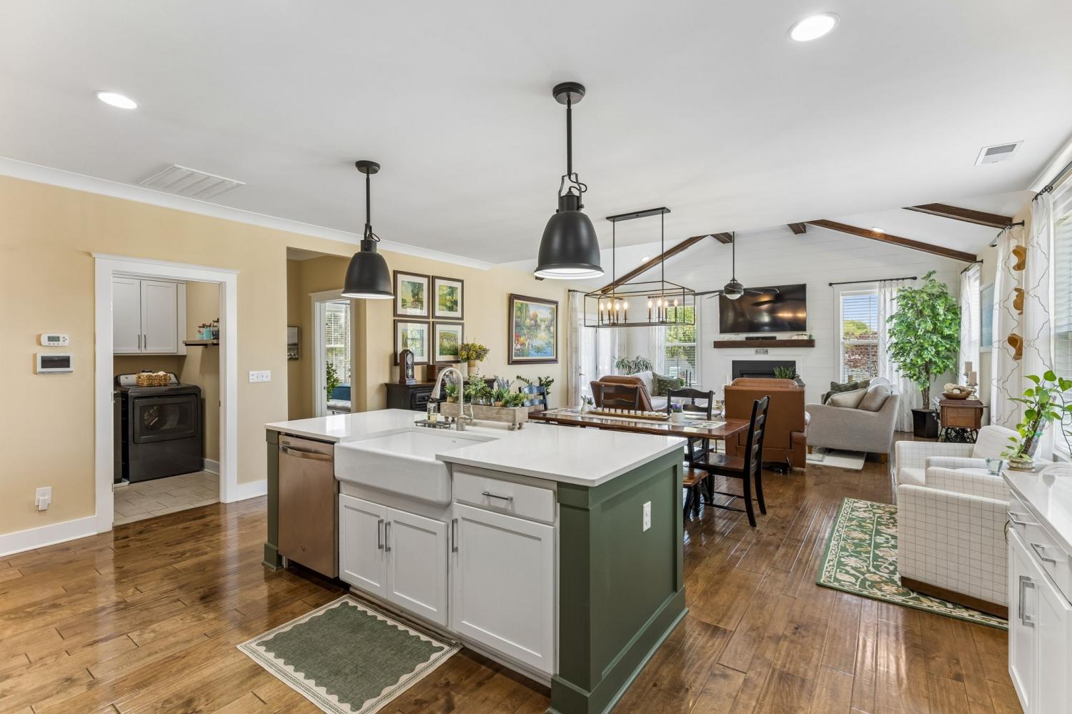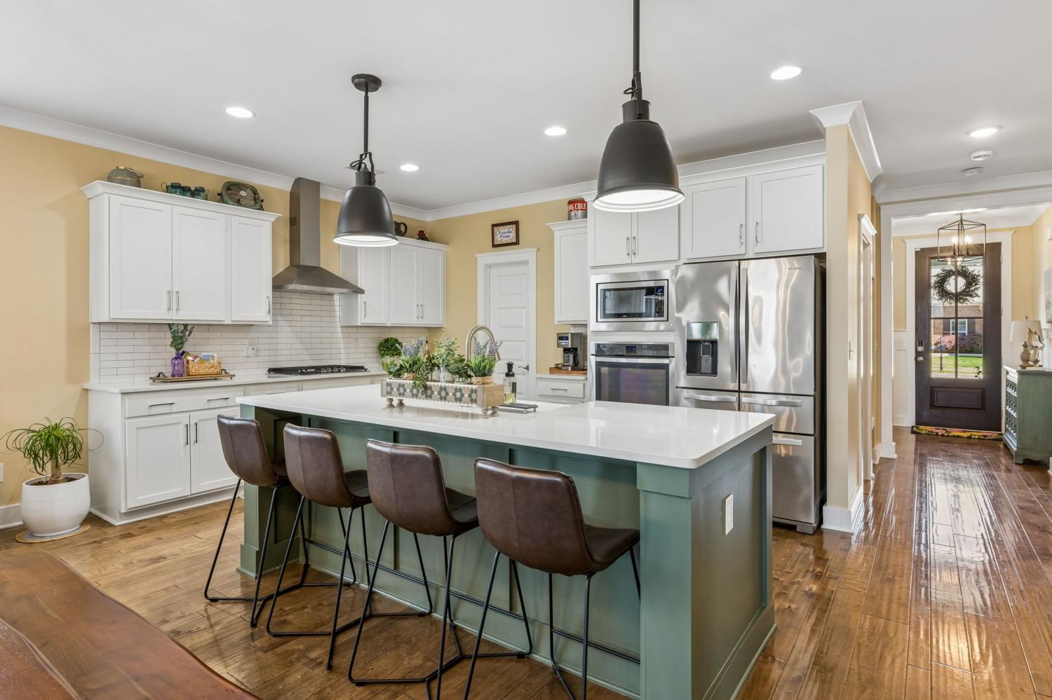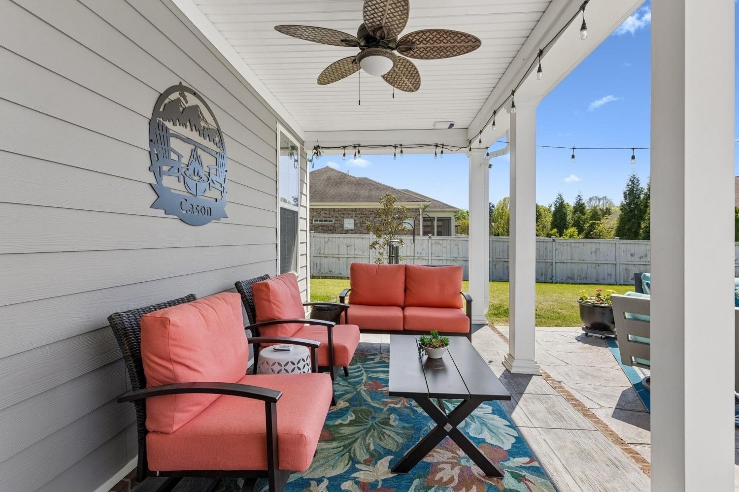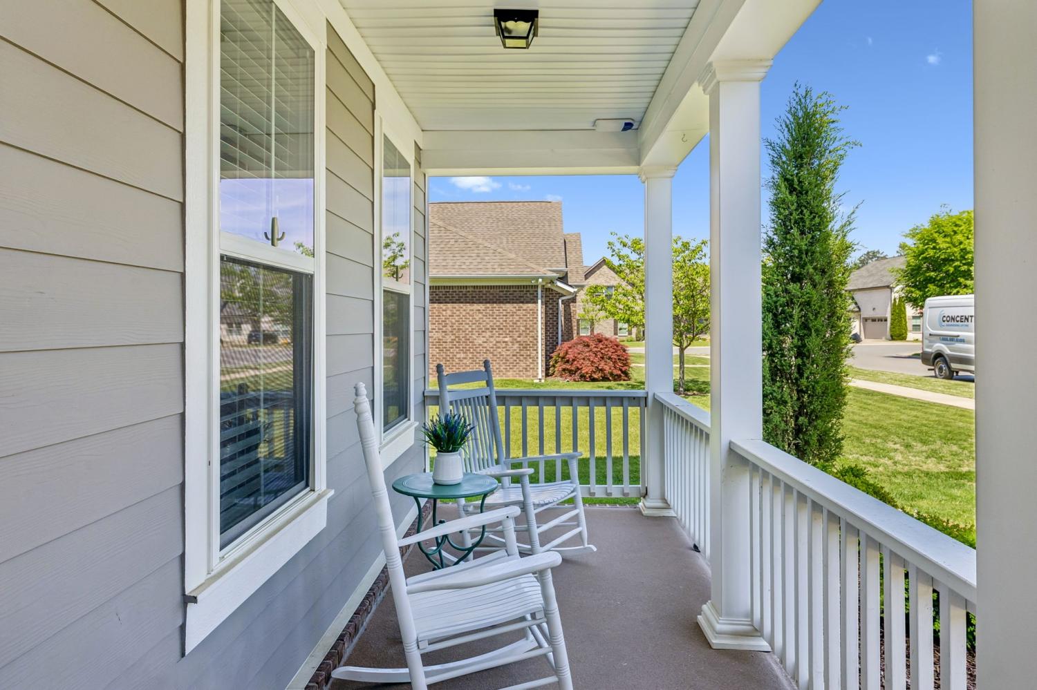 This beautifully maintained home offers the perfect blend of functional layout and standout features, highlighted by a private backyard retreat with an in-ground pool and expansive patio—ideal for entertaining or relaxing all season long. Inside, the main level features all solid surface flooring and an open-concept design that seamlessly connects the kitchen, dining, and living areas. The kitchen is a true centerpiece with a large island, quartz countertops, stainless steel appliances, subway tile backsplash, and statement pendant lighting, all overlooking the inviting living room with a fireplace and custom beam ceiling detail. A separate formal dining room provides additional space for hosting, while the powder bath adds a touch of style with upgraded finishes. The primary suite is conveniently located on the main level, offering privacy and comfort with a well-appointed en-suite bath featuring dual vanities, a tiled shower, and clean, modern finishes. Upstairs, you’ll find two additional bedrooms, a full bath, and a spacious second living area—perfect for a bonus room, media space, or home office. Thoughtful details throughout the home include accent walls, upgraded lighting, water softener system, and a welcoming covered front porch and upper balcony that add to the home’s charm and curb appeal. This one checks all the boxes with flexible living space, quality finishes, walk out attic storage, and a backyard designed to be enjoyed!