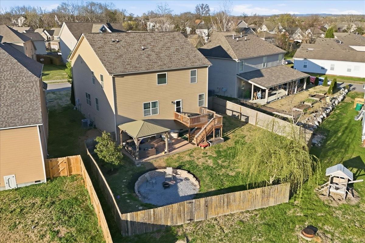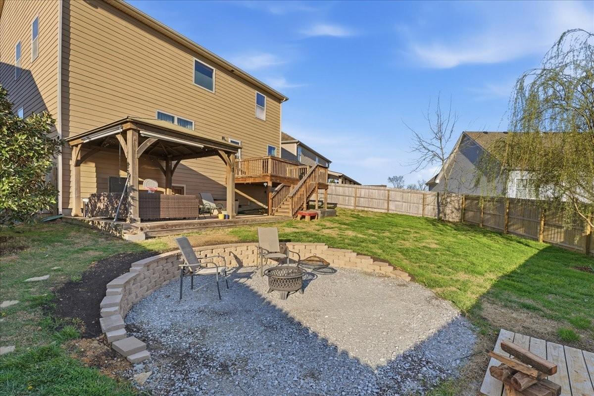 Welcome home to Williams Park — one of Spring Hill's most beloved family-centered communities! This gorgeous 5-bedroom, 2.5-bath home offers 3,039 sq ft of beautifully upgraded living space that's truly move-in ready and waiting for its next lucky family. The extra-large kitchen is the heart of the home — made for Sunday morning pancakes, holiday gatherings, and everything in between. Upgraded wood flooring flows throughout the main level, brand new carpet makes the upstairs feel fresh and cozy, and a new roof (2022) plus included home warranty (Select Platinum Care Plan, 14 months) mean you can move in and just enjoy. The pre-installed alarm system gives you peace of mind from day one, and the extra-large crawl space offers the kind of storage space you didn't know you needed until you have it! Out back is where this home really shines. Picture yourself relaxing on the big back deck, hosting under the pergola that conveys, roasting mallows at the landscaped firepit, and watching the kids run freely in the large fenced yard. And here's the best part — a back gate opens directly to the community pool, making summer days feel like a permanent vacation. Backing up to open green space, the yard is as private as it is spacious. But honestly...The neighborhood might just be the greatest feature of all. Williams Park is the kind of community you'll feel the moment you drive in — where summers mean lively pool parties, fall brings pumpkin get-togethers and Halloween trick-or-treating that the kids will talk about for years, Easter egg hunts fill the neighborhood with giggles, and Christmas decorating contests turn every street into a holiday card. All of this with low HOA dues, easy access to Saturn Parkway and I-65 — close to everything, but feeling like a world of your own. This sweet family home is ready for your sweetest family memories. Come see it —we think you're going to fall in love. Special financing offer! Use CareyAnn Cyr with CMG 1% Credit for closing costs!