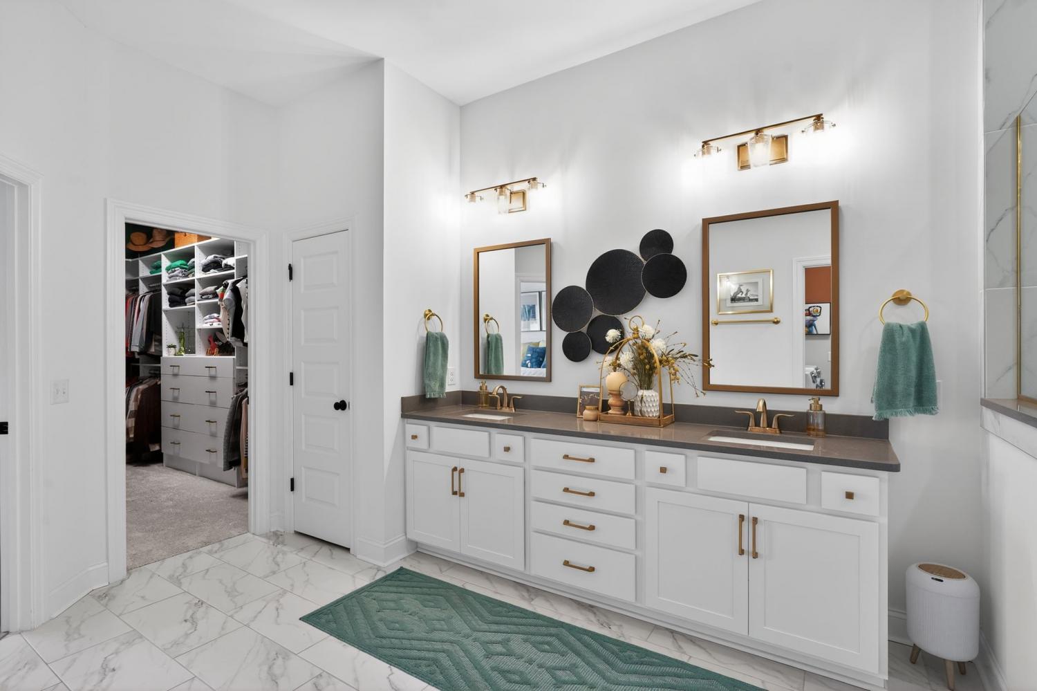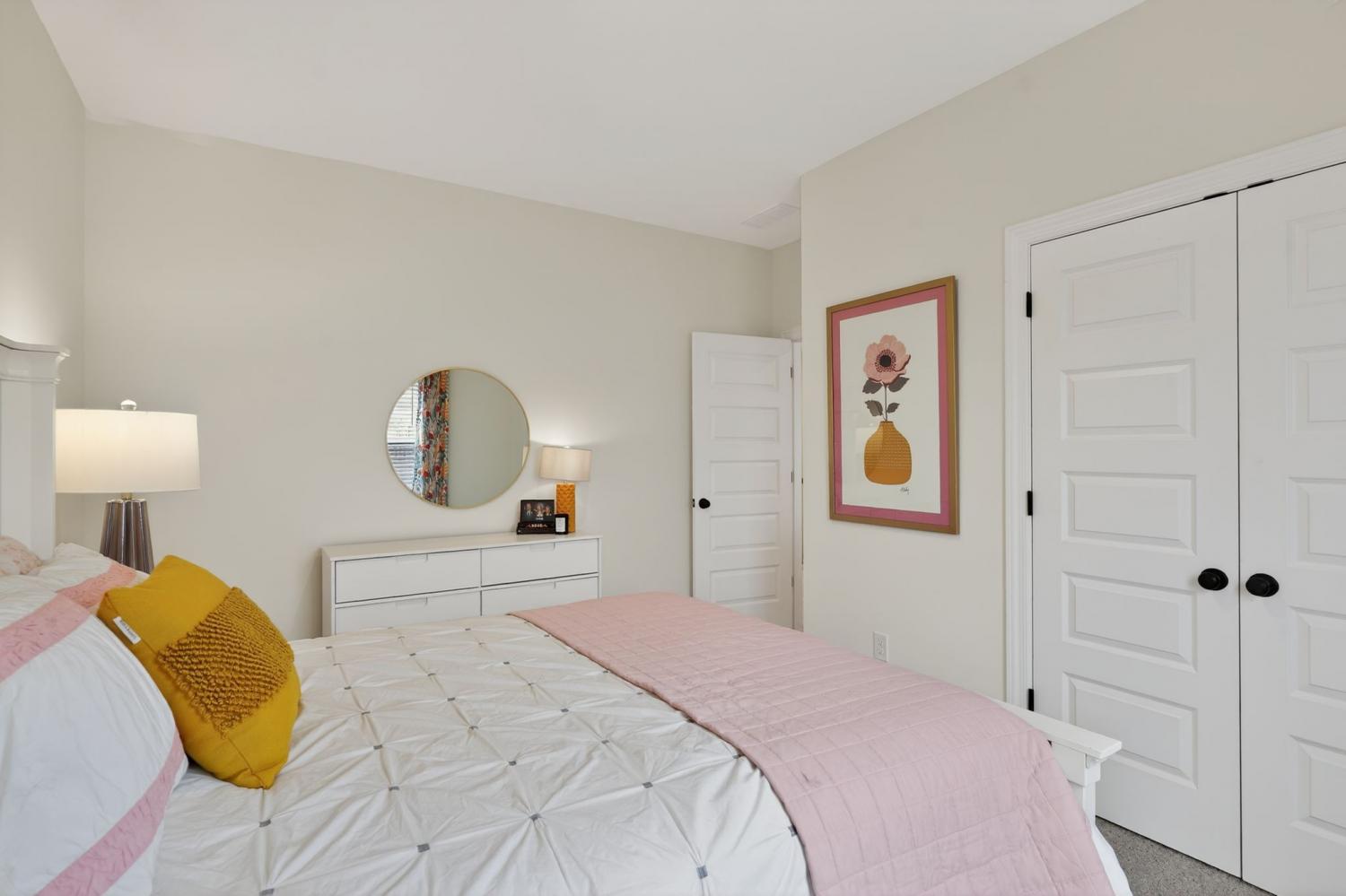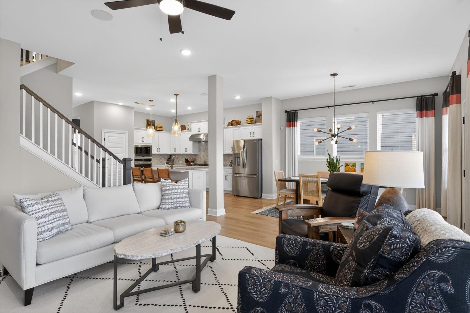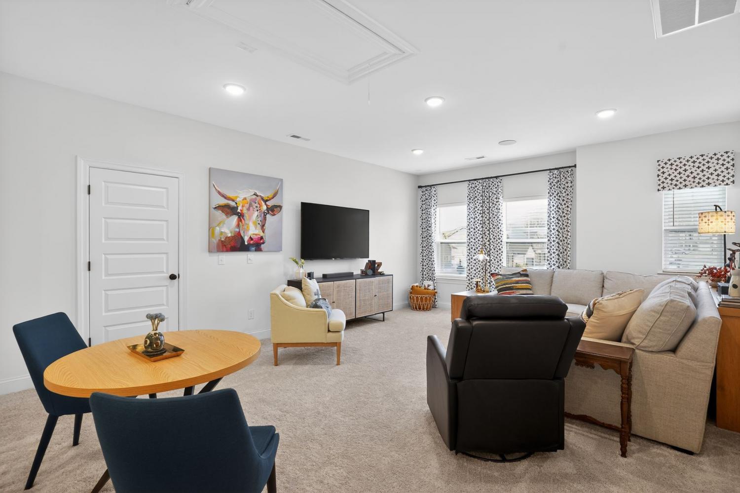 Welcome to the model home that truly has it all. Built in 2023 and lived in for only one year, this stunning 4 bed, 3 bath home offering 2,926 sqft is packed with designer finishes, custom upgrades, and magazine-worthy details throughout. From the moment you step inside, you’re welcomed by a stylish, cozy reading nook before the home opens into an impressive open-concept living space filled with natural light. The bright white chef’s kitchen is the showstopper, featuring gold accents, gas cooktop, built-in oven and microwave, oversized center island, two pantries (including a walk-in), and light oak flooring that flows throughout the main living areas. The kitchen opens seamlessly into the dining space highlighted by a statement gold chandelier and into the great room where a dramatic floor-to-ceiling vertical wood slat accent wall creates an unforgettable focal point. The primary suite on the main floor feels like a private retreat with wall-to-wall windows, a designer accent wall, and elegant chandelier. The spa-inspired bathroom showcases a massive walk-in shower with bench, floor-to-ceiling Moroccan star tile, marble accent wall, penny mosaic tile flooring, double vanity with gold fixtures, linen closet, and private water closet. The custom walk-in closet with built-ins connects directly to the laundry room for everyday convenience. Additional upgrades include custom closet systems throughout, a drop-zone with cubbies off the garage, guest bath with modern black tile and gold accents, epoxy garage flooring with extra storage, and a whole-home generator for peace of mind. Upstairs offers a spacious bonus room plus two additional bedrooms and a full bath with double vanity. Enjoy peaceful mornings on the covered back patio overlooking a level, tree-lined yard or relax on the charming covered front porch swing. Community amenities include a pool and park, offering the perfect blend of luxury, comfort, and lifestyle.