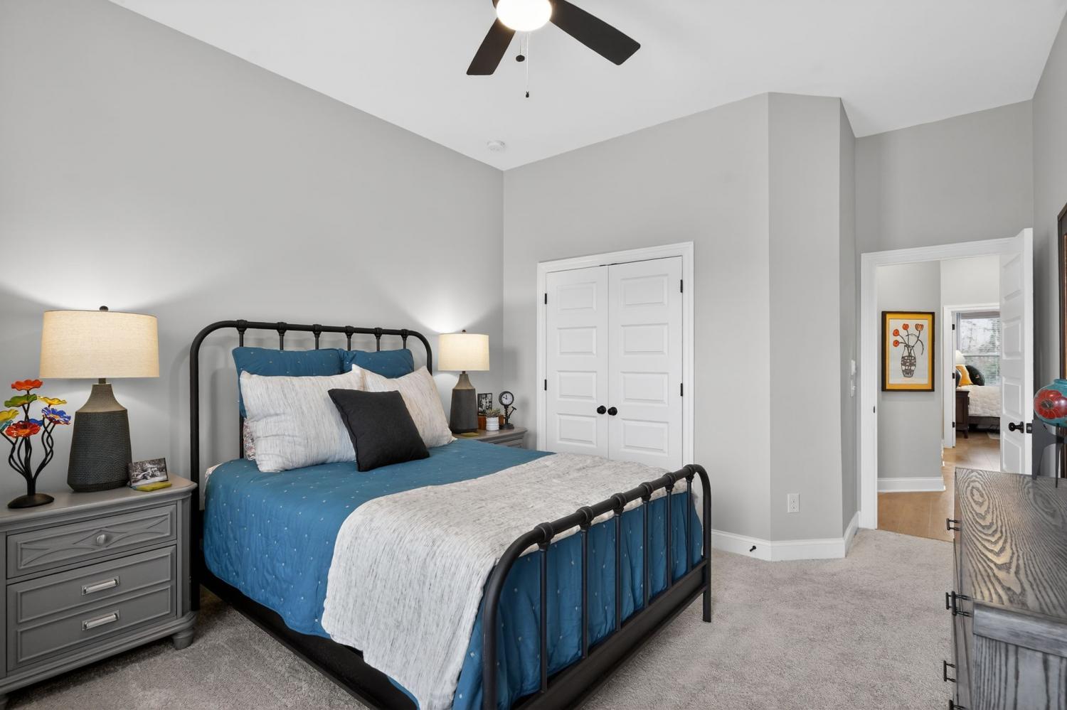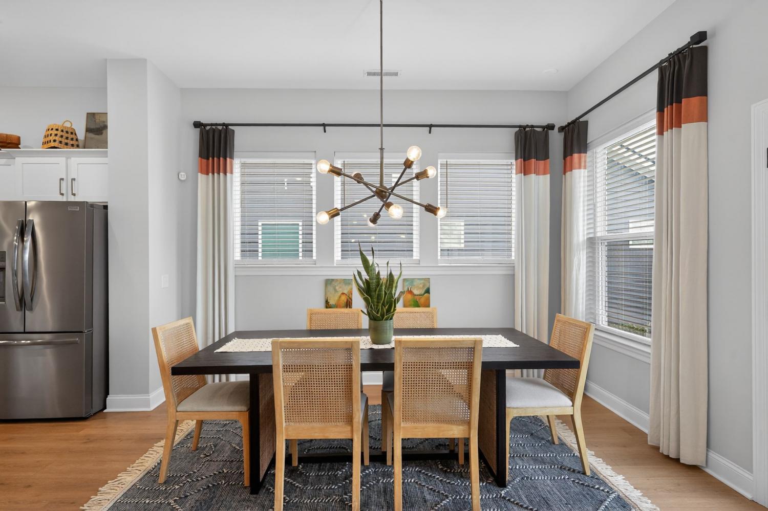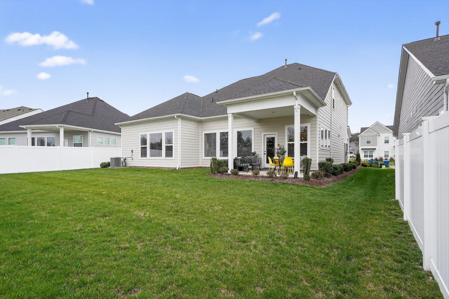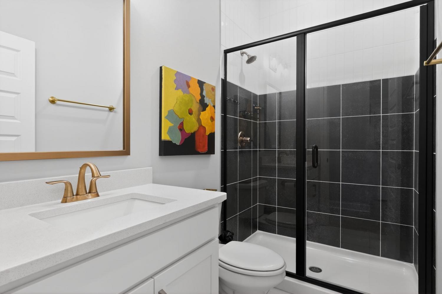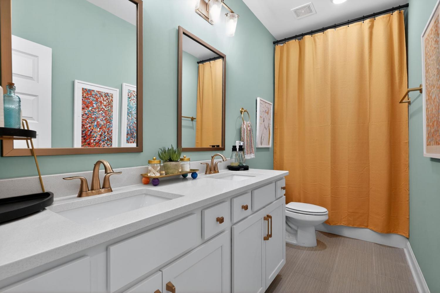 Welcome to the model home that truly has it all. Built in 2023 and lived in for only one year, this stunning 4 bed, 3 bath home offering 2,926 sqft is packed with designer finishes, custom upgrades, and magazine-worthy details throughout. From the moment you step inside, you’re welcomed by a stylish, cozy reading nook before the home opens into an impressive open-concept living space filled with natural light. The bright white chef’s kitchen is the showstopper, featuring gold accents, gas cooktop, built-in oven and microwave, oversized center island, two pantries (including a walk-in), and light oak flooring that flows throughout the main living areas. The kitchen opens seamlessly into the dining space highlighted by a statement gold chandelier and into the great room where a dramatic floor-to-ceiling vertical wood slat accent wall creates an unforgettable focal point. The primary suite on the main floor feels like a private retreat with wall-to-wall windows, a designer accent wall, and elegant chandelier. The spa-inspired bathroom showcases a massive walk-in shower with bench, floor-to-ceiling Moroccan star tile, marble accent wall, penny mosaic tile flooring, double vanity with gold fixtures, linen closet, and private water closet. The custom walk-in closet with built-ins connects directly to the laundry room for everyday convenience. Additional upgrades include custom closet systems throughout, a drop-zone with cubbies off the garage, guest bath with modern black tile and gold accents, epoxy garage flooring with extra storage, and a whole-home generator for peace of mind. Upstairs offers a spacious bonus room plus two additional bedrooms and a full bath with double vanity. Enjoy peaceful mornings on the covered back patio overlooking a level, tree-lined yard or relax on the charming covered front porch swing. Community amenities include a pool and park, offering the perfect blend of luxury, comfort, and lifestyle.