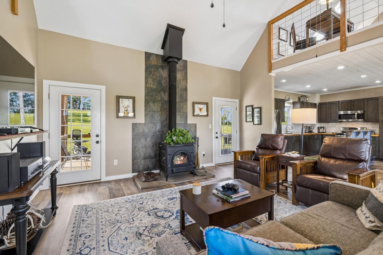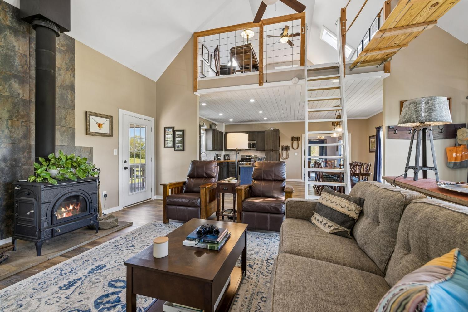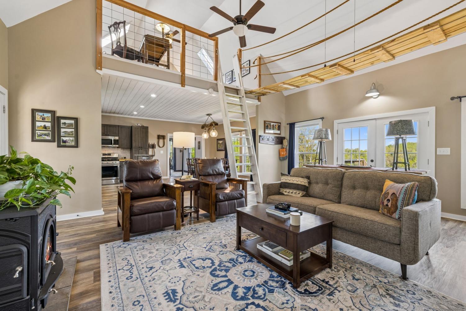 Tucked into the rolling hills of Williamsport near Santa Fe, this 20-acre Duck River retreat offers stunning bluff views, usable pastureland, & a rare sense of privacy. Whether you're seeking a weekend getaway, working mini-farm, full-time homestead, or simply a peaceful escape under open skies, this property invites you to live intentionally—surrounded by nature, views, & wide-open space. The land features three pastures (two fenced), a perennial stream, raised garden beds, & an established mix of fruit-bearing trees (apple, pear, peach, plum), along with blackberries, grapes, & lavender. A movable 2-stall lean-to adds flexibility for livestock. Backing to the Duck River & bordered by protected federal land, the setting offers exceptional privacy & a true connection to the outdoors. Spring-fed water & propane service provide excellent potential for off-grid or self-sustaining living. The charming red farmhouse showcases an open-concept layout w/vaulted family room, wood-burning stove, & seamless flow into the kitchen and dining areas. The kitchen is well-appointed w/gas range, island, stainless appliances, & dishwasher hookup, while the dining area overlooks the private front pasture. The home’s standout space is the screened porch, perfect for taking in the surrounding landscape, along w/convenient cooking porch. The split-bedroom design offers two spacious ensuite bedrooms. The primary suite features a vaulted ceiling, walk-in closet, tiled walk-in shower, & a private deck ideal for sunrise views. Upstairs, two loft spaces connected by a custom swing bridge (1200 lb rated) provide flexible options for office, hobbies, or additional sleeping areas. Also a 1-car attached garage, 2-car detached carport. Rarely does a property combine usable land, river bluff views, privacy, & a thoughtfully designed home in one offering. Ideally located just 1 hour from Nashville and 30 minutes to Leiper’s Fork, this is a perfect full-time residence or exceptional Tennessee retreat.