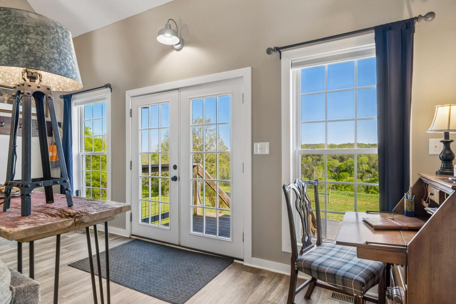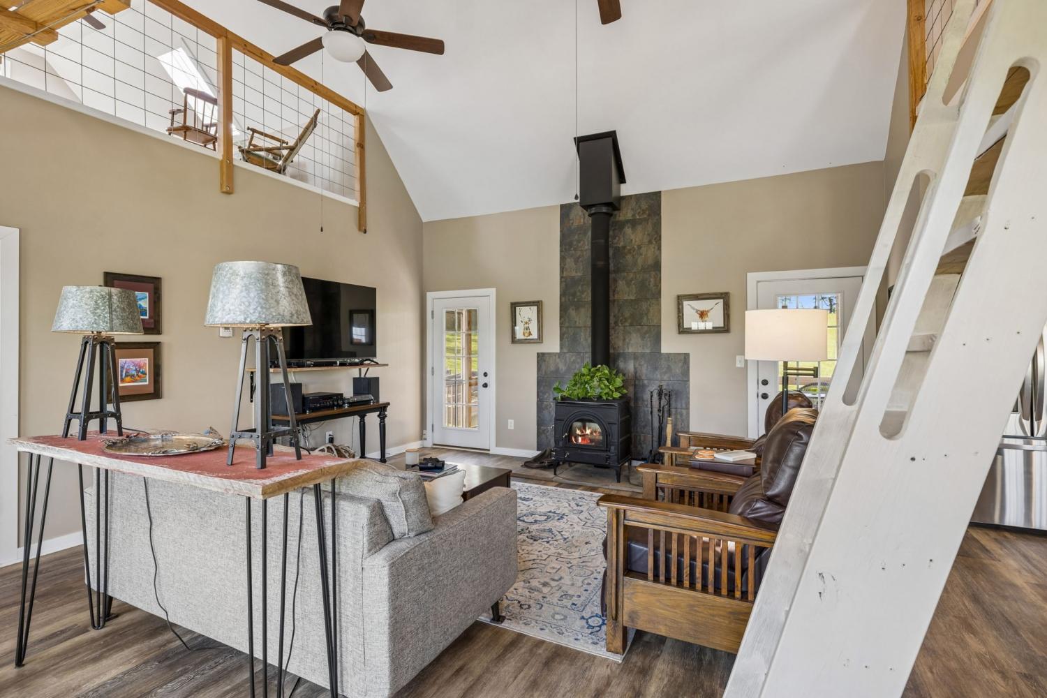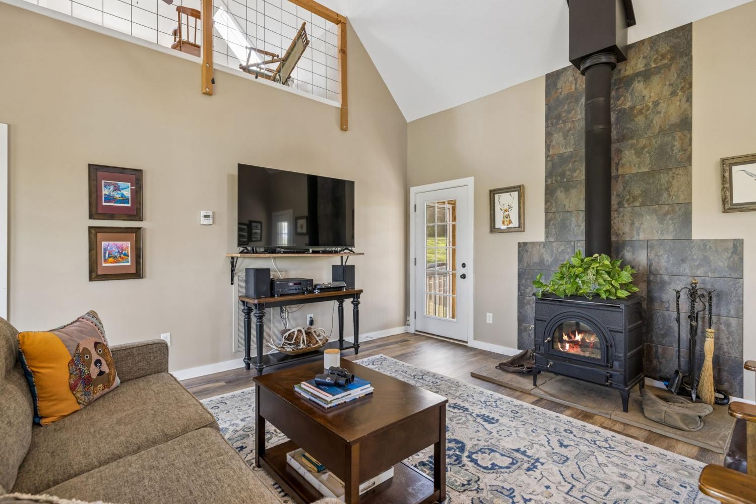 Tucked into the rolling hills of Williamsport near Santa Fe, this 20-acre Duck River retreat offers stunning bluff views, usable pastureland, & a rare sense of privacy. Whether you're seeking a weekend getaway, working mini-farm, full-time homestead, or simply a peaceful escape under open skies, this property invites you to live intentionally—surrounded by nature, views, & wide-open space. The land features three pastures (two fenced), a perennial stream, raised garden beds, & an established mix of fruit-bearing trees (apple, pear, peach, plum), along with blackberries, grapes, & lavender. A movable 2-stall lean-to adds flexibility for livestock. Backing to the Duck River & bordered by protected federal land, the setting offers exceptional privacy & a true connection to the outdoors. Spring-fed water & propane service provide excellent potential for off-grid or self-sustaining living. The charming red farmhouse showcases an open-concept layout w/vaulted family room, wood-burning stove, & seamless flow into the kitchen and dining areas. The kitchen is well-appointed w/gas range, island, stainless appliances, & dishwasher hookup, while the dining area overlooks the private front pasture. The home’s standout space is the screened porch, perfect for taking in the surrounding landscape, along w/convenient cooking porch. The split-bedroom design offers two spacious ensuite bedrooms. The primary suite features a vaulted ceiling, walk-in closet, tiled walk-in shower, & a private deck ideal for sunrise views. Upstairs, two loft spaces connected by a custom swing bridge (1200 lb rated) provide flexible options for office, hobbies, or additional sleeping areas. Also a 1-car attached garage, 2-car detached carport. Rarely does a property combine usable land, river bluff views, privacy, & a thoughtfully designed home in one offering. Ideally located just 1 hour from Nashville and 30 minutes to Leiper’s Fork, this is a perfect full-time residence or exceptional Tennessee retreat.