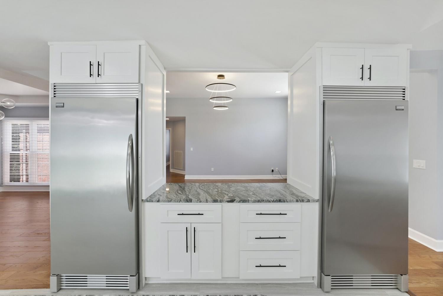Coveted single level living in the heart of Brentwood on a private cul-de-sac, backing to a serene pond for a peaceful setting rarely found at this price point. This beautifully renovated and meticulously maintained 3 br, 2 bath home offers 2,125 sq feet of thoughtfully designed living space and over $140K in recent upgrades. The open concept floor plan has been enhanced with a newly opened living area that flows seamlessly into the fully reimagined kitchen. Featuring white shaker cabinetry with glass display doors & interior lighting, granite countertops, marble look tile backsplash, a spacious center island, & an impressive appliance package including commercial-grade built-in refrigerator & separate freezer, five burner gas cooktop, stainless vent hood, oven, microwave, & dishwasher. Two large pantries provide exceptional storage. The primary suite offers direct access to the rear deck & a completely renovated spa like bath with soaking tub, dual vanities, & a custom tile shower with rain head & handheld. Two additional bedrooms & a fully updated secondary bath provide flexibility for family, guests, or office space. Outdoor living is equally impressive with a large deck featuring new surface boards, professionally restained stairs & railings, & a durable, non-peeling wood finish. The space below has been improved with a vapor barrier & pebble finish, while a winding walkway leads to the pond. Additional highlights include all new flooring with solid oak hardwoods, fresh interior paint throughout, new lighting, updated hardware, new roof (2024), enhanced crawlspace with vapor barrier, upgraded ventilation, & extended downspouts. The homeowner has maintained a service agreement for HVAC, plumbing, and electrical, with all systems recently inspected and serviced prior to listing. Move in ready with extensive upgrades, a functional layout, & a tranquil setting. Up to 1% lender credit on the loan amount when buyer uses Seller's Preferred Lender.